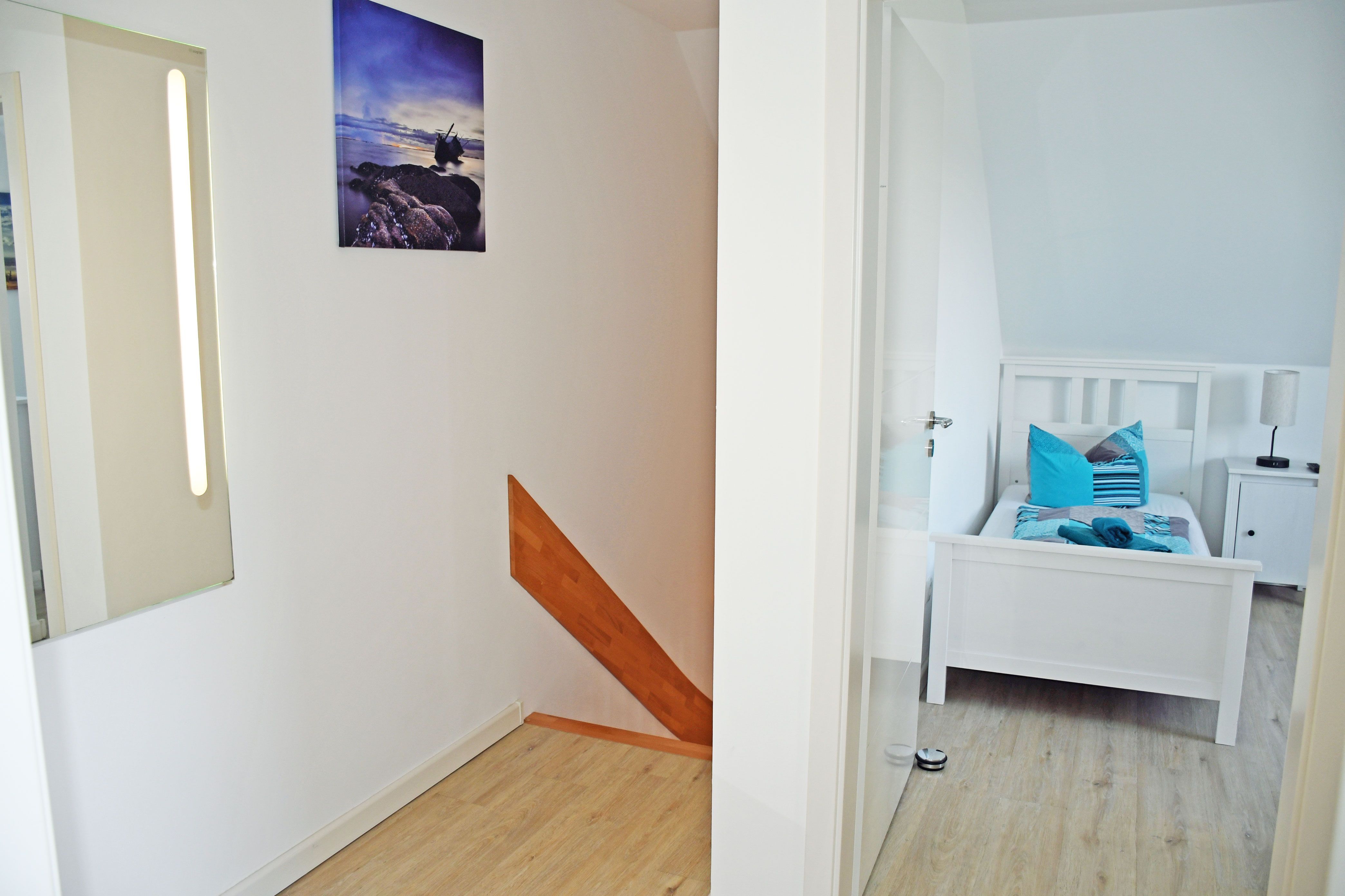 Sie ist für maximal 4 Gäste ausgestattet. 1 Wohnzimmer, 2 Schlafzimmer, 1 Bad sowie ein Gäste WC und 1 Küchenzeile sowie Internet-WLAN stehen Ihnen für Verfügung. 2 Flachbild-TV sind vorhanden. Im Erdgeschoss befindet sich das großzügige, stilvoll eingerichtete Wohnzimmer mit bequemen, hochwertigen Sitzmöbeln und einem großen modernen TV-Flachbildschirm. Hier steht auch ein Esstisch mit Stühlen. Daran an schließt sich die neue Küchenzeile mit Backofen, Ceranherd, Mikrowelle, Abzugshaube, Wasserkocher, Toaster und Kaffeemaschine an. Eine Fußbodenheizung bringt zusätzliche behagliche Wärme.