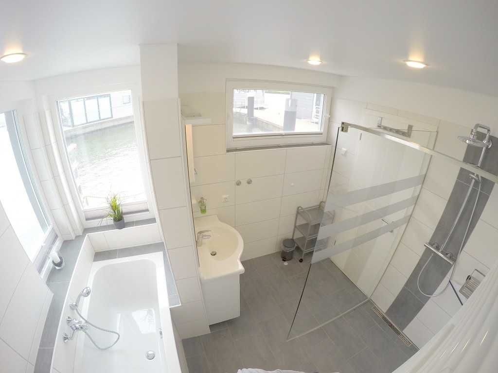 Neben den 3 separaten Schlafzimmern - 2 Schlafzimmer mit jeweils einem Doppelbett, 1 Schlafzimmer mit einem Hochbett und für die 7. und 8. Person eine Aufbettung in der 1. Etage im Wohnzimmer, befindet sich außerdem das Bad mit Dusche/WC im unteren Deck sowie ein Bad mit Waschbecken und WC.