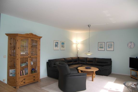Wohnzimmer mit gemütlicher Sitzecke und angeschlossener Essecke