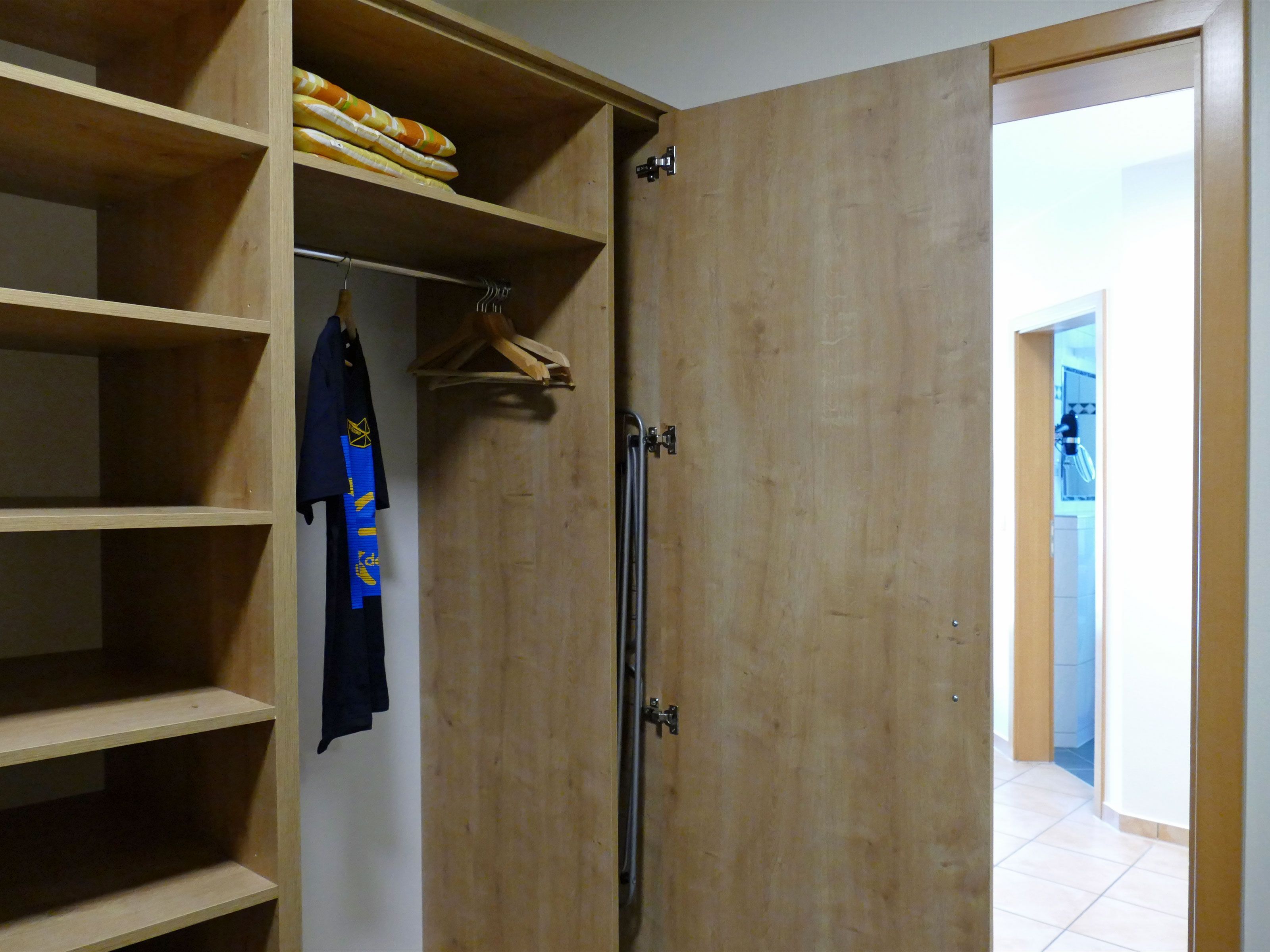 Der Flur bietet zusätzlichen Stauraum durch einen separaten Kleiderschrank und eine Garderobe. Auch für Ihr Gepäck gibt es eine Abstellmöglichkeit.