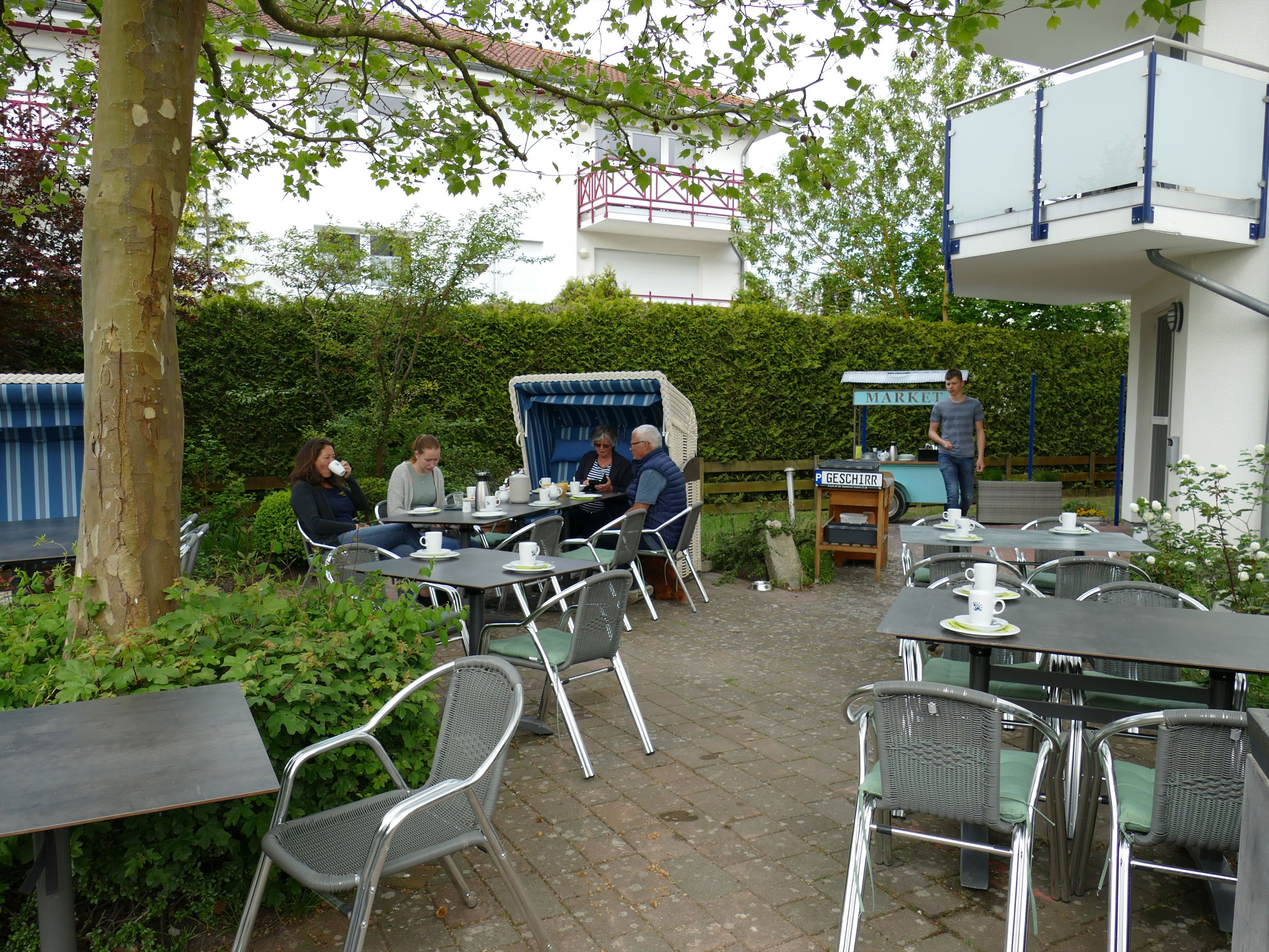 Unser gepflegter Außenbereich eignet sich besonders für Gäste, deren Ferienwohnung über keinen eigenen Balkon oder keine eigene Terrasse verfügt.