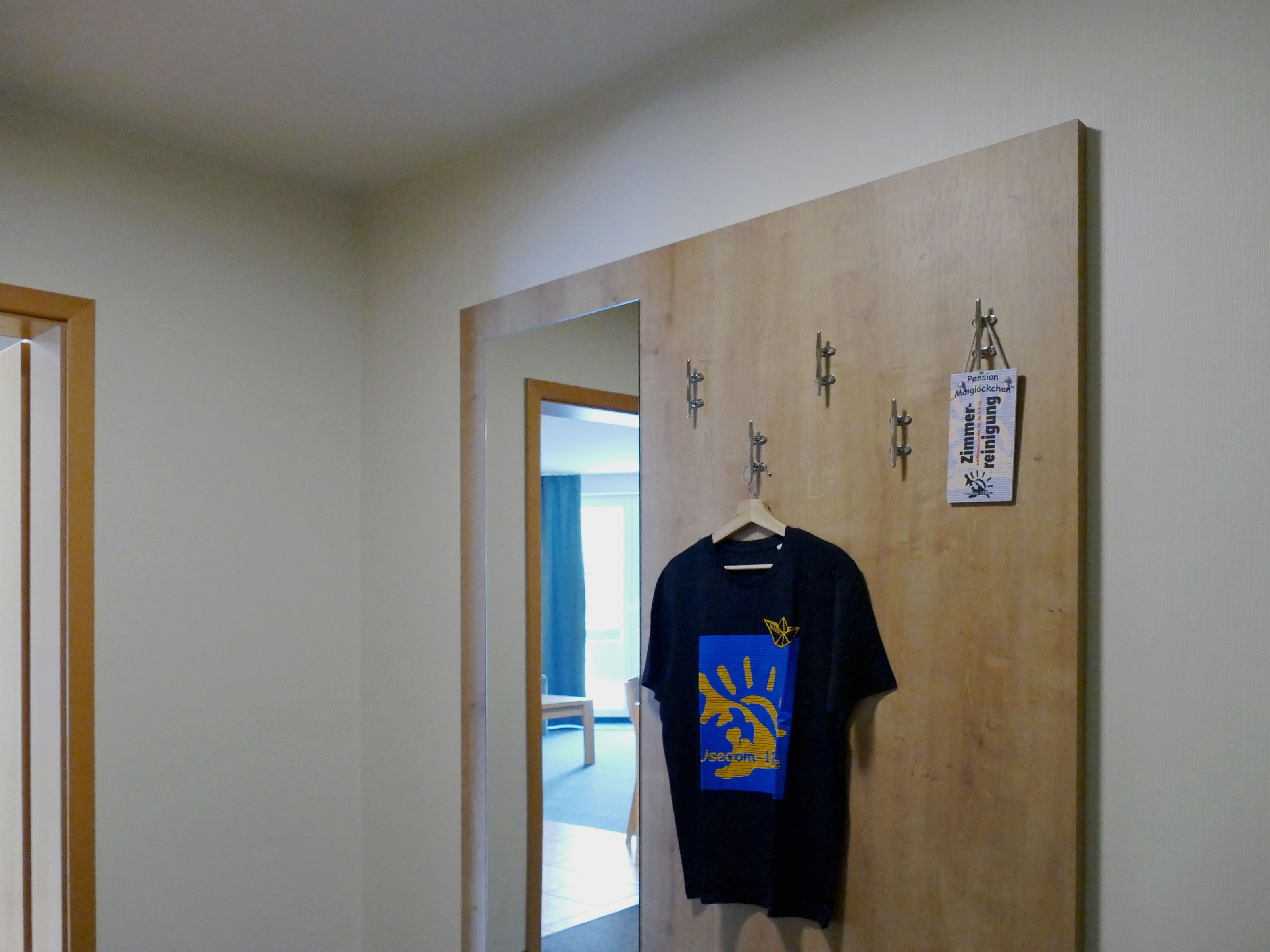 Der Flur bietet zusätzlichen Stauraum durch einen separaten Kleiderschrank und eine Garderobe. Auch für Ihr Gepäck gibt es eine Abstellmöglichkeit.