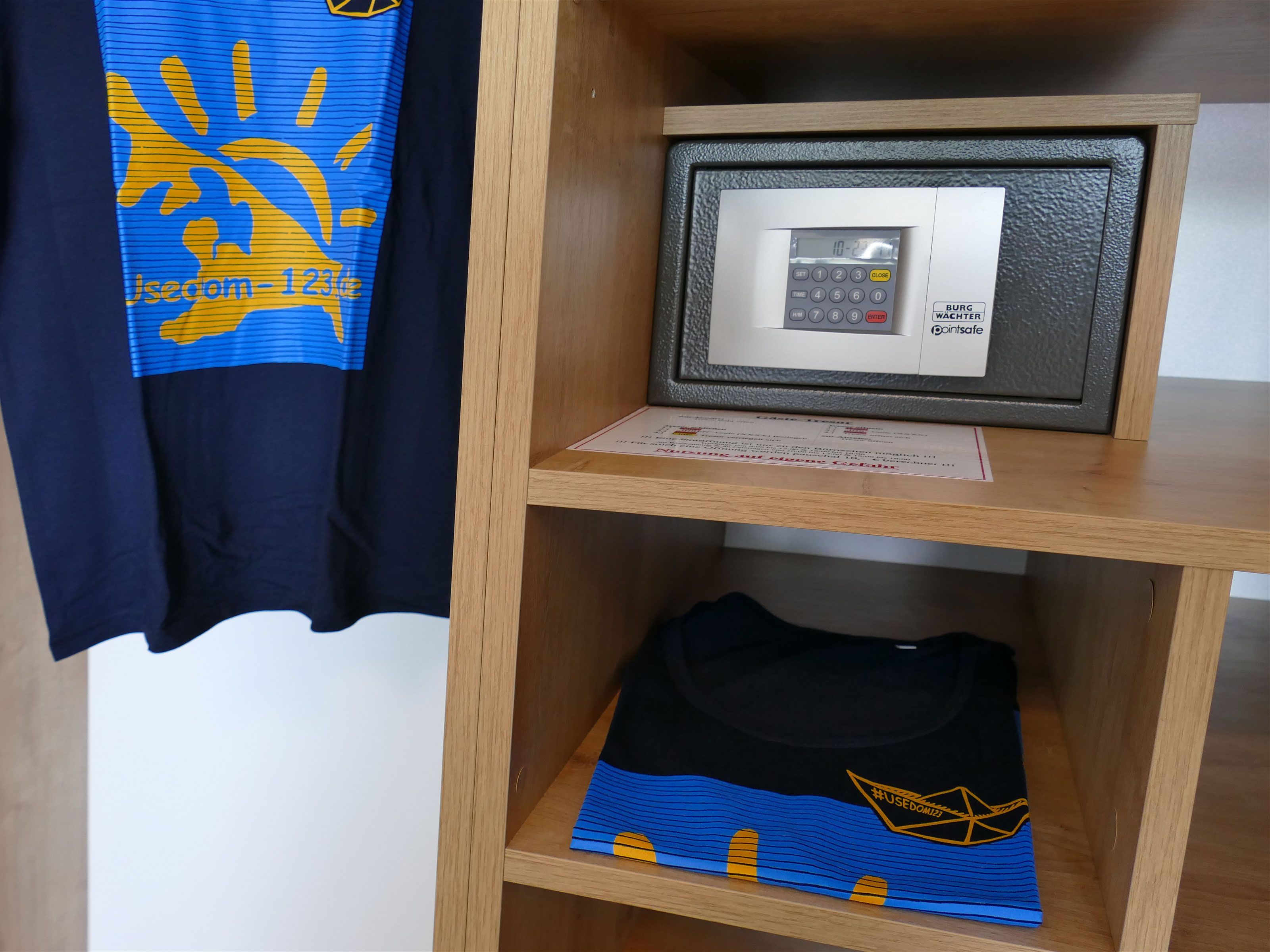 Im Schlafzimmer sorgt ein komfortables Doppelbett für erholsame Nächte. Ein großer Kleiderschrank mit integriertem Hotelsafe, ein weiterer Fernseher und eine Kofferablage runden die Ausstattung ab. Bettwäsche sowie Hand- und Badetücher sind selbstverständlich inklusive.