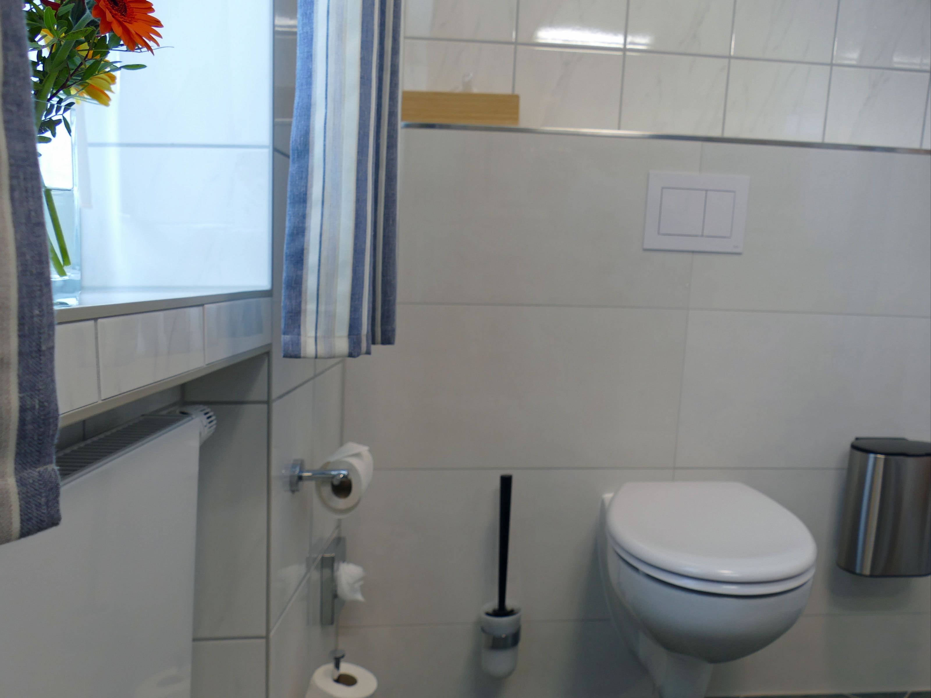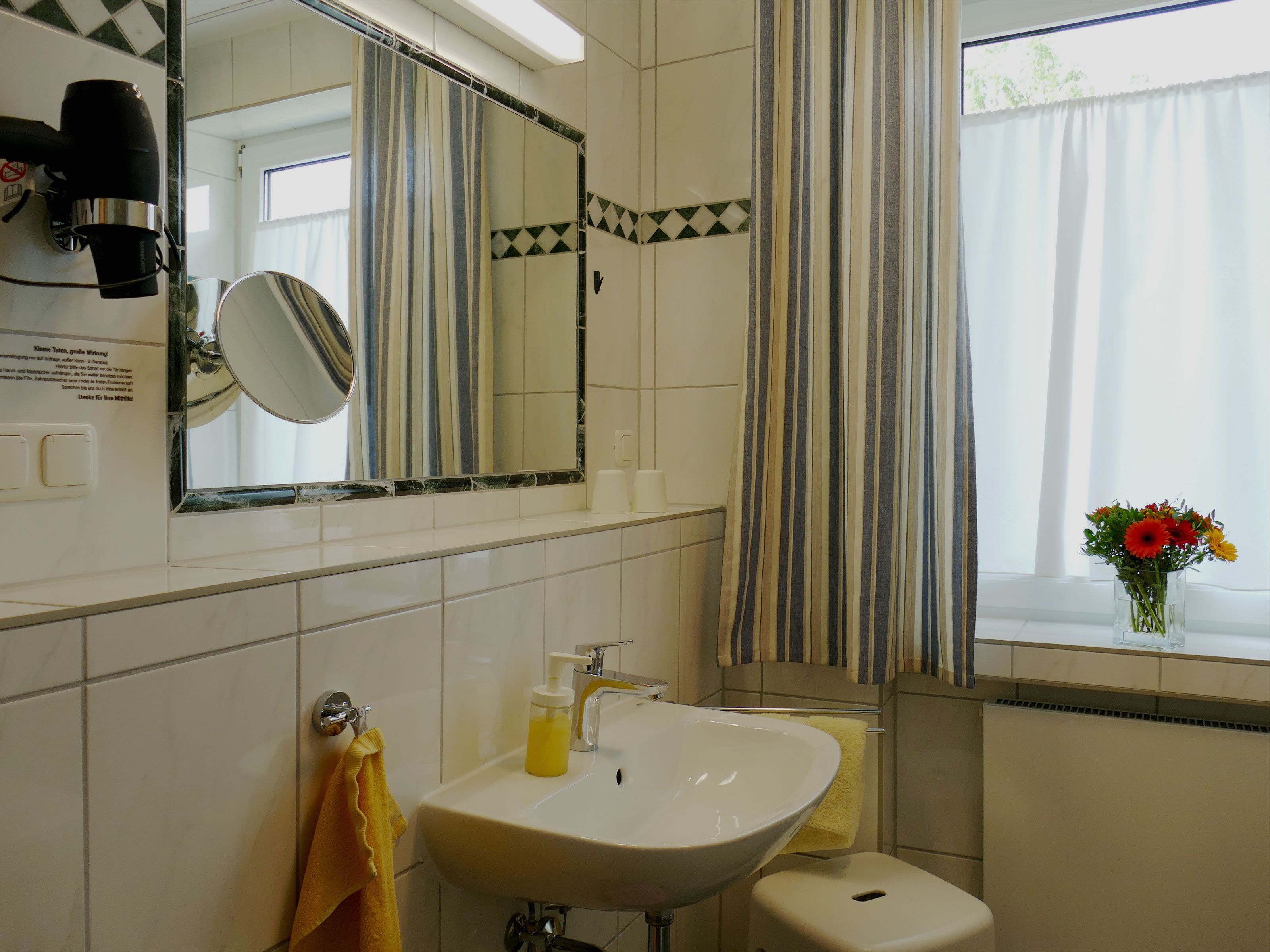 Bad mit Dusche, Waschtisch und WC