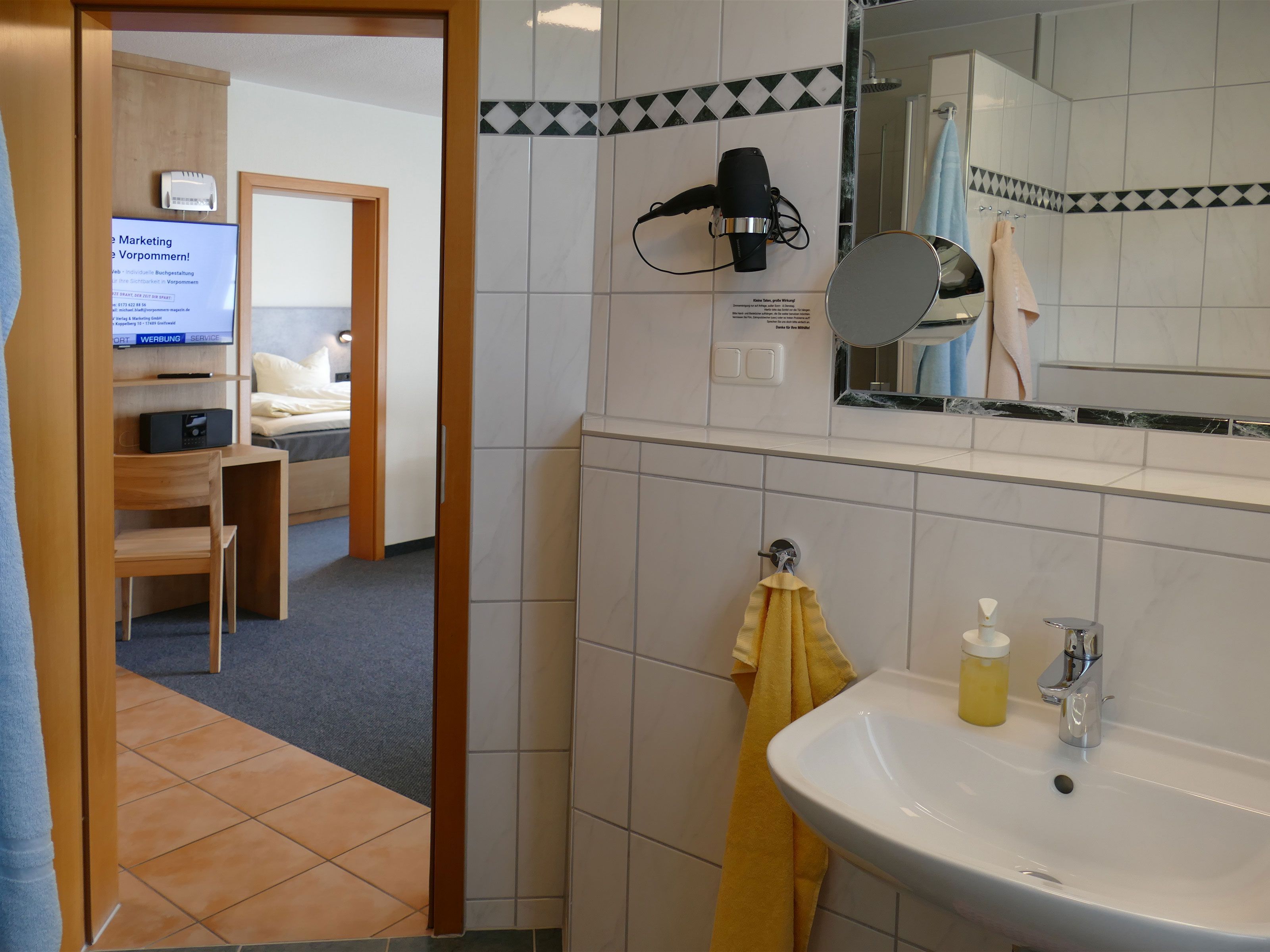 Zu den Extras der Pension gehört ein täglicher Zimmerservice (außer dienstags und mittwochs) sowie kostenfreies WLAN in den Suiten. Maximal ein PKW-Stellplatz pro Buchung steht Ihnen zur Verfügung. PKW-Stellplätze sind begrenzt vorhanden.