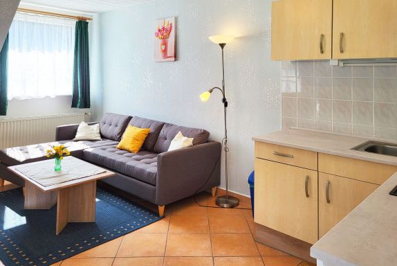 2 Raum-Wohng. bis 2 Pers., 1 SZ, Küche, Wohnzimmer, Bad, mit Dusche/WC, Flur, Terrasse o. Balkon. Frühstücksbüfett mit Voranmeldung möglich und auch Abendessen à la carte. Haustiere nur auf Anfrage!
