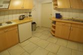 Küche mit 4 Plattenherd, Mikrowelle, Kühlschrank, Kaffeemaschine, Toaster,