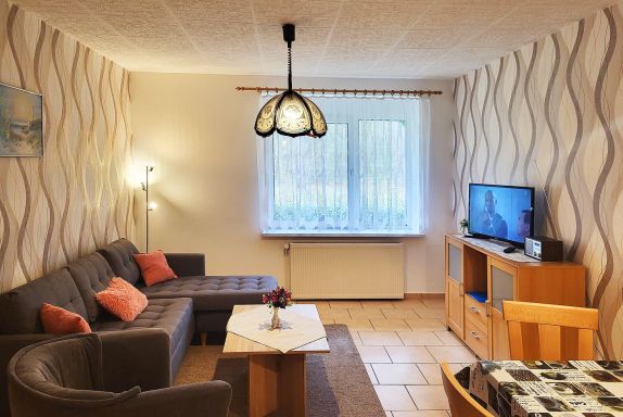 2 Raum-Wohng., 1 SZ mit 1 DB und 1 EB, Küche, Wohnzimmer, Bad mit Dusche/WC, Flur, Terrasse, Frühstücksbüfett mit Voranmeldung möglich und auch Abendessen à la carte. Haustiere nur auf Anfrage!