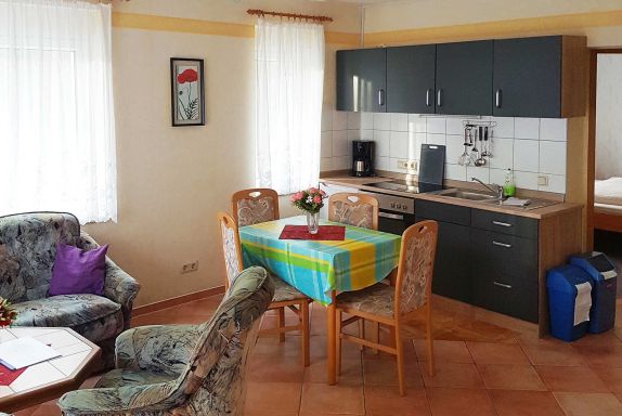 3 Raum-Wohng., 2 Schlafzimmer, Küche, Wohnzimmer, Bad mit Dusche/WC, Flur, Terrasse, Haustiere nur auf Anfrage! Frühstücksbüfett mit Voranmeldung möglich und auch Abendessen à la carte.