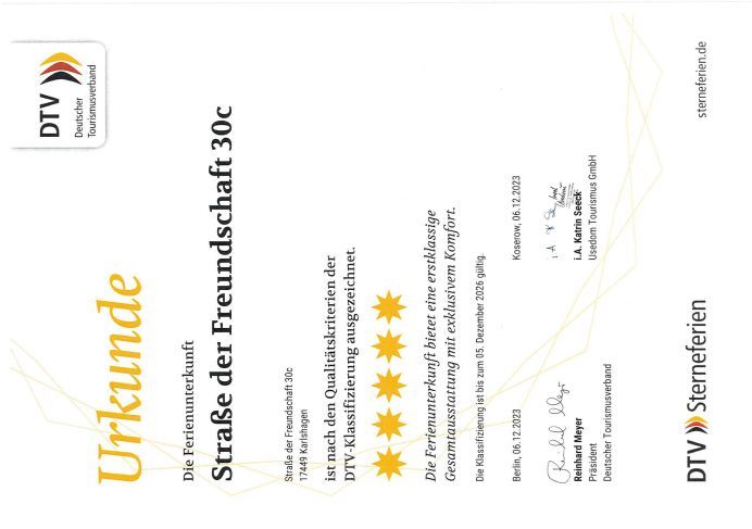 5-Sterne-Klassifizierung durch den Deutschen Tourismusverband.