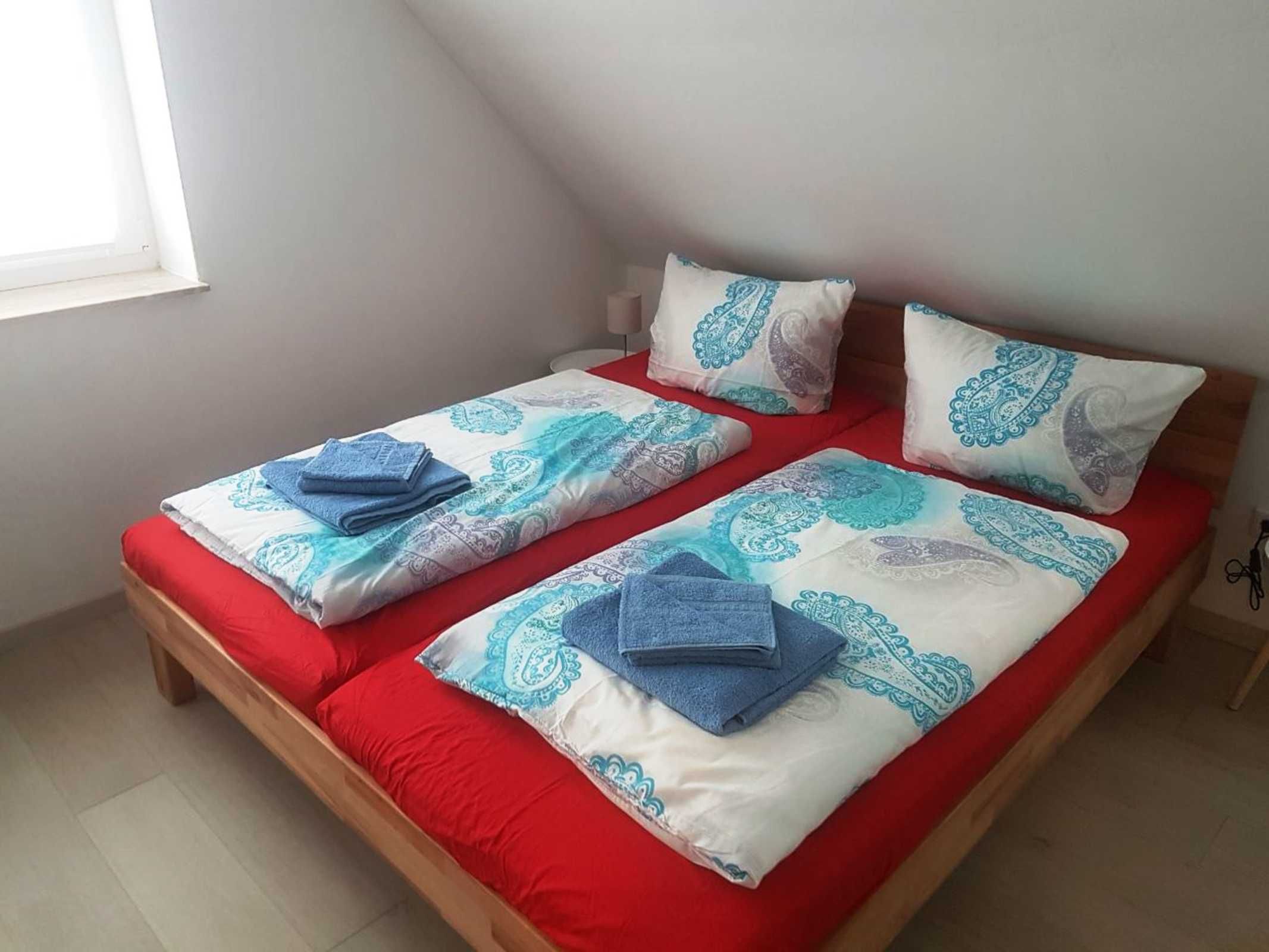 In der oberen Etagen finden Sie zwei Schlafzimmer. Das erste verfügt über ein Doppelbett und einen großen Kleiderschrank, das zweite Schlafzimmer ist mit zwei Einzelbetten ausgestattet. W-LAN steht Ihnen während des Aufenthaltes kostenfrei zur Verfügung.