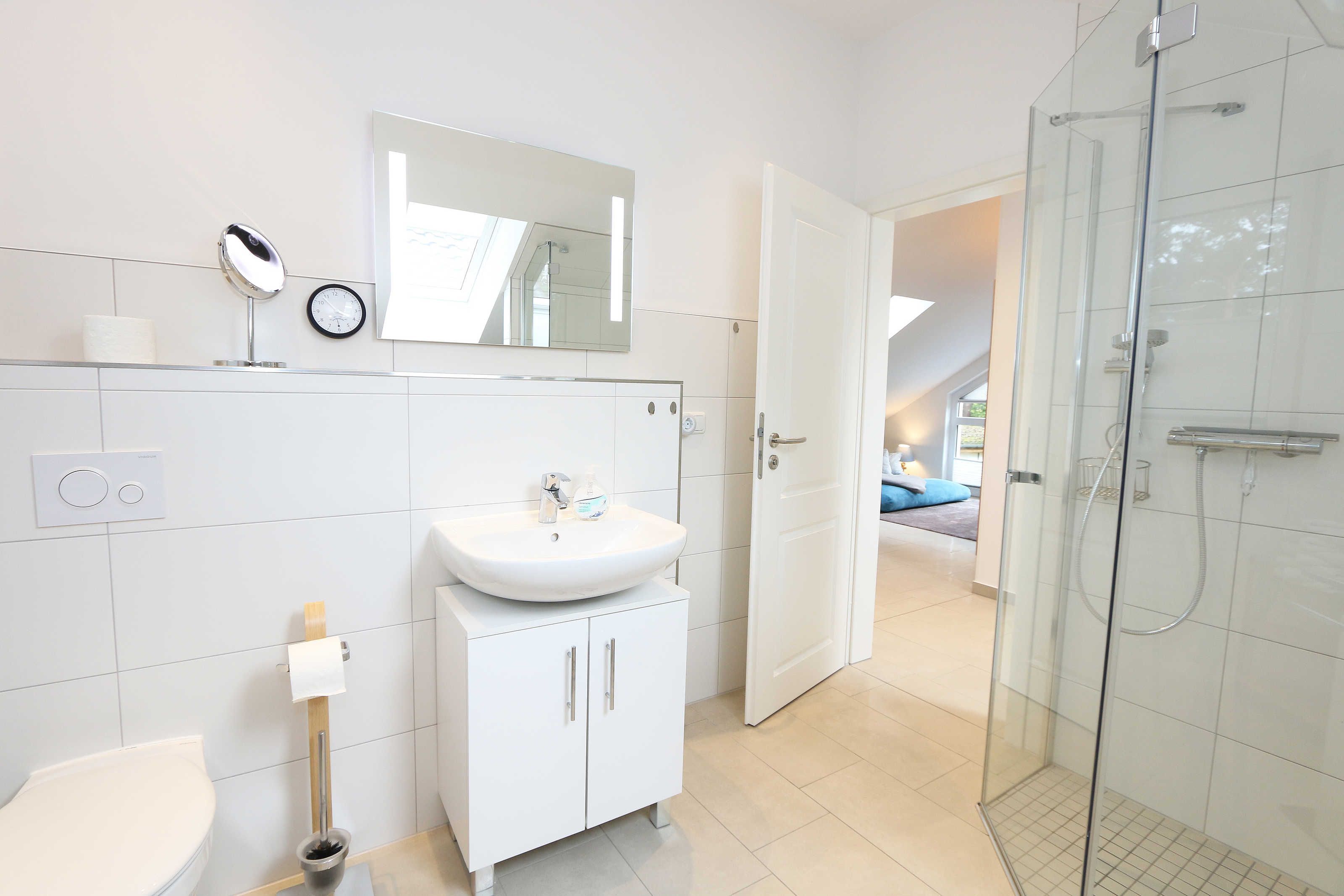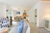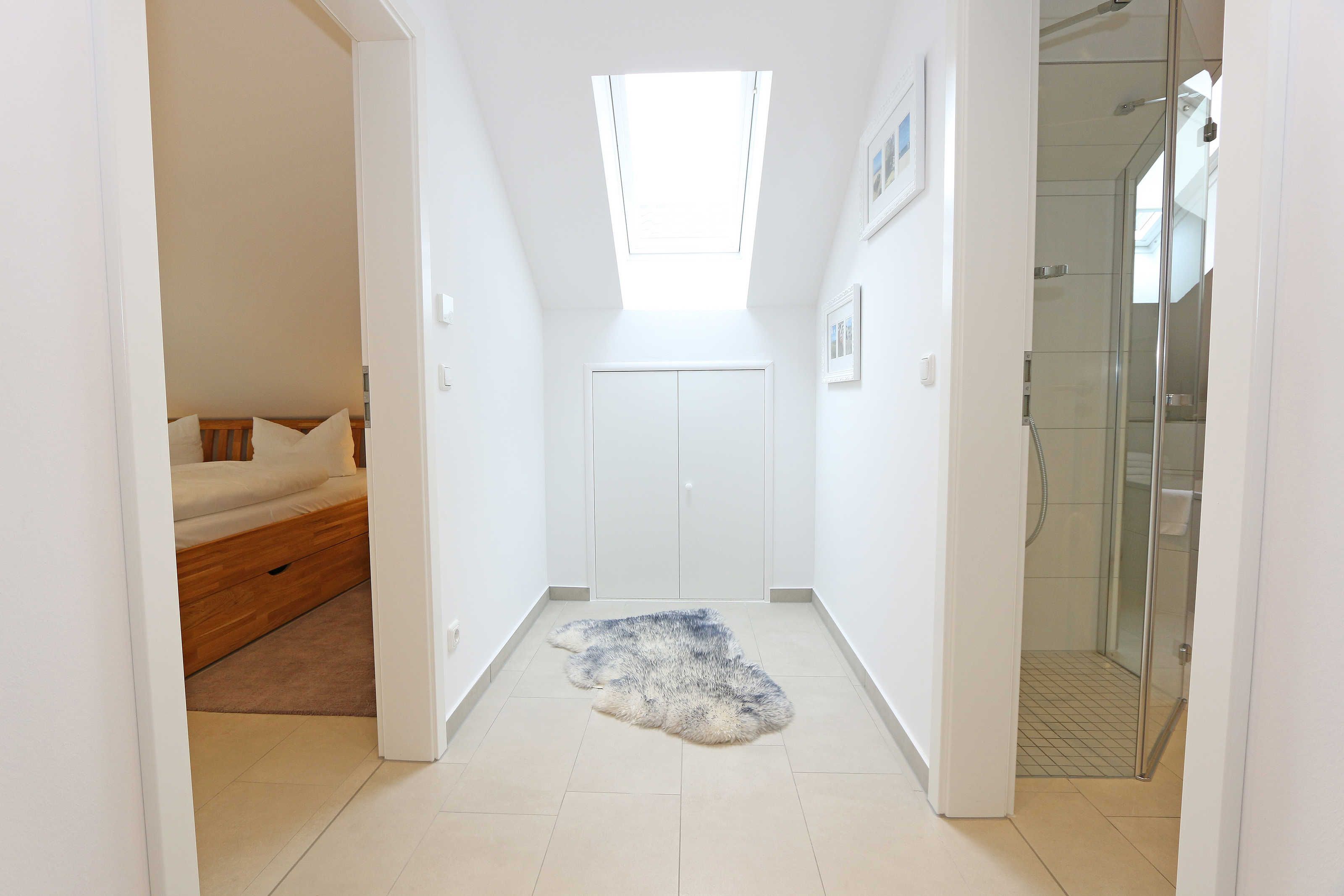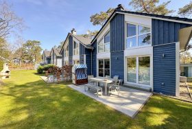 Das Ostseebad Baabe ist ein beschaulicher Ort, der sich in die Perlenkette der bekannten Strandbäder Rügens einbringt und sich allseits ehrlicher Beliebtheit erfreut. Liegt es am langen Strand mit herrlichem Weitblick, am schönen Kurpark, an der geschäftigen Promenade, am Holzspielplatz oder an der guten Infrastruktur mit Lidl-Markt, Tankstelle, Haltestelle des rasenden Roland sowie viele verschiedene Restaurants. Das Ferienhaus Blaue Welle ist absolut einmalig in der Ausstattung, exklusiv in der Lage und wurde mit viel Liebe zum Detail hochwertig für max. 5 Personen und 1 Kleinkind bis 3 Jahre im Kinderreisebett eingerichtet. Die Blaue Welle liegt in gesuchter Randlage des Baaber Dünenparks. Die Besonderheit ist, dass es sich um eine von 4 Doppelhaushälften auf einem abgegrenzten Grundstück ohne Durchgangsverkehr handelt. In ca. 200 m sind Sie am feinen Ostseestrand und können Ihren Urlaub in vollen Zügen genießen.
