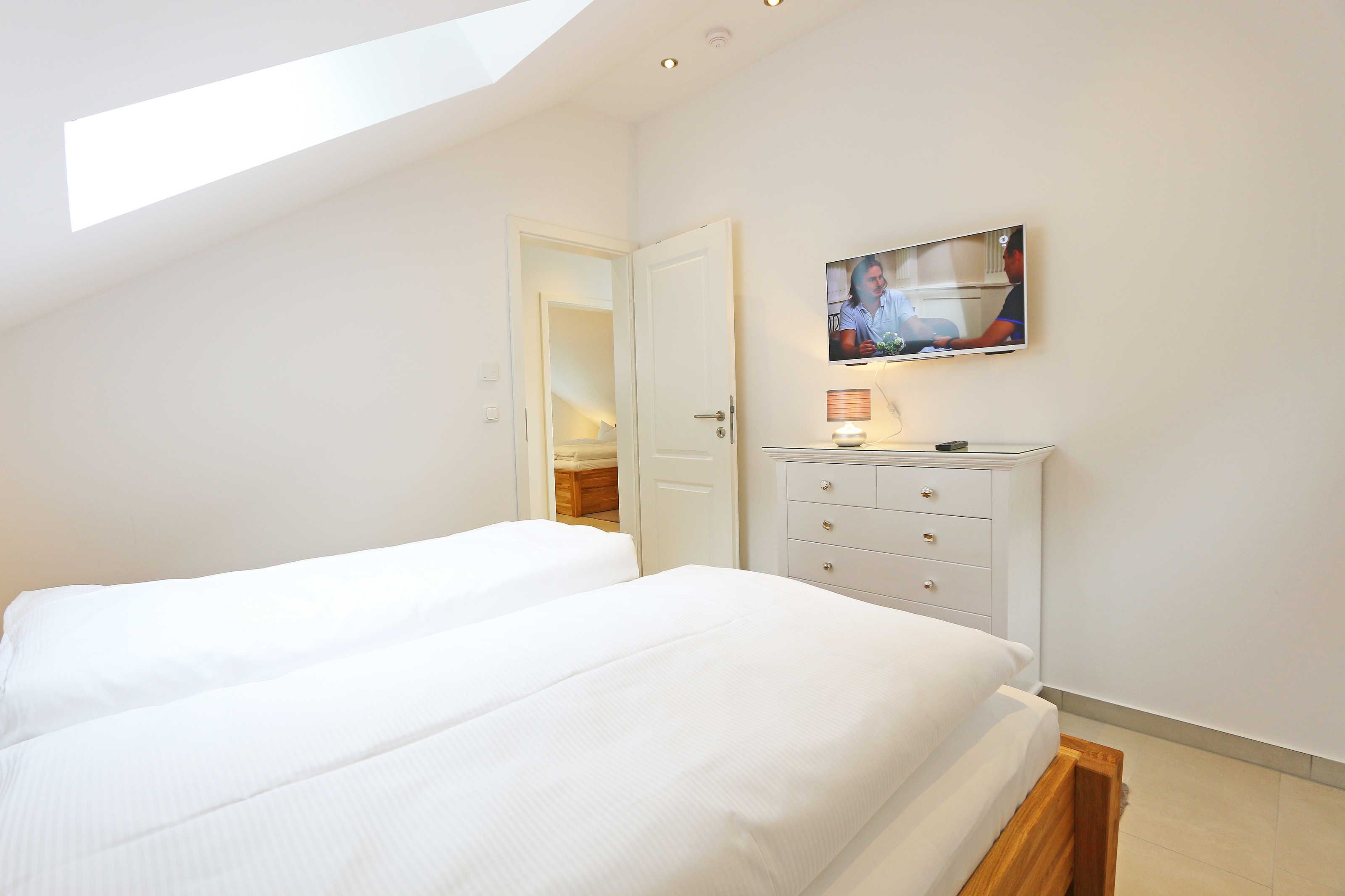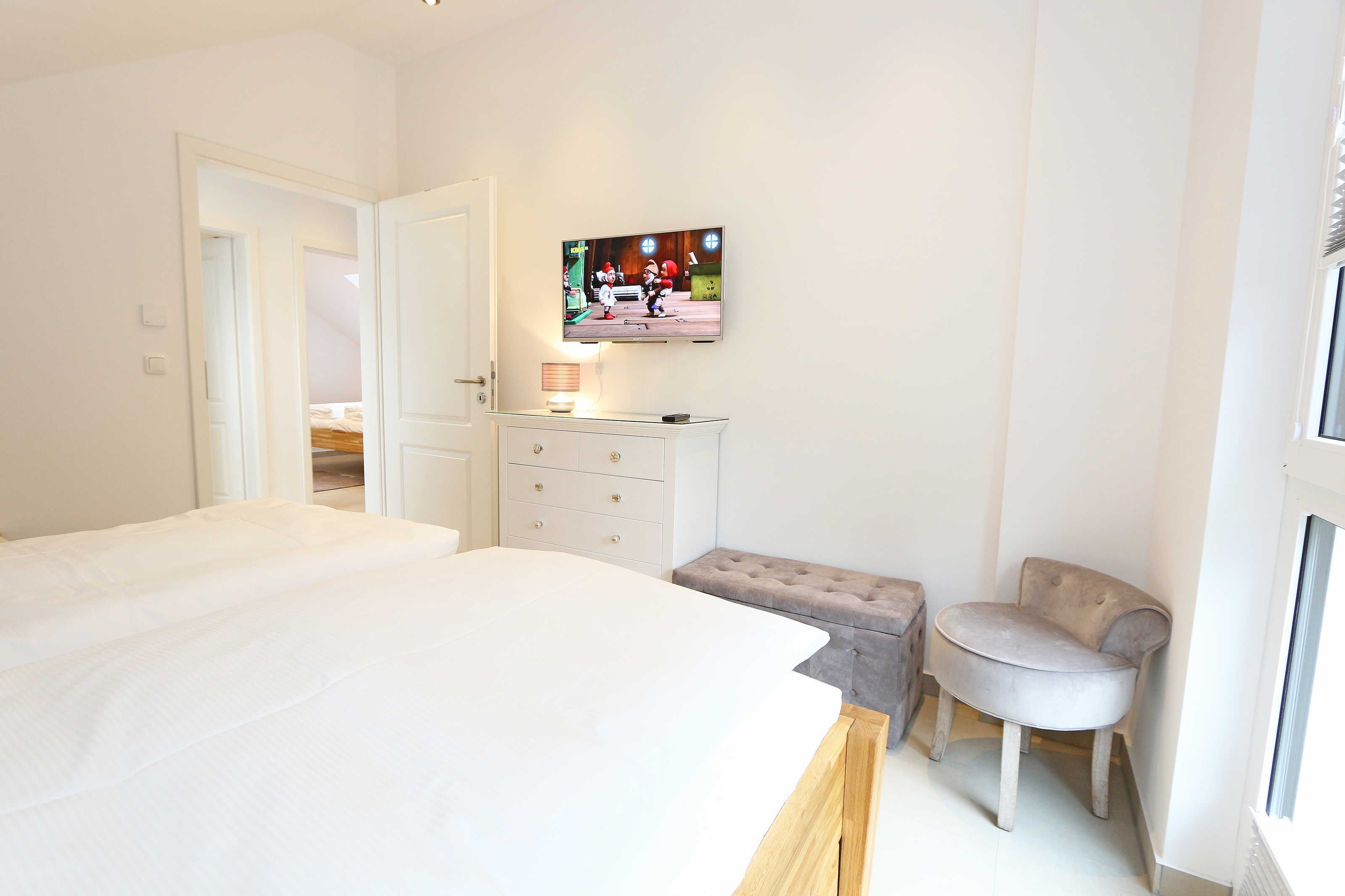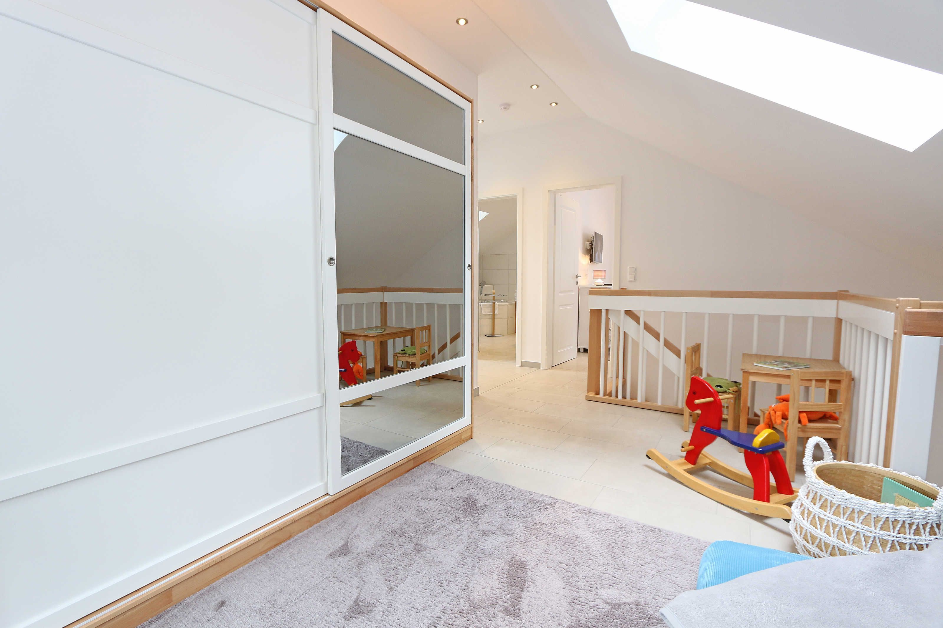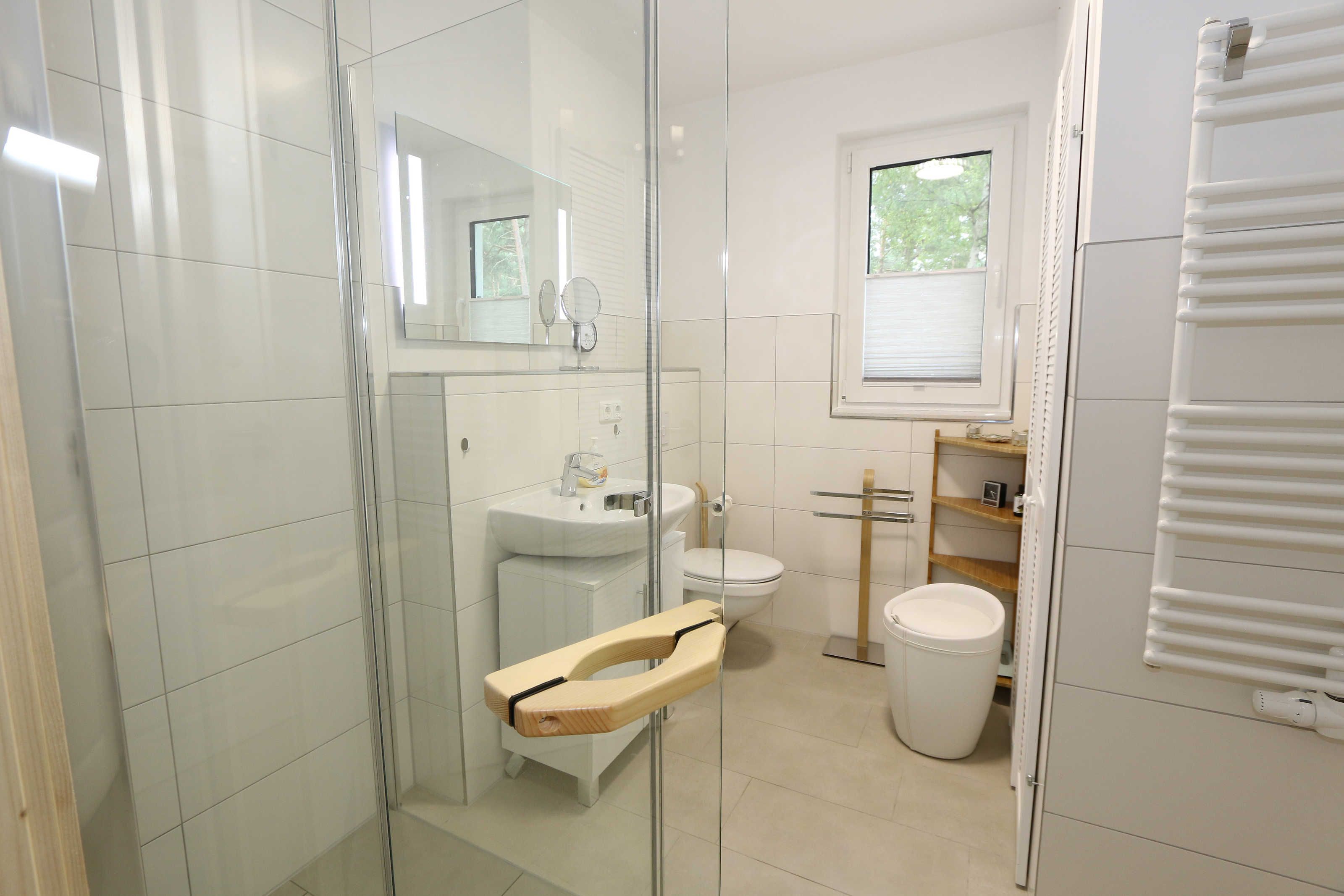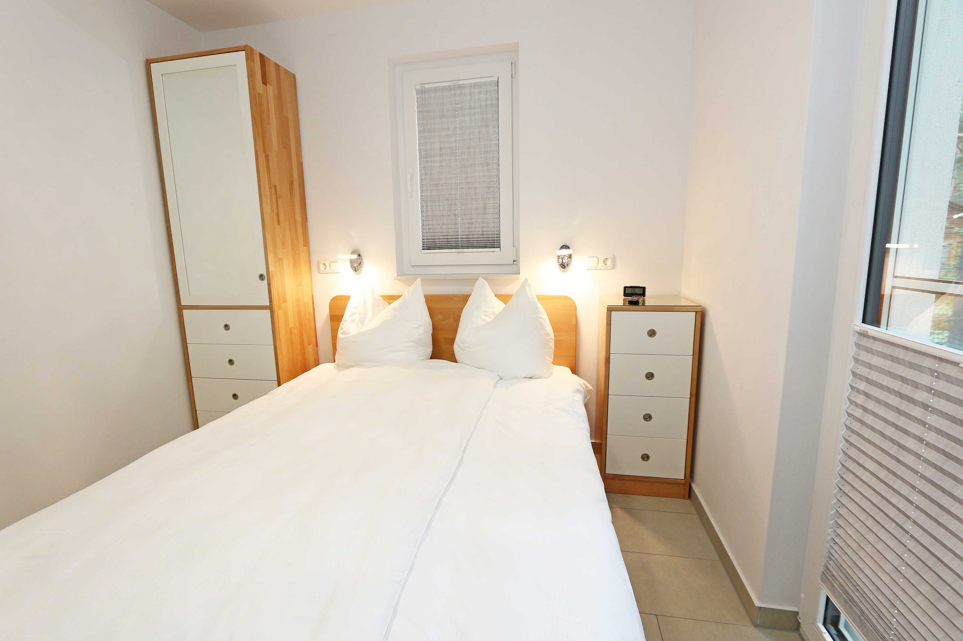 Das Nichtraucherferienhaus „Blaue Welle“ befindet sich in einzigartiger Lage, im Dünenpark Baabe. Durch die großzügige Wohnfläche von ca. 95 qm, welche sich über 2 Etagen erstreckt, bietet Ihnen das Haus ausreichend Platz für max. 5 Erwachsene und 1 Kleinkind bis 3 Jahre im Kinderreisebett. Die Innenausstattung wird Ihr Herz höher schlagen lassen, denn durch die angefertigten Echtholzmöbel sowie die Einbauküche aus dem Hause Leicht werden besondere Akzente im Haus gesetzt. Der kombinierte Wohn-/Essbereich wurde mit einer gemütlichen Couchecke, Couchtisch, einem Hocker, Leselampe sowie ein Sideboard ausgestattet. Für gemütliche Abende dient ein Flachbild-TV mit passender Soundbar von SONY, ein DVD-Player durch die PS4 und ein moderner Kaminofen mit großem Sichtfenster. Auch auf einen Internetanschluss (WLAN) brauchen Sie nicht verzichten dieser ist für Sie inklusive. Die angrenzende Einbauküche lässt keine Wünsche offen mit einem Kühlschrank inklusive großem Eisfach, ein Cerankochfeld, einer Dunstabzugshaube, ein kombinierter Backofen mit Mikrowelle, einem Geschirrspüler, einer Duo-Kaffeemaschine (Pads und Filter/Phillips Senseo Thermo Duo), einem Toaster, einem Wasserkocher, einem Handrührgerät, einem Pürierstab sowie vielen Küchenhelfer. Vom Wohnbereich gelangen Sie auf die großflächige und beleuchtete Terrasse (Süd/West) mit robuster Bestuhlung. Im Gartenbereich wartet zusätzlich ein Ostseestrandkorb sowie ein Steingrill auf Sie. Im Erdgeschoss befindet sich eines von insgesamt 3 Schlafzimmern, welches mit einem Queensize-Bett (1,40 m x 2,00 m), 2 kleinen Schränken, 2 kleinen Sesseln und einem Flachbild-TV ausgestattet ist. Gleich gegenüber befindet sich das ebenerdige Badezimmer mit einer Echtglasdusche, WC, Fön, Waschtisch sowie einer hauseigenen Sauna. Über die Treppe gelangen Sie vom Wohnbereich in die 1. Etage des Hauses, wo Sie eine lichtdurchflutete und offene Galerie erwartet. Hier lässt es sich wunderbar mit einem Buch relaxen. 2 weitere Schlafzimmer sind hier hell und freundlich eingerichtet worden und bieten Ihnen jeweils 1 Doppelbett (1,80 m x 2,00 m), 2 Nachttischablagen, ein Flachbild-TV und Echtholzkommoden. Bei geöffnetem Fenster können Sie dem Wellenspiel der Ostsee zuhören. Alle Schlafräume sind mit verdunkelnden Rollos oder Plissee und Insektenschutzgitter versehen, so dass einem ruhigen Ausschlafen nichts im Wege steht. Das 2. Tageslichtbad wird durch eine ebenerdige Dusche, eine formschöne Badewanne, ein WC, einen Fön, einen Waschtisch sowie einen Waschtrockner abgerundet. Für eine angenehme Wärme sorgt in allen Räumlichkeiten die Fußbodenheizung. Zusätzliche Highlights sind eine Entkalkungsanlage sowie eine verbrauchsarme Gasbrennwerttherme. Für unsere kleinen Gäste stehen 1x Tripp-Trapp Hochstuhl und 1x Kinderreisebett (mit Zusatzkindermatratze / ohne Bett-Inlett) kostenfrei zur Verfügung. Auch 2 vorhandene Fallschutzgitter für die Treppe oder auch Steckdosenschutz sind vorhanden. Haustiere sind nicht erlaubt. Zum Ferienhaus gehören 2 nebeneinander gelegene PKW-Stellplätze (Blaue Welle). Die Erstausstattung eines Wäschepaketes (komplette Bettwäsche, 1 Duschhandtuch, 2 kleine Handtücher) können Sie bis 14 Tage vor Anreise gegen einen Aufpreis dazu buchen oder durch eigene ergänzen. Ab 2 gebuchten Paketen erhalten Sie einmalig 1 Geschirrhandtuch und 1 Duschvorleger hinzu.