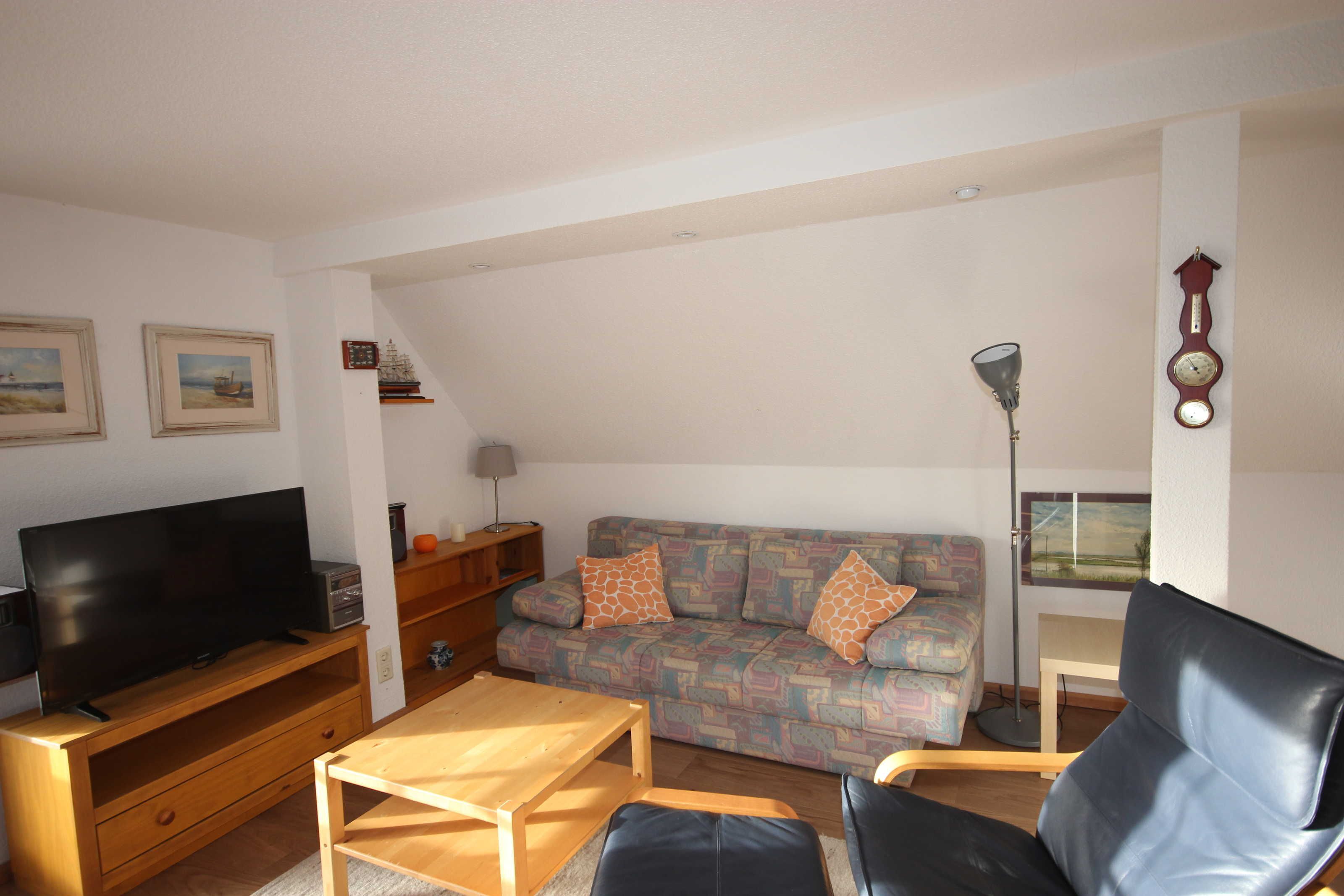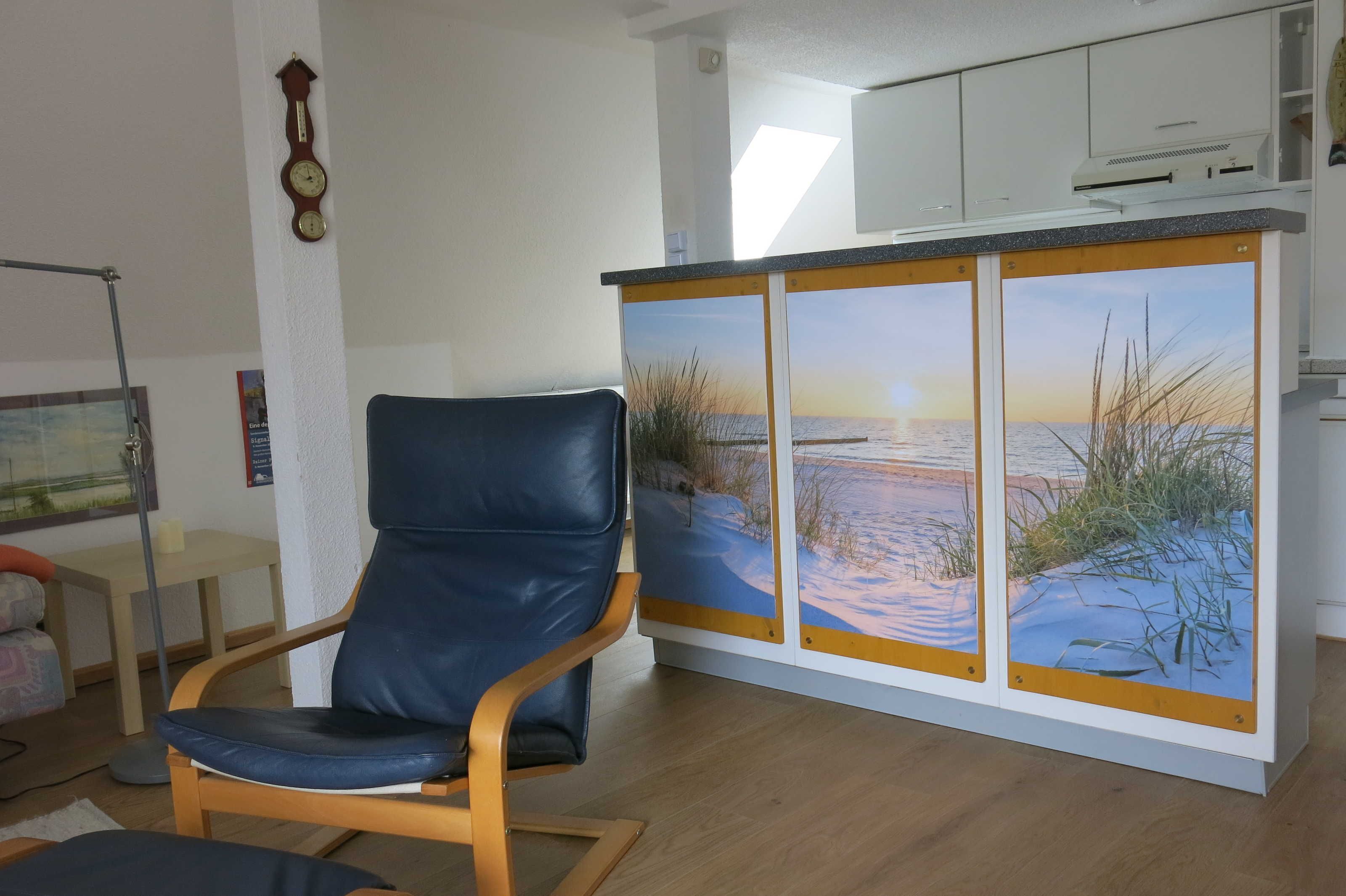 über den gemeinsamen Restaurantzugang erreicht man eine gemütliche Ferienwohnung im Obergeschoss mit großer Dachterrasse ca. 25 m² (Süd- Ausrichtung) mit Balkonmöbeln, sowie 2 Sonnenstühle. Die Ferienwohnung Alfredo liegt in zentraler Lage. Die offene Küchenzeile ist ausgestattet mit Geschirrspüler, Cerankochfeld, Mikrowelle/ Backofenkombination als Tischgerät, Kaffeemaschine und Toaster. Das offene Wohnzimmer verfügt über eine Schlafcouch, sowie SAT- TV und ein kostenloses WLAN. Im Schlafzimmer finden unsere Gäste ein Doppelbett 1,80 x 2,00 m- mit einer harten und einer weichen Matratze( getrennte Matratzen). Im kleinen innenliegenden Bad befindet sich eine Dusche/ WC . Die Wohnung wurde teilweise mit Insektenschutz ausgestattet. Im Erdgeschoss befindet sich das Italienische Restaurant Alfredo. Der feinsandige Strand ist ca. 500 m. entfernt. Die Wohnung wird inclusive Bettwäsche übergeben, Handtücher können in der Zimmervermittlung für 7,00 € pro Person (1 Badetuch, 1 Handtuch) dazugebucht werden. Das Rauchen in der Wohnung ist nicht gestattet Haustiere sind nicht gestattet.
