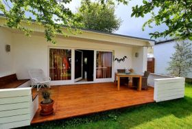 Das stilvolle 3-Raum-Appartement im Bungalowstil bietet Ihnen auf einer Fläche von ca. 96qm einen großzügigen Wohn-Essbereich mit gemütlicher Couchecke, Flat-TV, DVD-Player und einem Esstisch für 4 Personen.