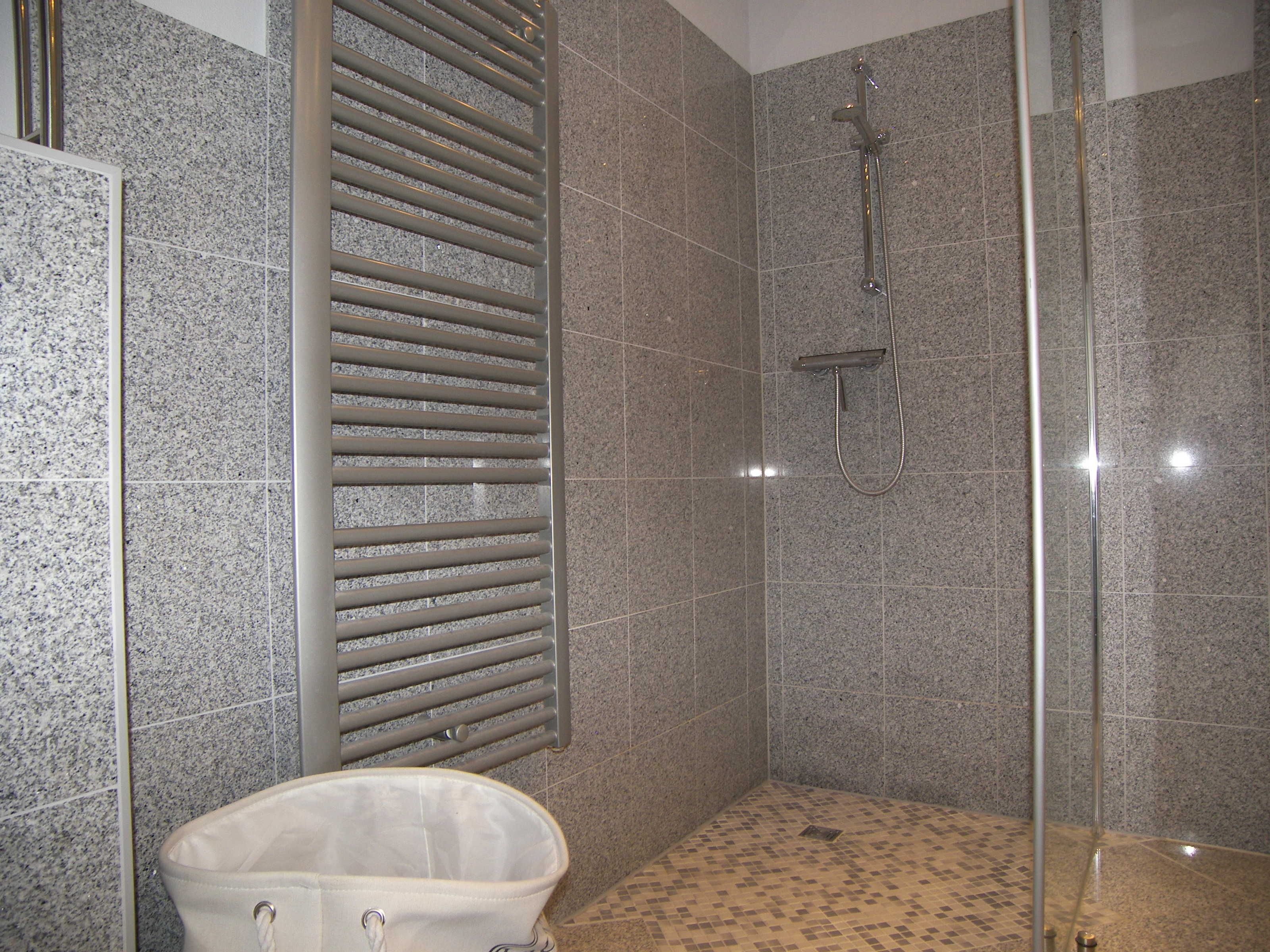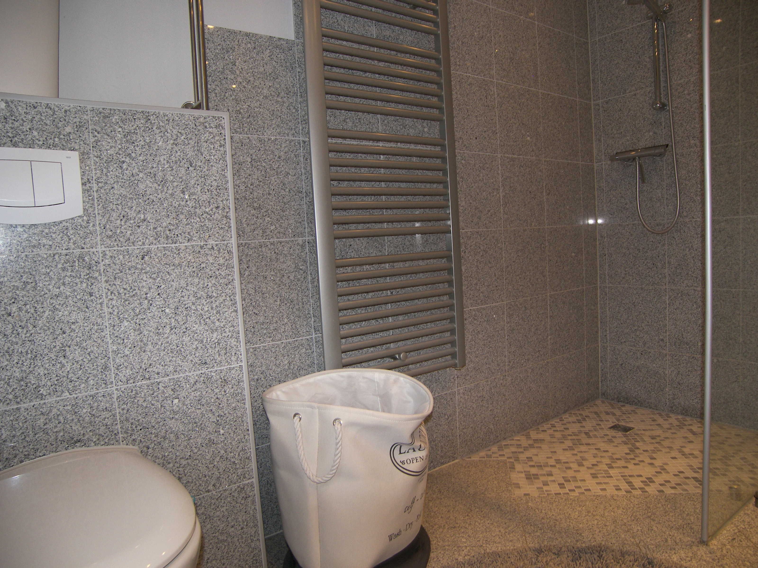 Das hochwertige Tageslichtbad bietet Ihnen eine bodengleiche Dusche, Handtuchheizung, WC sowie einen Haartrockner.