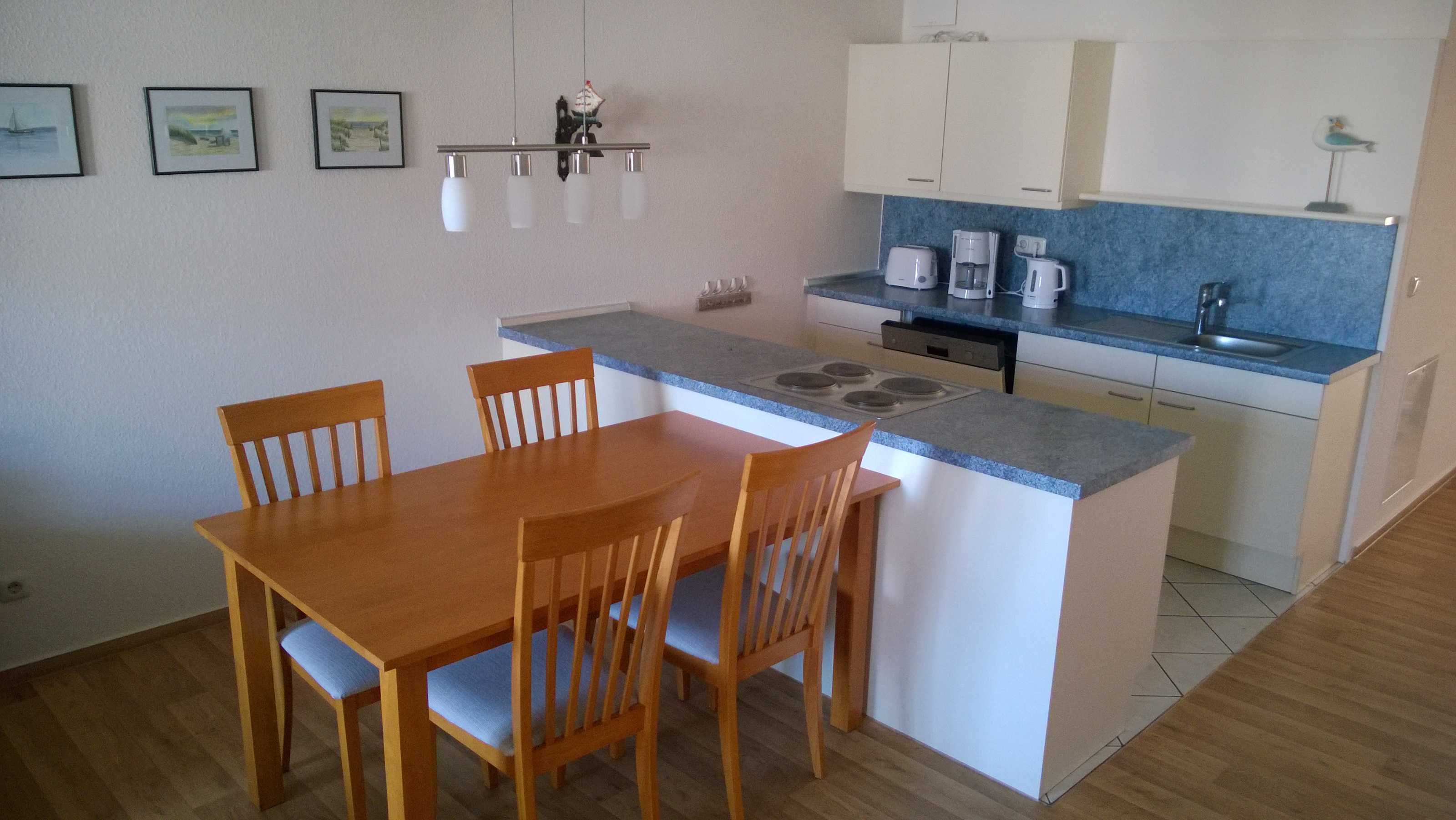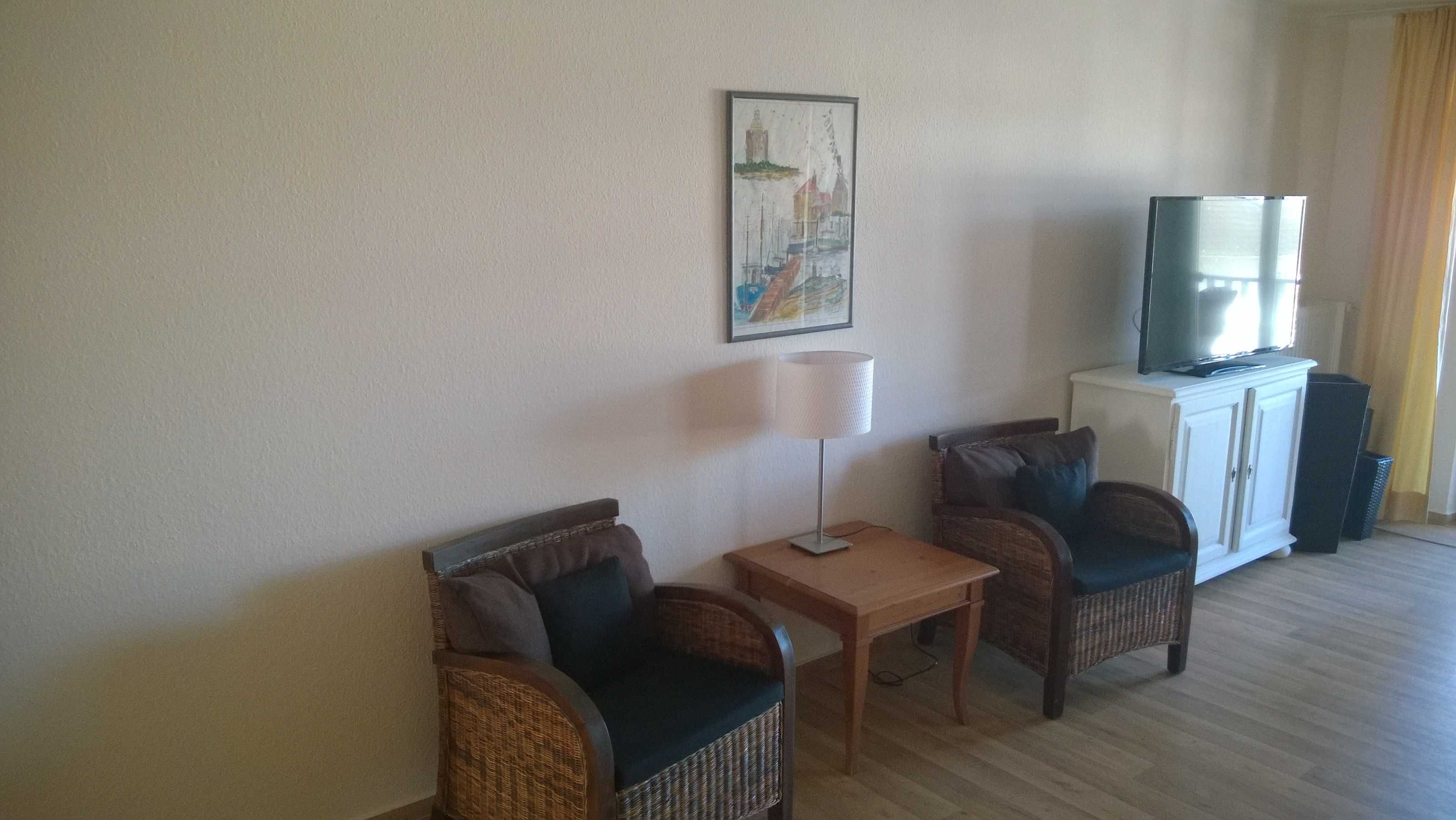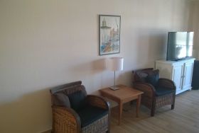 Auf einer Grundfläche von ca. 65 qm können sich vier Erwachsene bequem aufhalten und sich wohlfühlen. Neben dem großen Wohnzimmer mit Essbereich gibt es ein Schlafzimmer mit Doppelbett, sowie ein Bad und eine umfangreich ausgestattete offene Küche. Im Wohnzimmer lädt eine gemütliche Sofalandschaft, die mit wenigen Handgriffen zu einer Schlafmöglichkeit für 2 Personen wird, zum Erholen nach einem langen Strandtag, einer Wanderung zu Fuß oder per Rad oder einem anderen Ausflug ein. Zur technischen Ausstattung gehört ein 50-Zoll Flachbildfernseher, CD/DVD-Player und eine Musikanlage. Ein W-LAN-Zugang zur kostenlosen Nutzung ist selbstverständlich vorhanden. Der grosse Balkon lädt zum Verweilen zwischen den Ausflügen oder einem Strandtag ein. Er ist auch gross genug um dort z.B. zu Frühstücken. In der komplett ausgestatteten offenen Küche finden Sie ein Cerankochfeld, einen Backofen, einen Geschirrspüler, Kühlschrank mit Eisfach, Toaster, Kaffeemaschine, Wasserkocher und umfangfreiche Küchenutensilien. Das Schlafzimmer mit Doppelbett (2x 0,90 m x 2,00m) ist zusätzlich mit einem 32 Zoll Flachbildfernseher ausgestattet. Nachtischablagen und Kleiderschränke sind selbstverständlich. Wohn- und Schlafzimmer sind mit einem Laminat-Fußboden ausgelegt. Die Ausstattung des Bades besteht aus einer Duschkabine, Waschbecken und WC sowie einer Waschmaschine. Mitgebrachte Fahrräder können im Keller abgestellt werden.