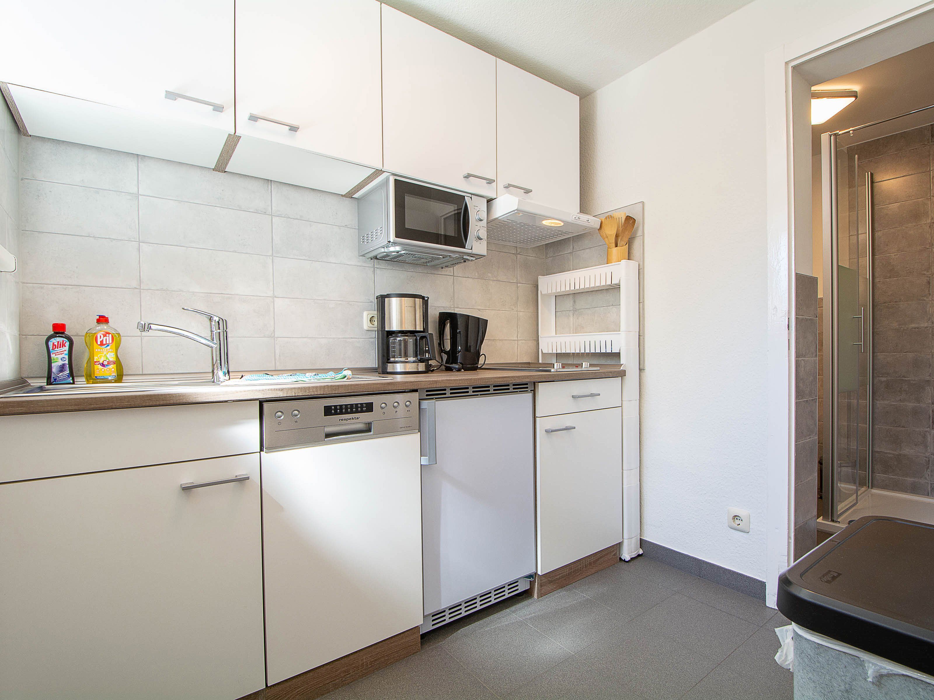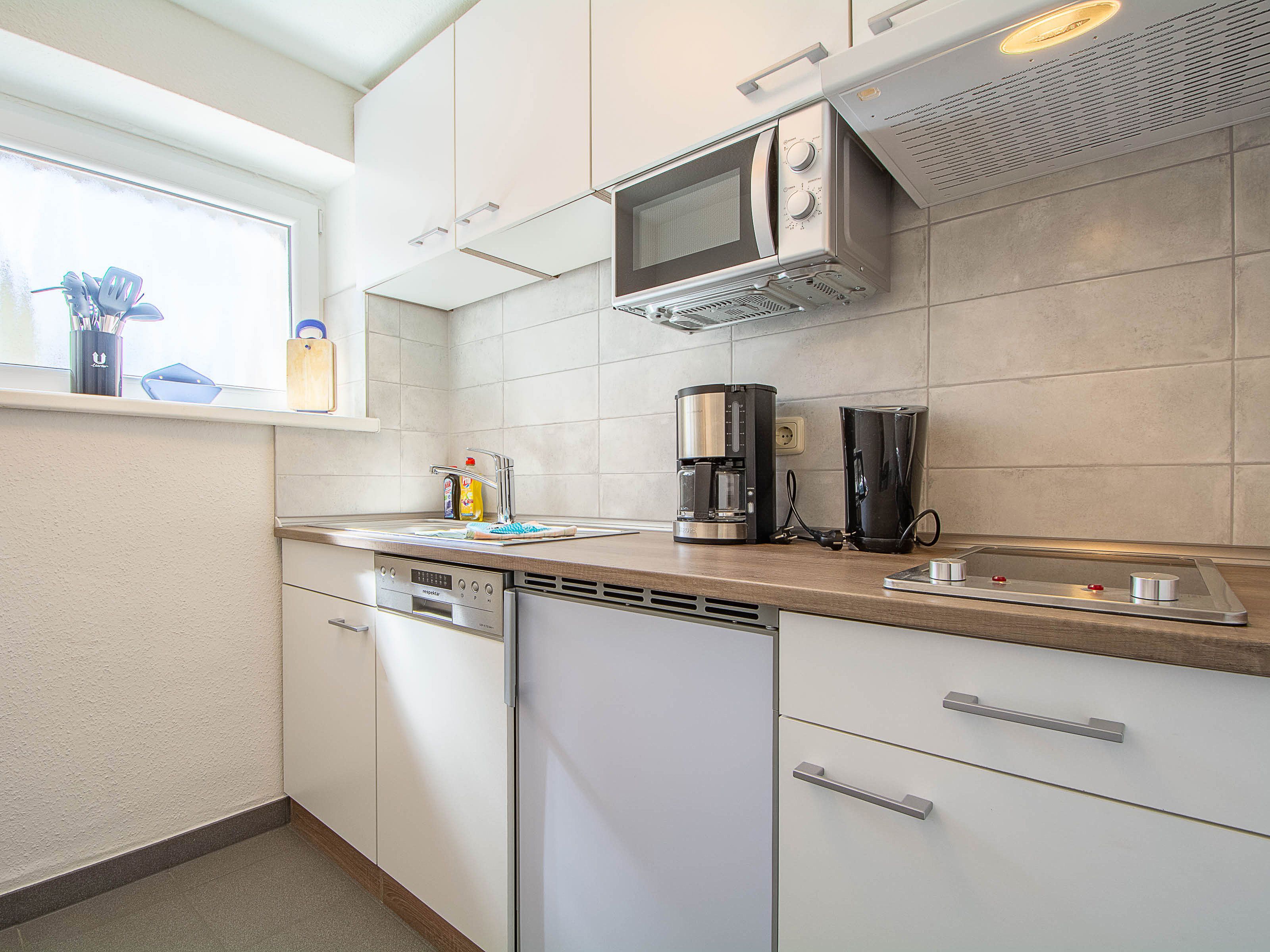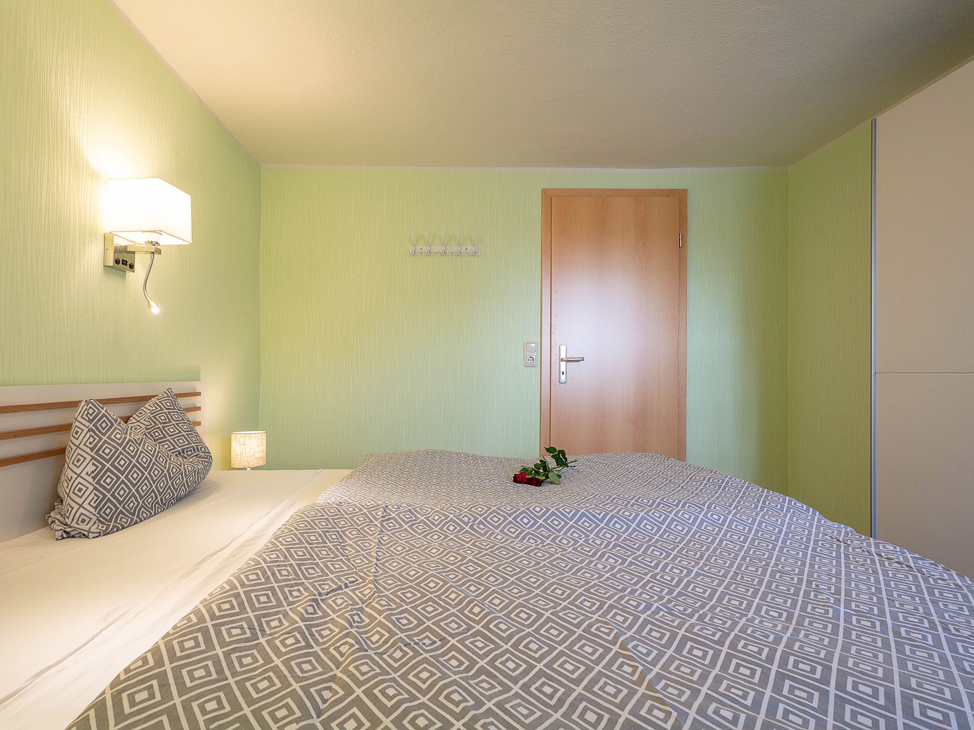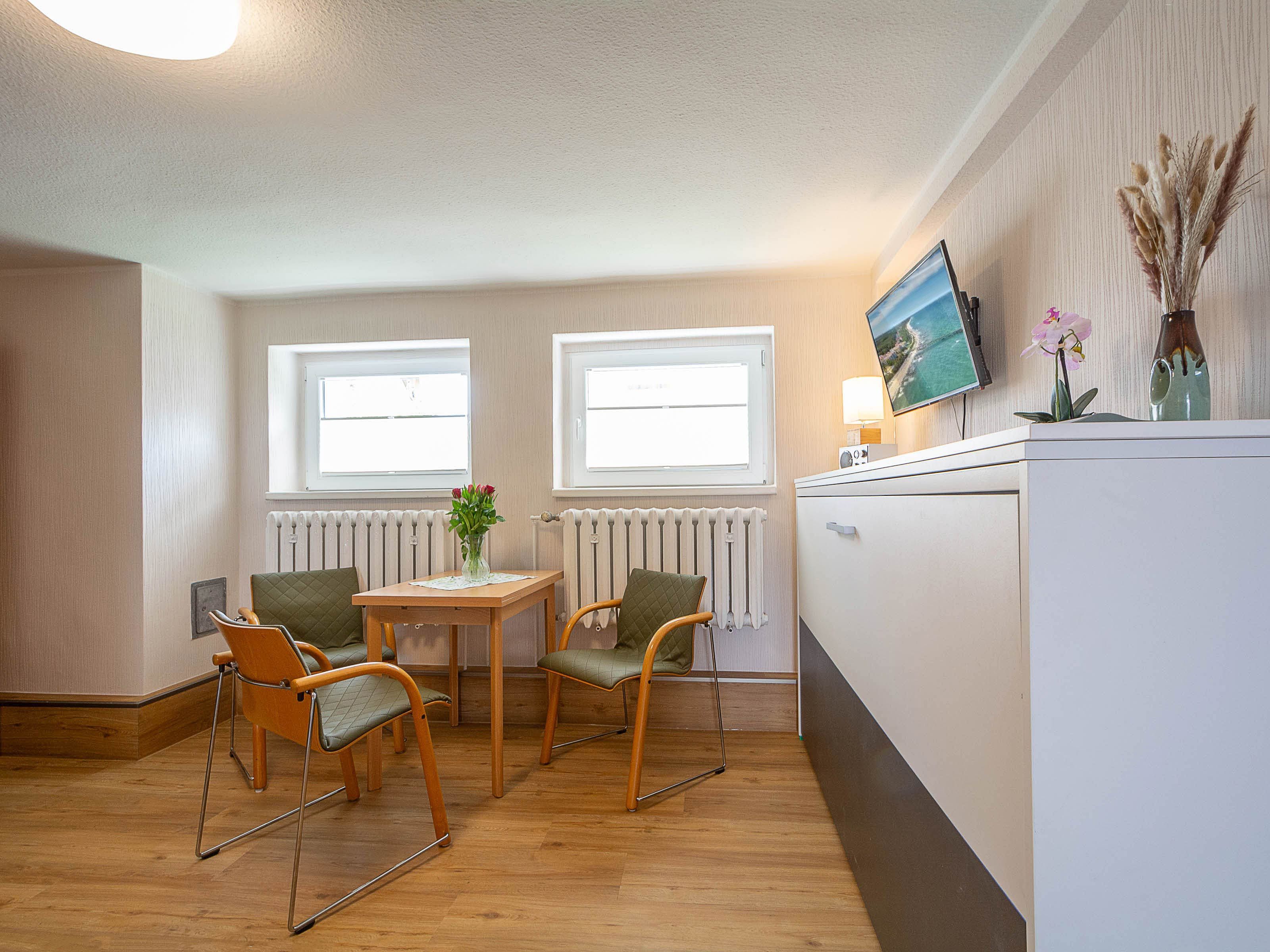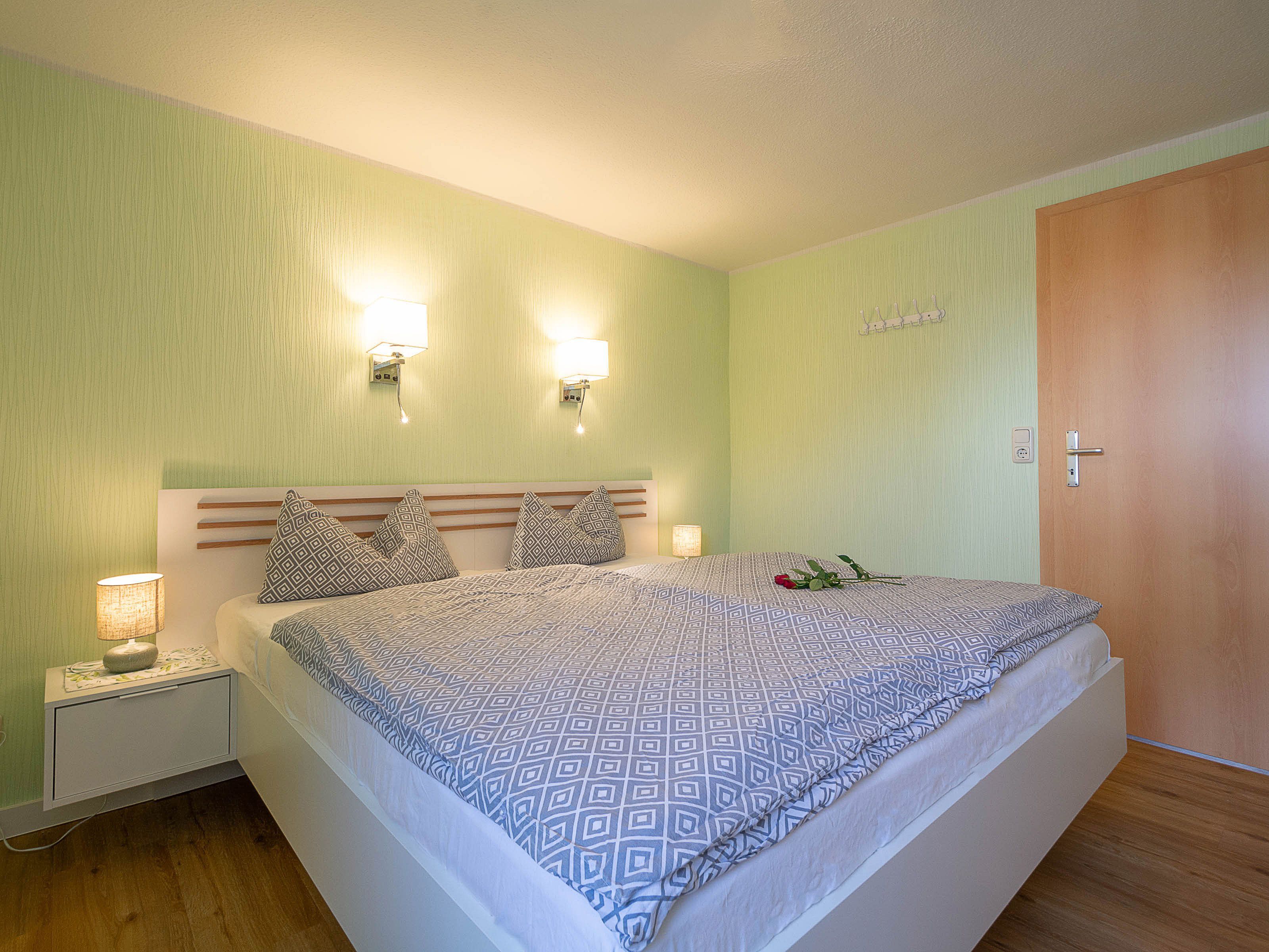 Sie wohnen in einer 2-Raum-Wohnung von ca. 45 qm Größe, die sich im Souterrain eines Einfamilienhauses befindet. Das Wohnzimmer ist ausgestattet mit einer bequemen Sitzgruppe, Essecke, Radio und Flachbild-TV sowie einem Schrankbett für eine dritte Person. Das Schlafzimmer ist ausgestattet mit einem großen Doppelbett und einem Kleiderschrank. In der kleinen separaten Küchenzeile (2021 neu eingebaut) finden Sie den 2-Platten-Herd, Mikrowelle, Kühlschrank, Kaffeemaschine, Toaster, Wasserkocher und vieles mehr vor. Das moderne geflieste Bad wurde im Frühjahr 2022 renoviert und ist ausgestattet mit einer ebenerdigen Dusche, WC und Handtuchheizung.