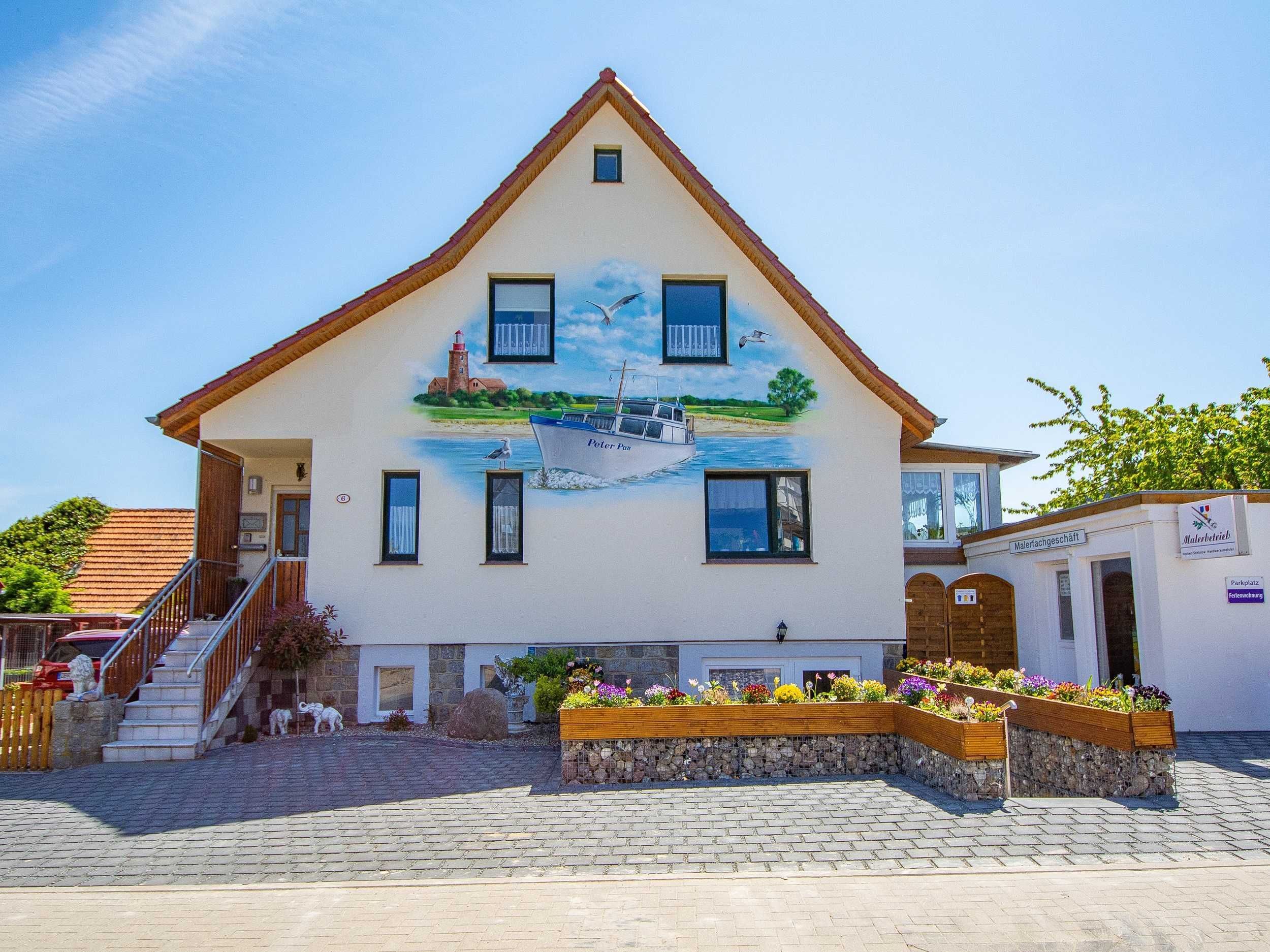 Das Haus Am Drosselweg 6, in dem sich Ihre Wohnung befindet, ist auch für Erstbesucher nicht zu übersehen. Auf der liebevoll von Malermeister Schlutow gestalteten Fassade ist die raue Ostsee mit Möwen und dem Strand abgebildet. Im Vordergrund das kleine Fischerboot Peter Pan, das ein Teil der Familiengeschichte erzählt; im Hintergrund wacht der Bastorfer Leuchtturm auf einem Hügel über die vorbeireisenden Schiffe und Boote. Hier beginnt direkt der Ostseeurlaub!