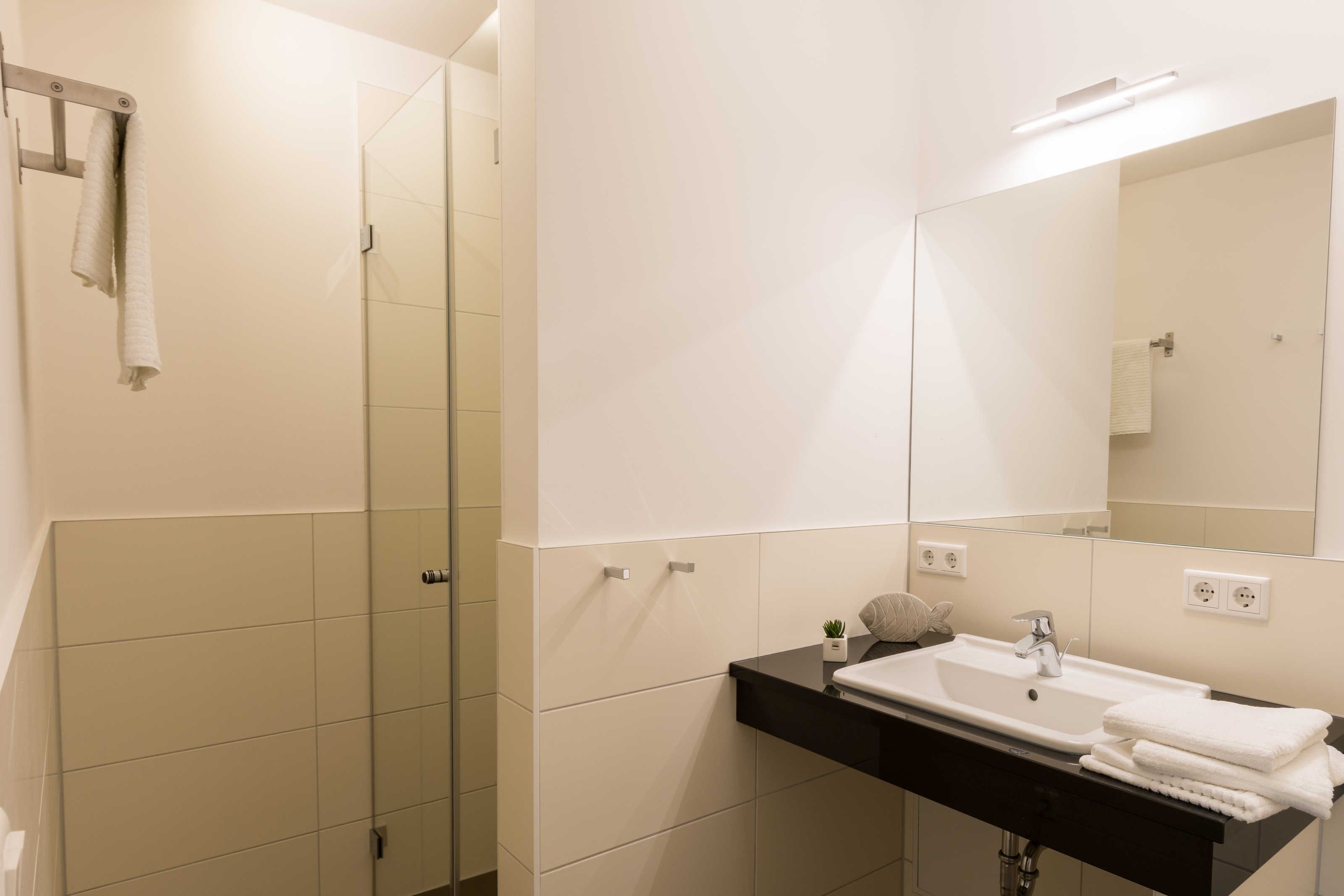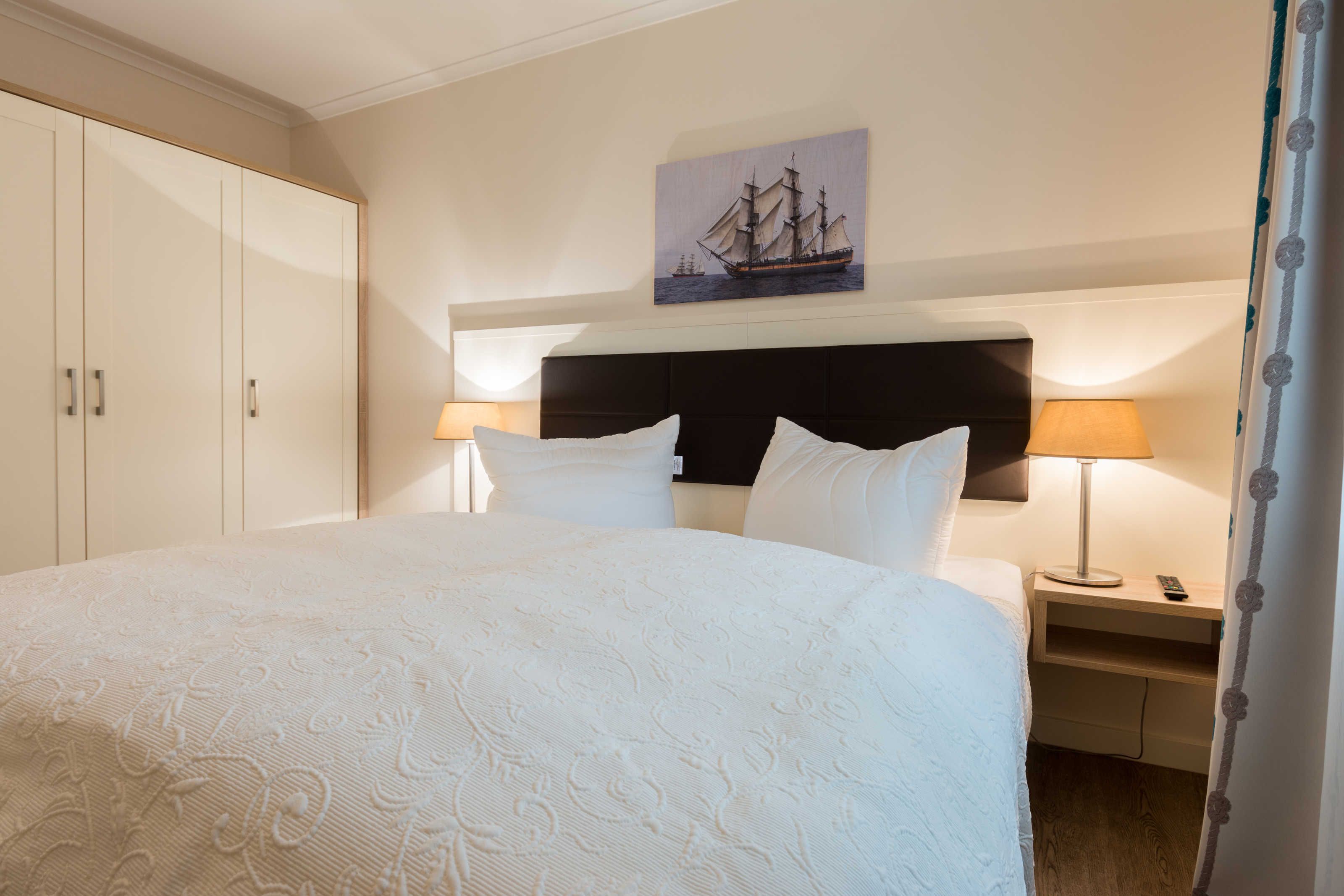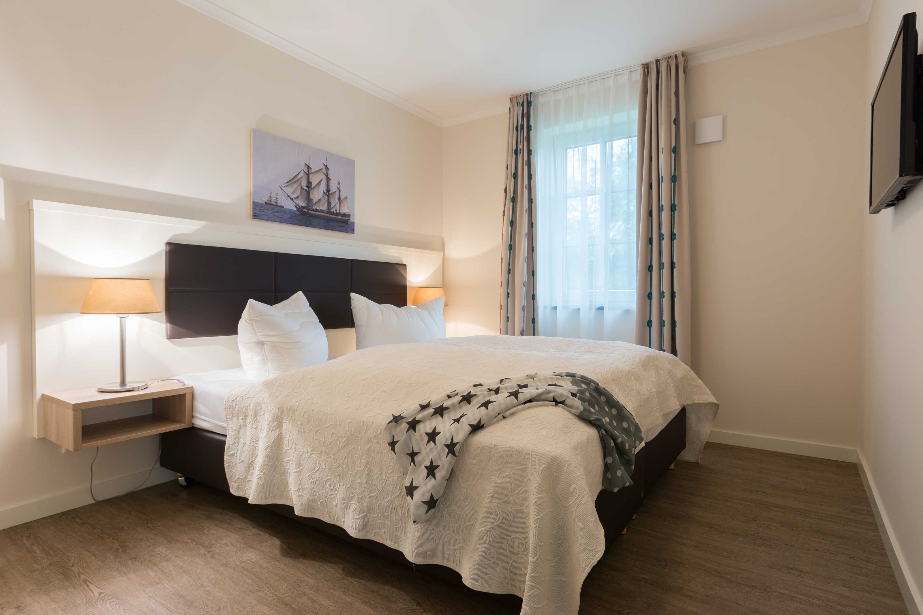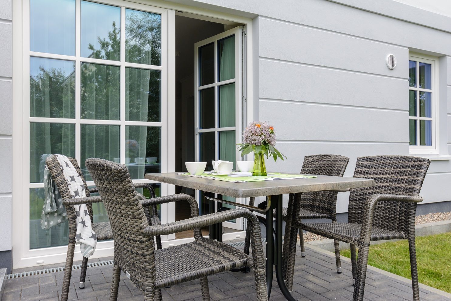 Die Wohnung verfügt über ein Wohn-Esszimmer inklusive offener Einbauküche, ein Schlafzimmer, ein Bad mit ebenerdiger Dusche, eine nach Norden ausgerichtete Terrasse sowie einen PKW-Stellplatz direkt am Haus. Vom Wohnbereich aus haben Sie Zugang zur Terrasse. Die Terrasse ist ausgestattet mit einem Tisch und vier Stühlen für gemütliche Stunden während Ihres Urlaubs. Der Wohnbereich mit Zugang zur Terrasse ist hell, lichtdurchflutet und geschmackvoll eingerichtet. Die bequeme Couchgarnitur mit Recamiere bietet eine weitere Schlafmöglichkeit (LF 150 x 200 cm). Ein Couchtisch sowie ein großer Esstisch mit vier Stühlen, ein Hocker, Flatscreen TV mit DVD-Player und eine kleine Musikanlage gehören ebenfalls zur Ausstattung. Die gut ausgestattete Küchenzeile beinhaltet einen Kühlschrank incl. integriertem 4*Tiefkühlfach, 2-Platten-Glaskeramikkochfeld mit Dunstabzugshaube , Mikrowelle mit Grillfunktion, Kaffeemaschine, Toaster sowie Wasserkocher. Geschirr und Gläser sind in ausreichender Zahl vorhanden. Im Schlafzimmer befindet sich ein komfortables Boxspringbett (180 x 200 cm) mit zwei Einzel- Bandscheiben-Federkernmatratzen, ein geräumiger Kleiderschrank und ein weiterer Flat-TV. An kühlen Herbst- und Wintertagen sorgt in allen Räumen eine Fußbodenheizung für Wärme und Gemütlichkeit.