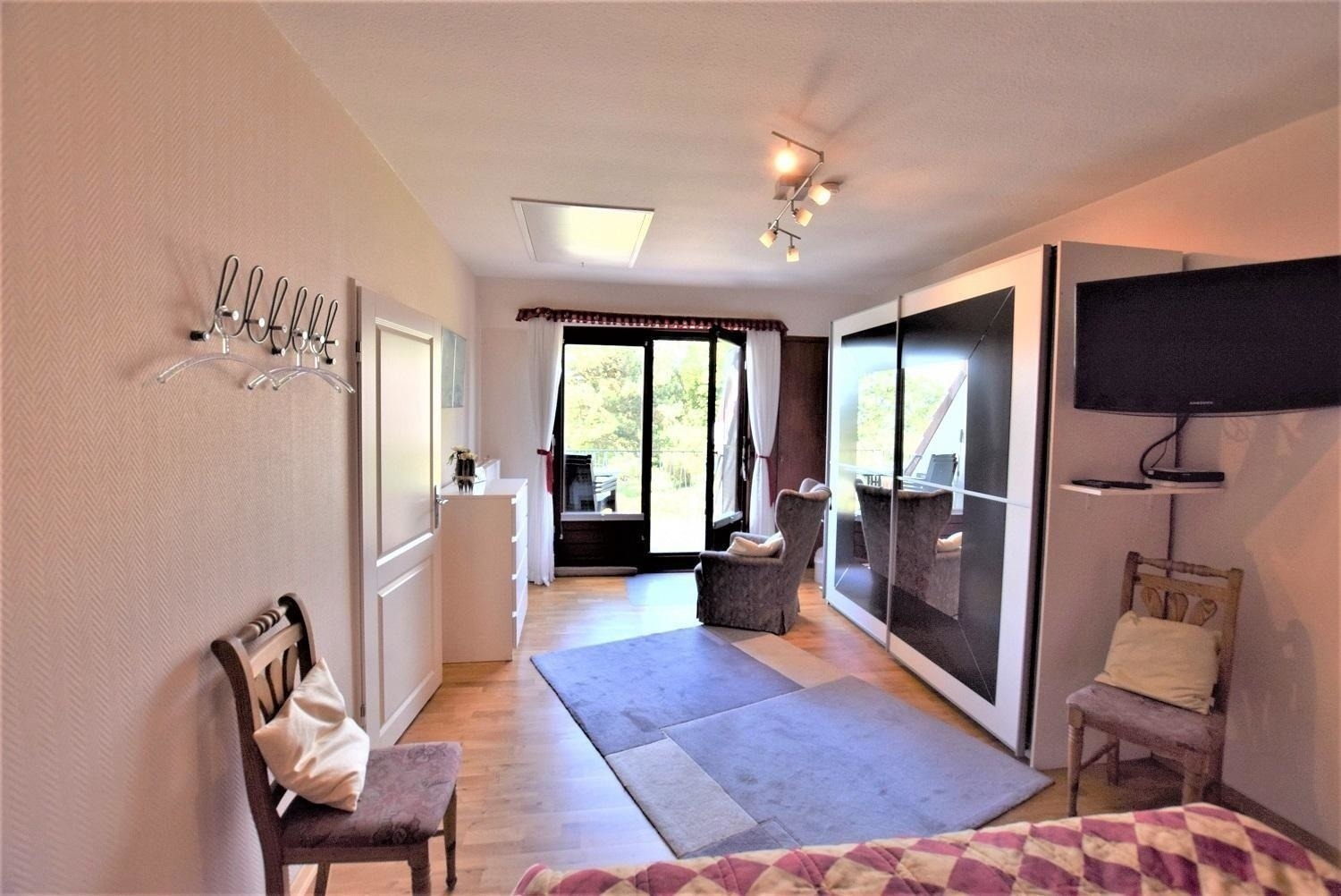 Die Ferienwohnung bietet einen eigenen Parkplatz für stressfreies Ankommen und Bewegen. Ein Einbau eines Holzkohlegrills ermöglicht gesellige Abende unter freiem Himmel. Der beeindruckende Seeblick lädt zum Entspannen ein. Diese Unterkunft vereint Komfort und Natur und ist somit der ideale Rückzugsort für erholsame Tage am Wasser.