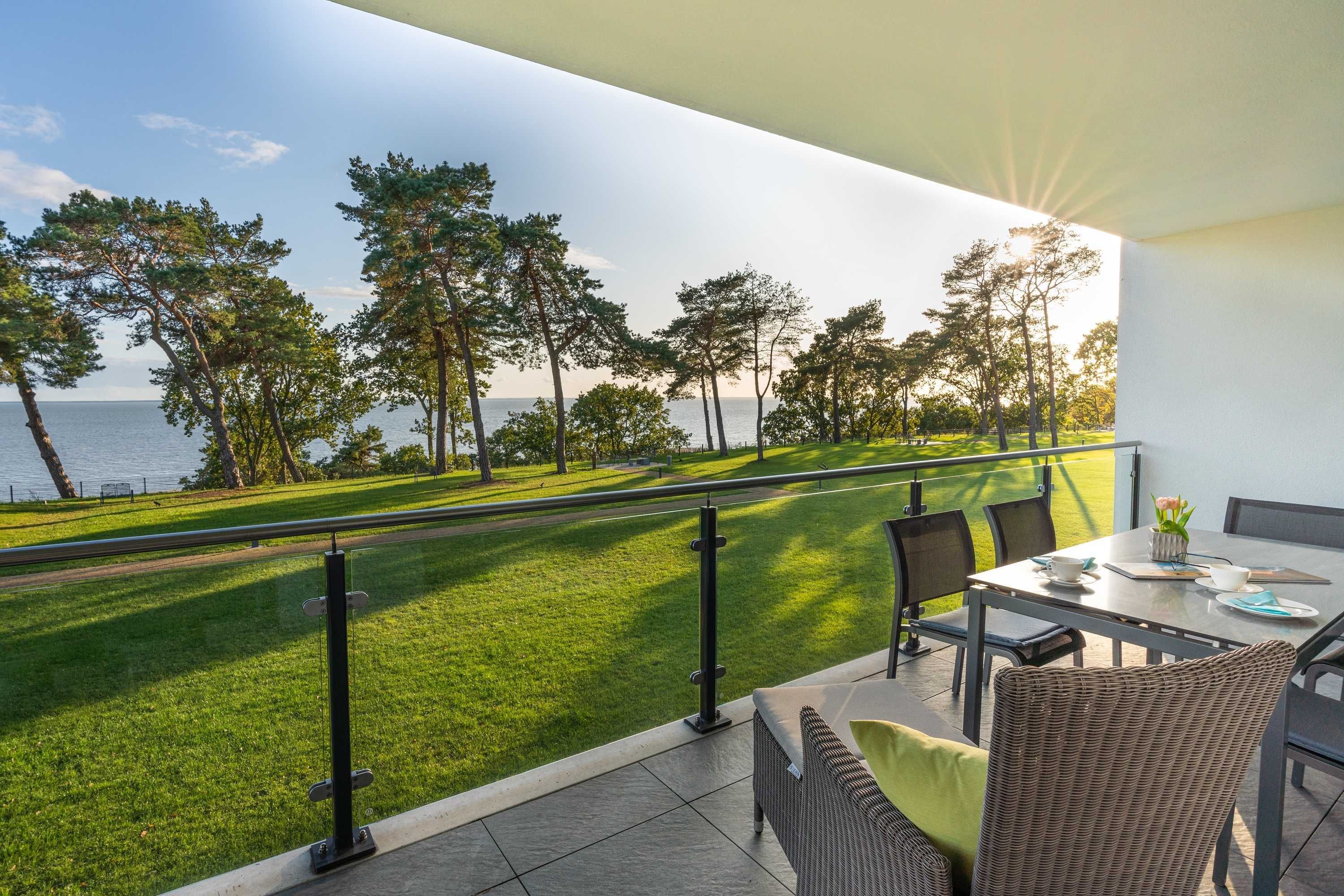 Alle Terrassenwohnungen und Appartements sind in hochwertiger Ausstattung eingerichtet. Von großen Rasenflächen und ebenen Gehwegen umgeben, stehen unsere sieben Ferienhäuser auf die Haffküste ausgerichtet auf einer weitflächigen Außenanlage zueinander. Unsere Haffterrassen laden mit Sitzgelegenheiten an der Steilküste zum Entspannen ein.