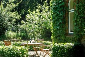 Die Ferienwohnung Kiekut ist stilvoll romantisch mit modernen Elementen eingerichtet.  Sie liegt im Erdgeschoss des alten Zollhauses und bietet bis zu 2 Erwachsenen und 2 Kindern bis 14 Jahren viel Wohlfühlkomfort mit einer Fußbodenheizung unter dem Terracottaboden. Ideal für 2 Leute und Hund. Die lichtdurchfluteten Räume laden ein zu gemütlichen und entspannten Stunden vor dem  Kamin, abgelagertes Holz liegt einsatzbereit gleich daneben. Das Klavier (Feurich 1929) ist komplett restauriert, wird regelmäßig gestimmt und ist spielbereit. (9 Uhr - 21 Uhr)