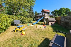 Unser kinderfreundliches Ferienhaus (zentralbeheizt) befindet sich auf einem 1.000 m² großen, grünem Grundstück. Die Entfernung zum Strand und zum Hafen beträgt jeweils ca. 1 km. Der gut ausgebaute Rad- und Wanderweg von Peenemünde bis nach Ahlbeck führt direkt an unserem Ferienhaus vorbei. Erholen Sie sich im Garten mit Liegewiese, Gartenmöbeln und Grill. Ihre Kinder können sich auf unserem Kinderspielplatz mit überdachter Tischtennisplatte, Rutsche, Spielhaus, Schaukel und Sandkasten vergnügen.
