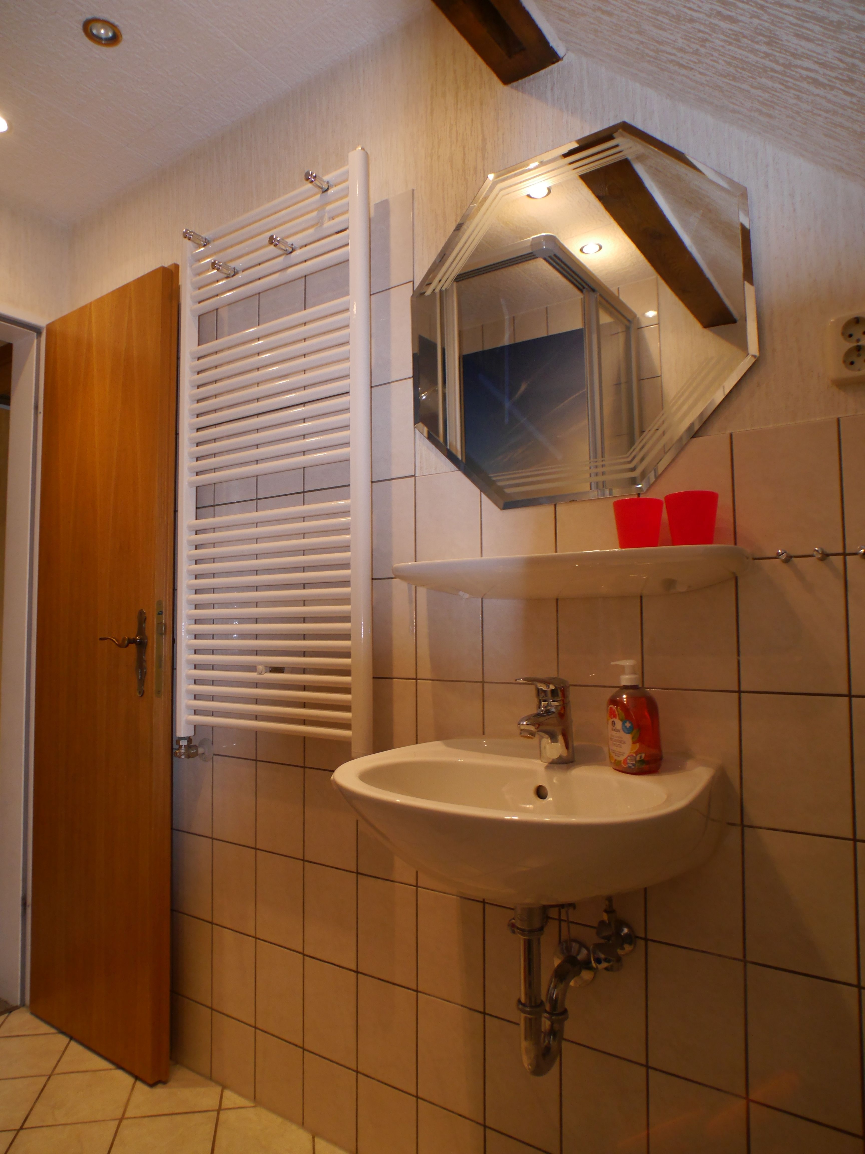 Die gemütliche Ferienwohnung befindet sich im Obergeschoß, verfügt über Sat-TV und Radio/MC/CD und hat eine Wohnküche mit Herd, Kühlschrank, Toaster, Mikrowelle, Kaffeemaschine und Essecke sowie ein Bad mit WC, Waschtisch und Dusche. Das Obergeschoss erreichen Sie über eine steile Treppe. Die Ferienwohnung ist modern eingerichtet. Im Garten steht Ihnen ein Gartenhaus mit Gartenmöbeln und Grill zur Verfügung. Die Wohnung wurde im Winter 2021 gemalert.