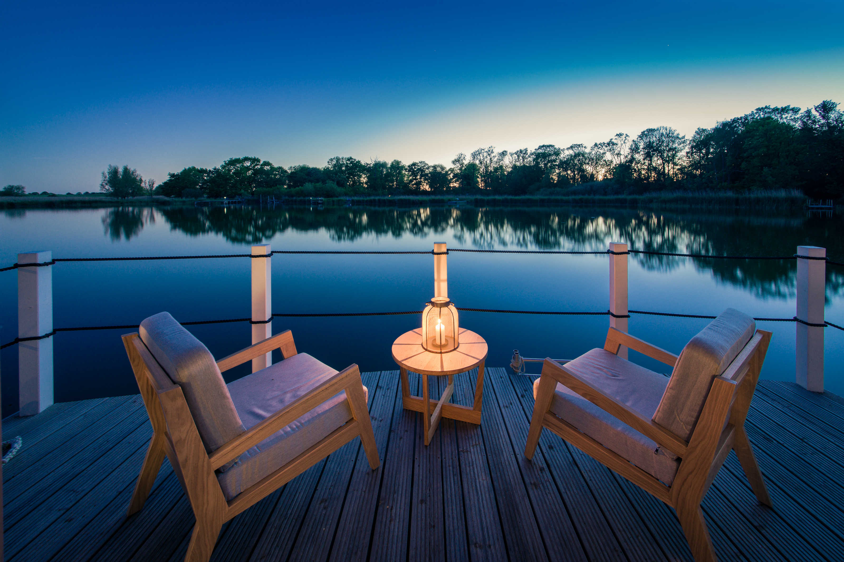 Die neuen exklusiven Schwimmenden Suiten liegen in der kleinen 4-Sterne Marina Naturhafen Krummin auf der Insel Usedom.