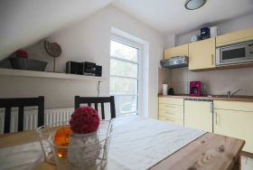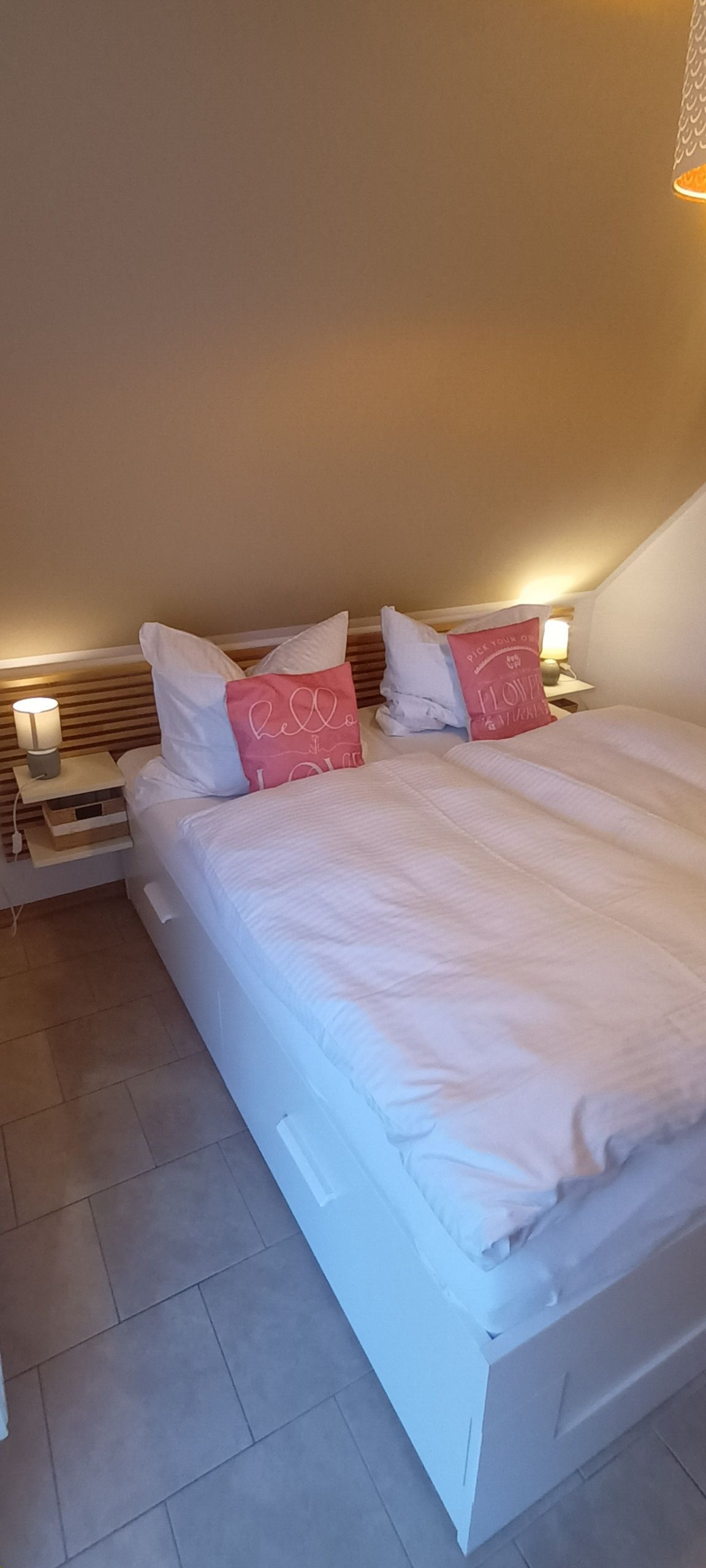 Die Ferienwohnung Herzmuschel im Dachgeschoss eines Ferienhauses mit 2 Wohneinheiten verfügt über 2 Schlafzimmer und bietet Platz für bis zu 4 Personen. Die Ferienwohnung verfügt über einen Wohn- und Essbereich , die offene Küche ist komplett ausgestattet. Ein Badezimmer mit bodengleicher Dusche und WC ist auch vorhanden. Die Ferienwohnung hat einen eigenen Balkon mit Grill und Sitzgelegenheiten.