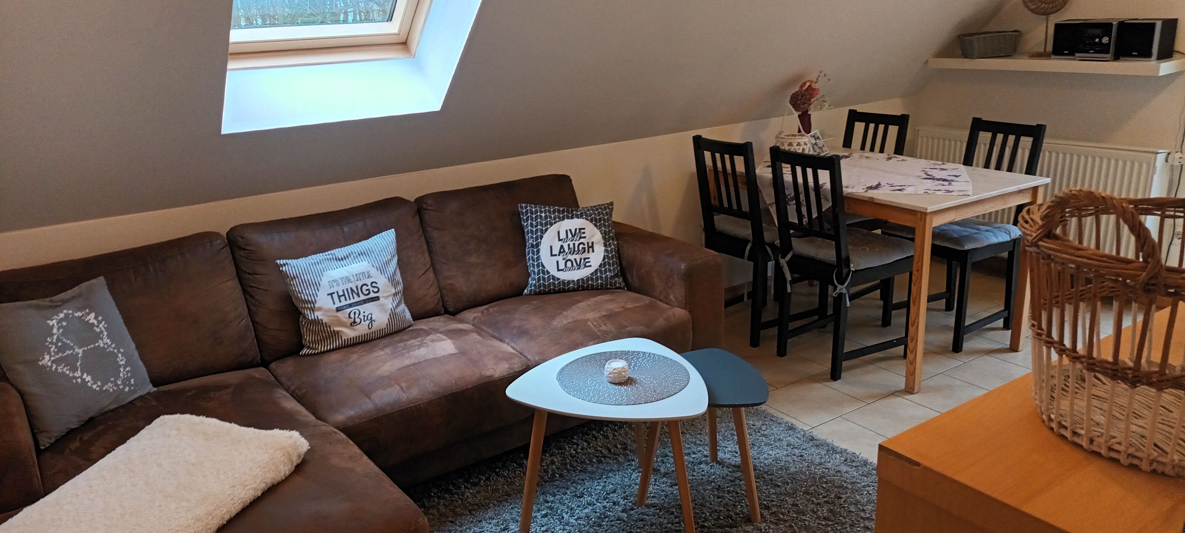 Im Obergeschoss eines Ferienhauses mit 2 Wohneinheiten befindet sich diese liebevoll eingerichtete Ferienwohnung Herzmuschel.
