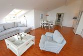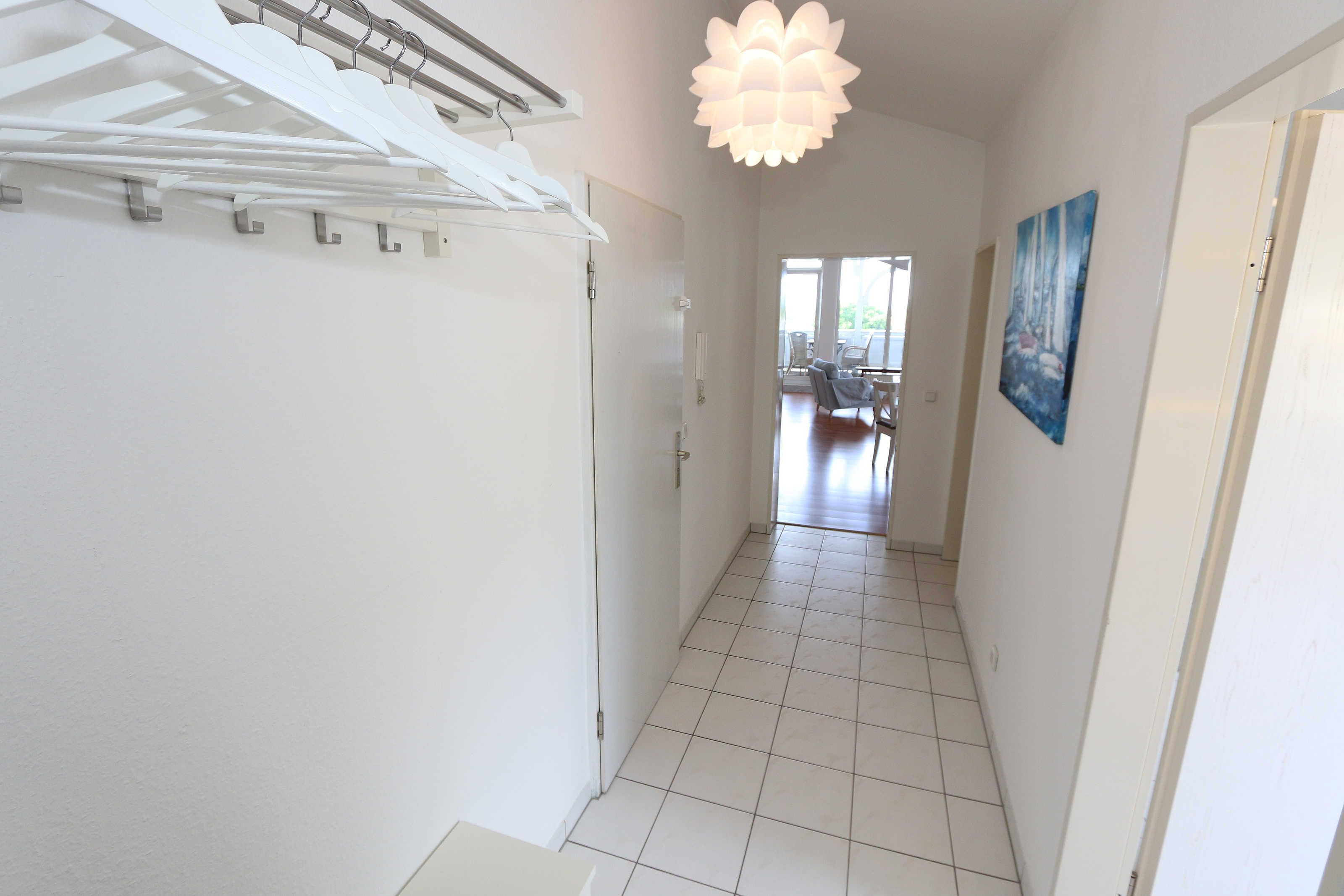 Herzlich willkommen in der 3-Zimmer-Ferienwohnung mit ca.102qm welche Ihnen Platz für max. 4 Erwachsene + 1 Kleinkind bis 3 Jahre im Kinderreisebett bietet. Die Nichtraucherwohnung wurde geschmackvoll und harmonisch im Beachhouse-Stil ausgestattet, so dass Sie hier einen entspannten und komfortablen Urlaub verbringen können. Schon morgens können Sie Ihr Frühstück auf dem großen überdachten und möblierten Balkon mit Strandkorb einnehmen und dabei den herrlichen Blick von der 3. Etage auf den Selliner See genießen. Der Wohnbereich bietet Ihnen eine gemütliche, hellgraue Couchecke mit Couchtisch, Leselampe und einen bequemen Lesesessel, welcher einfach zum Faulenzen einlädt! Ein weißes Sideboard, eine Glasvitrine im maritimen Stil sowie ein großer Esstisch runden zusammen mit einer Mini-Stereo-Anlage, einem Flachbild-TV, DAB-Radio, einen Blu-Ray-Player und einen inklusiven Internetzugang (WLAN) den Wohnbereich ab. Die helle und separate Einbauküche ist selbstverständlich mit einem Geschirrspüler, Backofen, 4 Zonen-Induktionsfeld, Abzugshaube, Kühlschrank mit Gefrierschrank, Mikrowelle, Wasserkocher, Toaster, Kaffeemaschine und diversen Kochutensilien ausgestattet. Neben dem 38 m² großen Wohn- und Esszimmer gibt es noch zwei Schlafzimmer. Ein Schlafzimmer ist mit einem Doppelbett (1,80m x 2,00m), 2 Beistelltischen und einem begehbaren Kleiderschrank ausgestattet. Das kleinere Schlafzimmer verfügt über 2 Einzelbetten (0,90m x 2,00m), verstellbare Lattenroste, Nachttischablagen und einen begehbaren Kleiderschrank und einen kleinen Tisch. Insektenschutzgitter befinden sich in den Schlafzimmern sowie an der Balkontür. Das moderne Tageslichtbad ist mit einer Dusche, WC, Waschtisch, Fön und einer Badewanne ausgestattet. So können Sie auch mit einem herrlichen Schaumbad den Tag ausklingen lassen. Ein wohnungseigener Abstellraum mit Reinigungsutensilien gehört dazu. Im Keller des Hauses können Sie eine gemeinschaftliche Waschmaschine und einen Trockner gegen Gebühr nutzen. Eine begrenzte Abstellmöglichkeit für Ihre Fahrräder ist am Haus gegeben. Ein überdachter PKW-Stellplatz (Nr.17) steht Ihnen inklusive zur Verfügung. Haustiere sind nicht erlaubt. Die Erstausstattung eines Wäschepaketes (komplette Bettwäsche, 1 Duschhandtuch, 1 kleines Handtuch) können Sie bis 14 Tage vor Anreise gegen einen Aufpreis dazu buchen oder durch eigene ergänzen. Ab 2 gebuchten Paketen erhalten Sie einmalig 1 Geschirrhandtuch und 1 Duschvorleger hinzu.