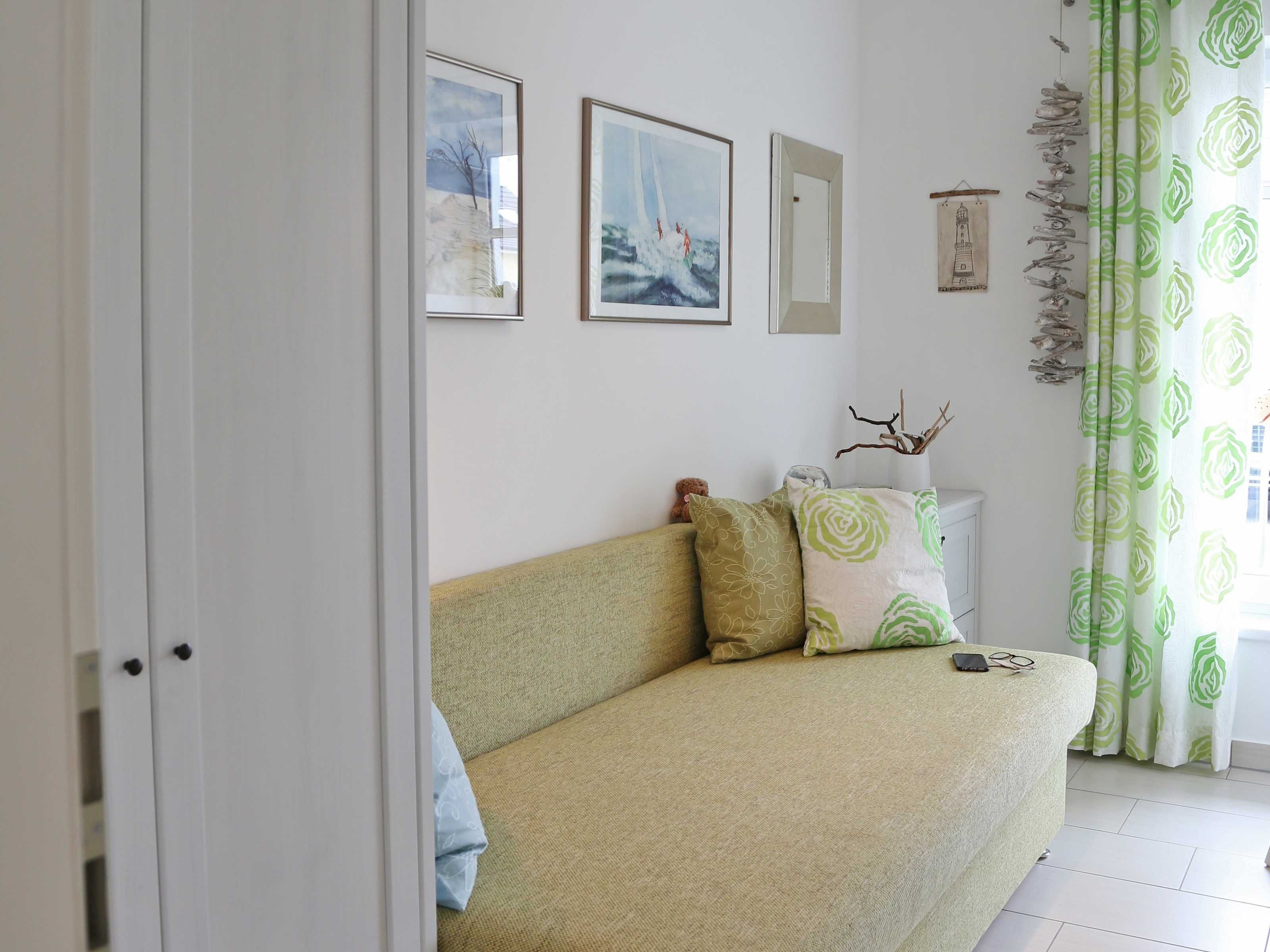 Herzlich Willkommen in unserer modernen maritimen 3-Zimmer Ferienwohnung. Hier können Sie nachts mit dem Rauschen der Ostseebrandung einschlafen. Das große Schlafzimmer verfügt über ein stattliches Doppelbett (160 x 220cm), einer auserlesenen Bücherwand zum schmökern sowie TV inclusive Radio. Das zweite Schlafzimmer ist mit einem Einzelbett (80x200cm) und einer Schlafmatratze, als Notaufbettung, ausgestattet. In beiden Schlafzimmern gibt es je einen Kleiderschrank und eine Kommode. Für die Endreinigung berechnen wir zusätzlich EUR 100,00. Wir bitten Handtücher und Bettwäsche mitzubringen.