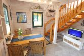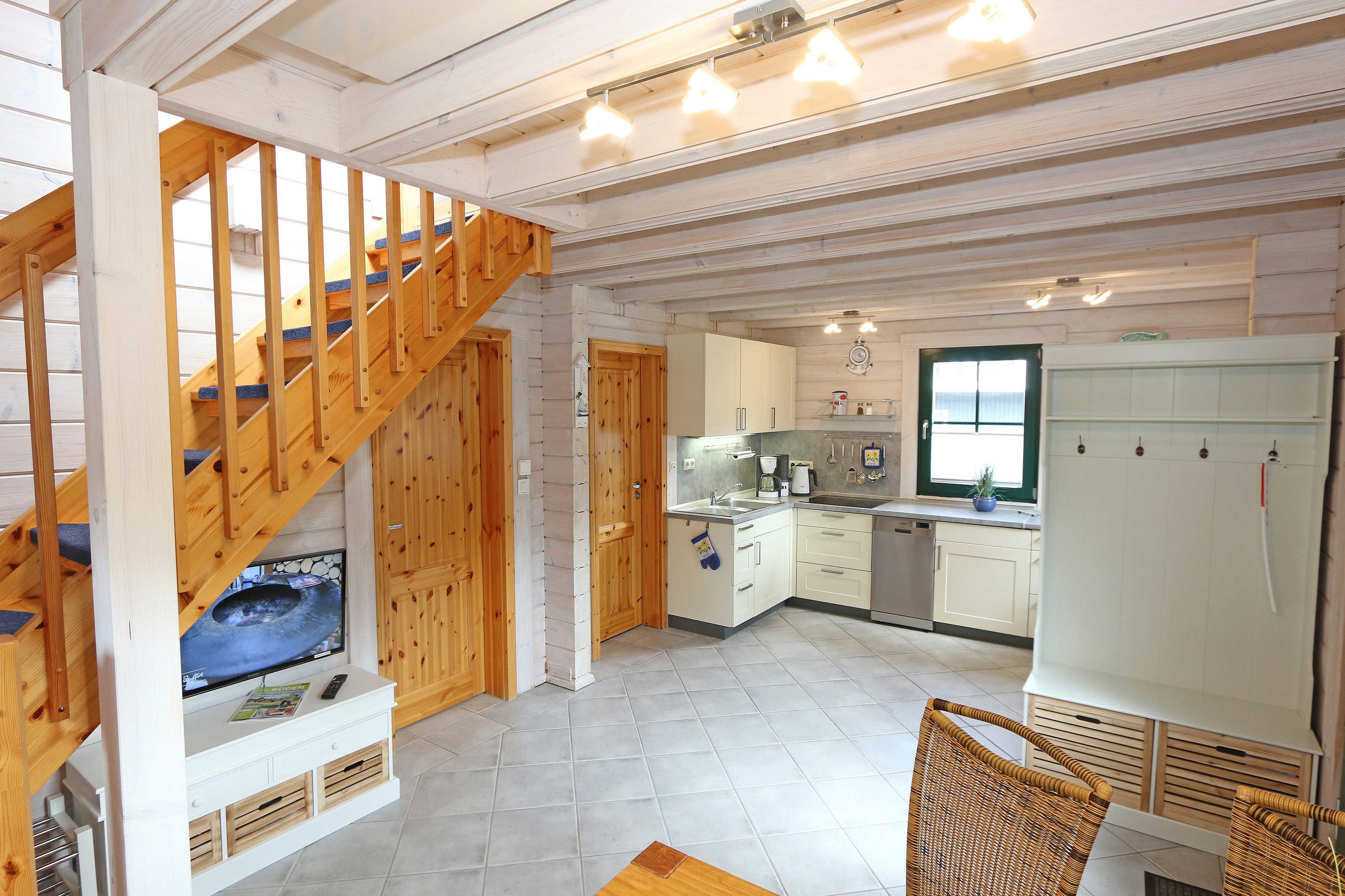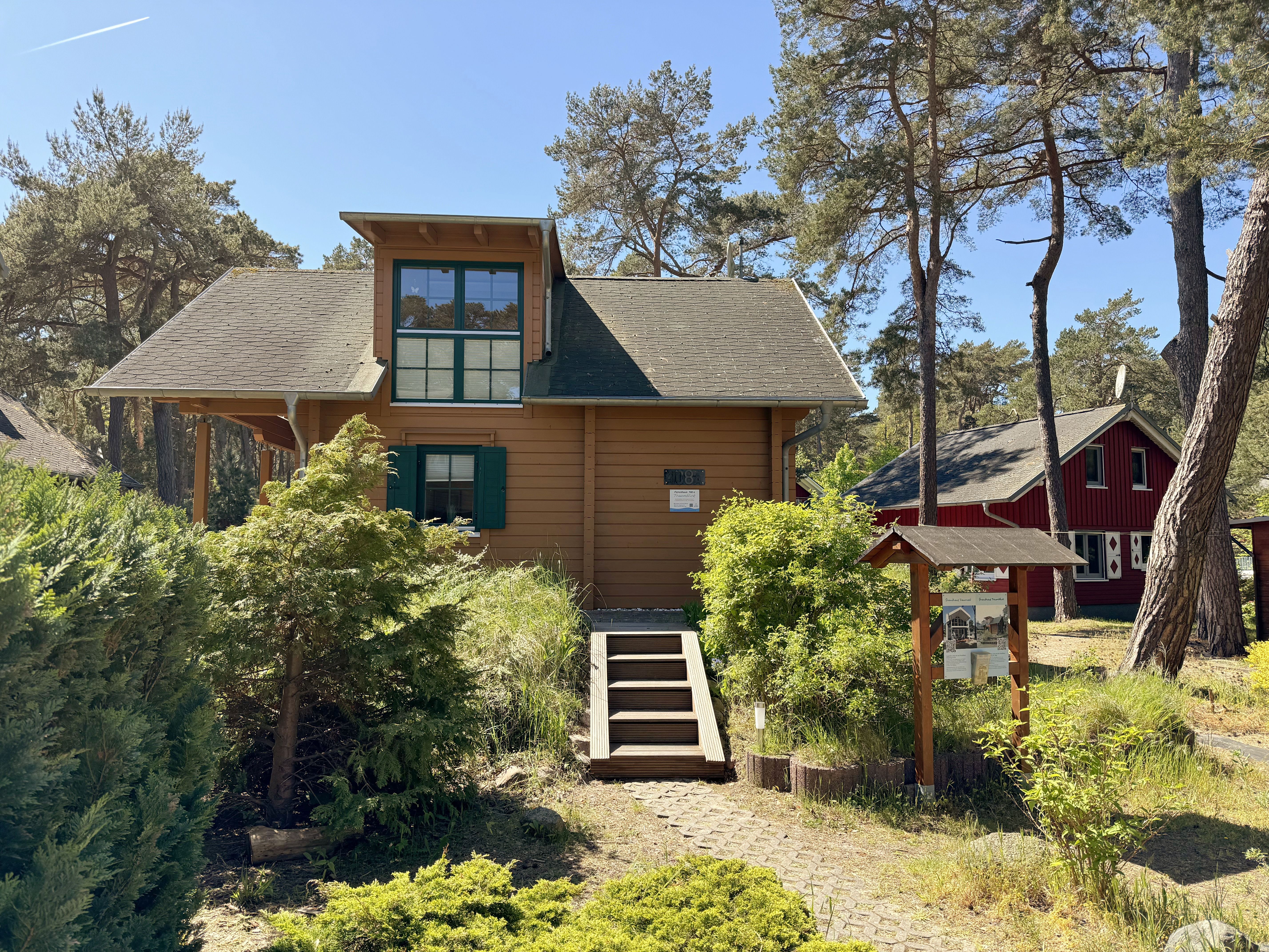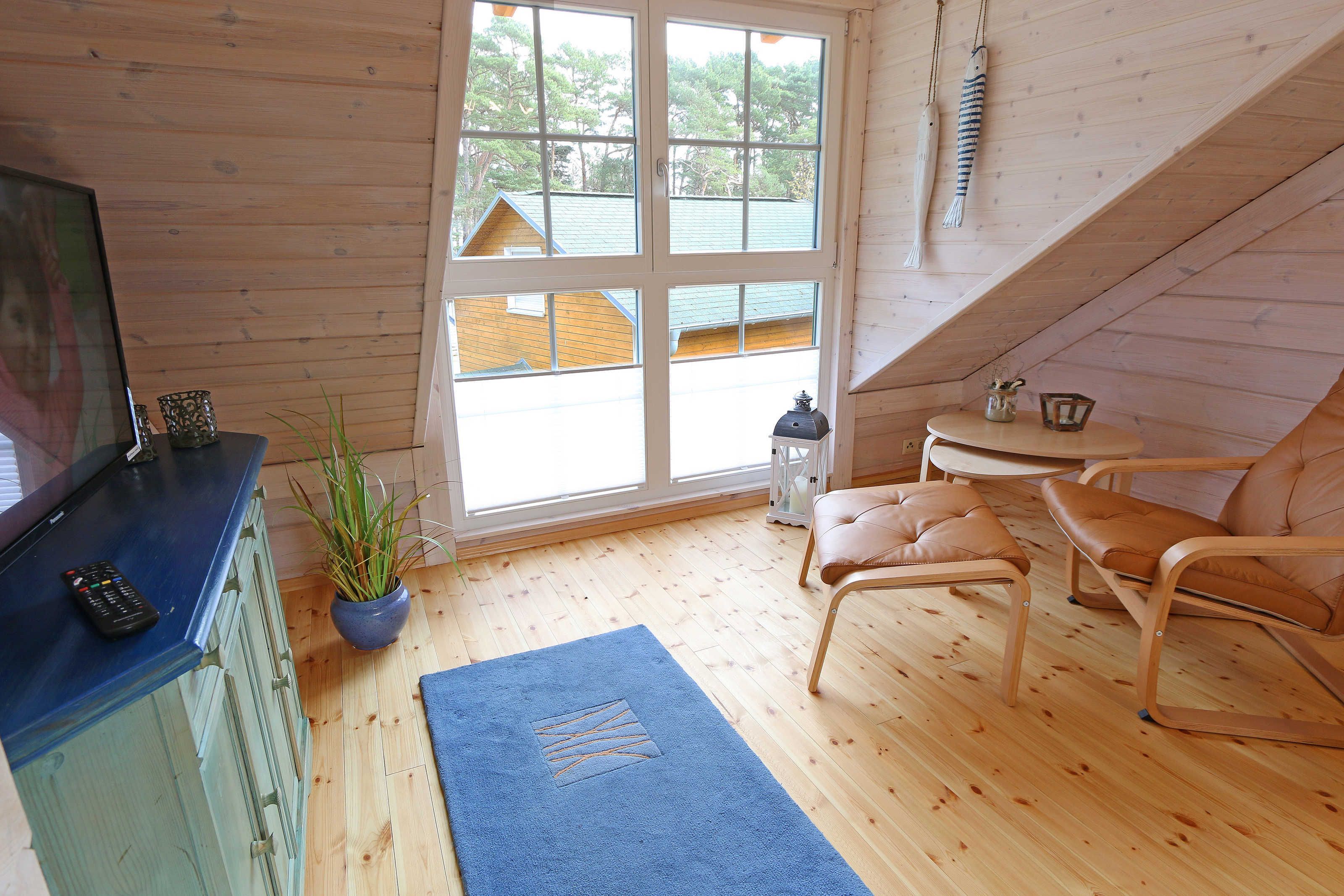 Das Strandhaus „Traumblick“ bietet Ihnen Platz für max. 4 Erwachsene und 1 Kleinkind bis 3 Jahre im Kinderreisebett. Das ca. 65 qm große Nichtraucherhaus betreten Sie über die überdachte Terrasse. Im Erdgeschoss befindet sich der Wohnbereich mit Einbauküche und Essplatz. Die Küchenzeile ist ausgestattet mit einem Geschirrspüler, Kühlschrank mit Gefrierfach, Cerankochfeld, Backofen, Senseo Padmaschine, Mikrowelle, Kaffeemaschine, Wasserkocher, Toaster und ambitionierte Hobbyköche finden eine große Auswahl an Küchenutensilien. Angrenzend befindet sich der gemütliche Essplatz mit SmartTV, welcher auch beim Kochen zu Ihrer Unterhaltung dient. Das erste Schlafzimmer befindet sich im Erdgeschoss, welches mit 2 Einzelbetten (je 0,90 m x 2,00 m), Nachttischablage und Kleiderschrank ausgestattet ist. Für einen erholsamen Schlaf sorgen die Fensterläden sowie das Plissee. Das Tageslicht-Bad mit Dusche, Waschplatz, Kosmetikspiegel, WC und Fön ist ebenfalls im Erdgeschoss untergebracht. Über eine Kiefernholztreppe erreichen Sie das Obergeschoss mit großer, lichtdurchfluteter Galerie. Hier können Sie vom bequemen Relax-Sessel oder der großen Couchecke mit Couchtisch und Leselampe die traumhafte Aussicht durch das ca. 4 qm große Panoramafenster bis hin zum Meer genießen. Ein weiterer Smart-TV, ein Blu-Ray-Player sowie eine Mini-Stereo-Anlage mit DAB-Radio sorgen auch hier für Ihre Unterhaltung. Auch im Urlaub brauchen Sie auf einen Internetzugang (WLAN) nicht zu verzichten. Dieser ist für Sie inklusive. Das zweite Schlafzimmer im Obergeschoss mit Dachschräge ist mit einem Doppelbett (1,80 m x 2,00 m), Wäschekommoden und dunkle Plissee´s ausgestattet. Die überdachte und bestuhlte Terrasse (Ost - Südost) ermöglicht es Ihnen bei jedem Wetter im Freien unter Kiefern zu sitzen und dem Rauschen des Meeres zu lauschen. Für einen gemütlichen Ausklang Ihres Urlaubstages können Sie auch einen Gemeinschaftsgrill nutzen. Für unsere kleinen Gäste halten wir 1x Hochstuhl, 1x Kinderreisebett (ohne Matratze/ Bett-Inlett) und ein Treppenschutzgitter bereit. In den Schlafräumen und im Bad sind die Fenster mit Insektenschutzgitter versehen. Ein kostenfreier Parkplatz (Nr. 108a) ist direkt vor dem Haus. Ihre geliehenen oder mitgebrachten Fahrräder können Sie im Abstellraum am Haus abstellen. 1 Haustier ist mit seinem eigenen Schlafplatz gegen eine Gebühr ein gern gesehener Gast. Die Erstausstattung eines Wäschepaketes (komplette Bettwäsche, 1 Duschhandtuch, 2 kleine Handtücher) können Sie bis 14 Tage vor Anreise gegen einen Aufpreis dazu buchen oder durch eigene ergänzen. Ab 2 gebuchten Paketen erhalten Sie einmalig 1 Geschirrhandtuch und 1 Duschvorleger dazu.