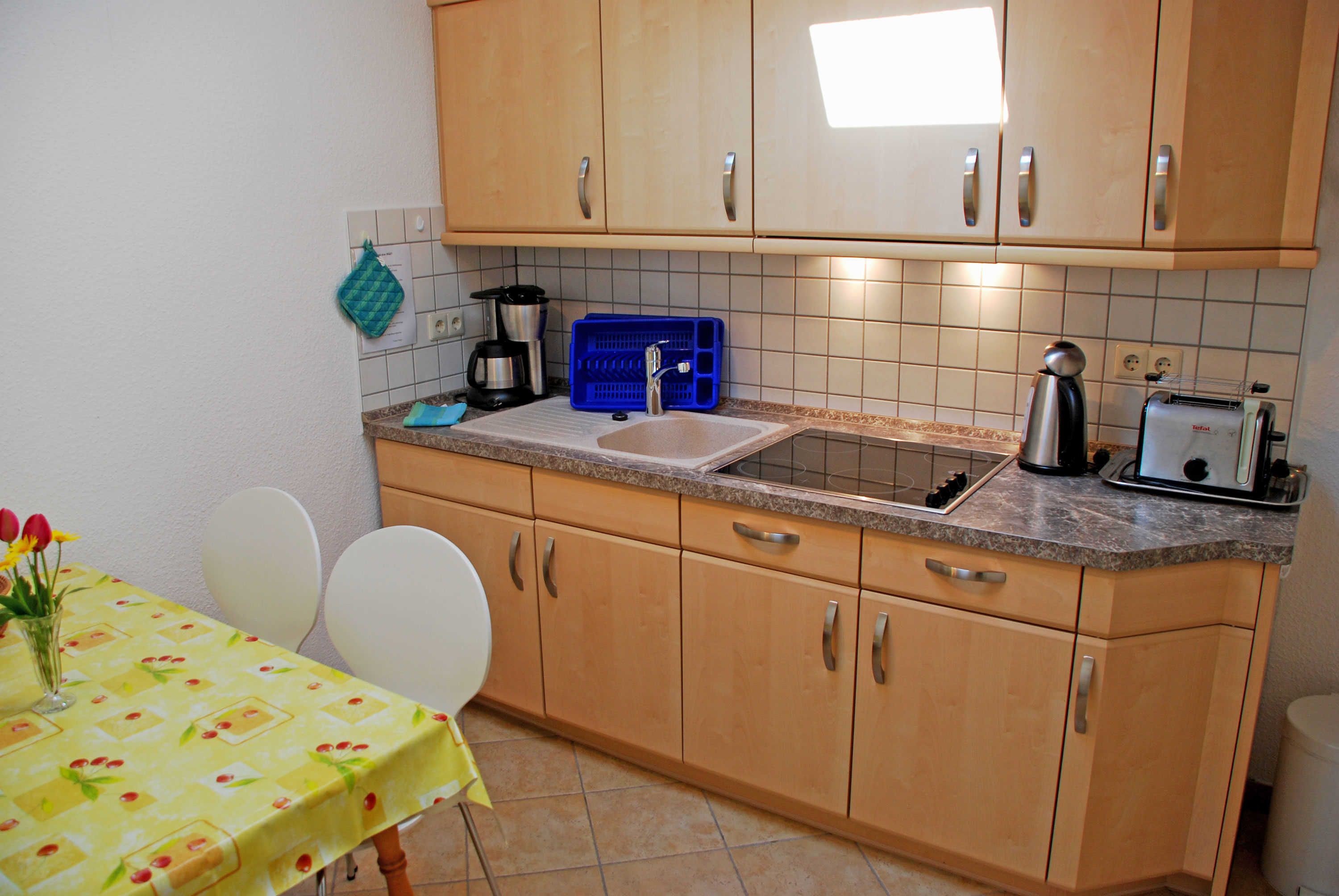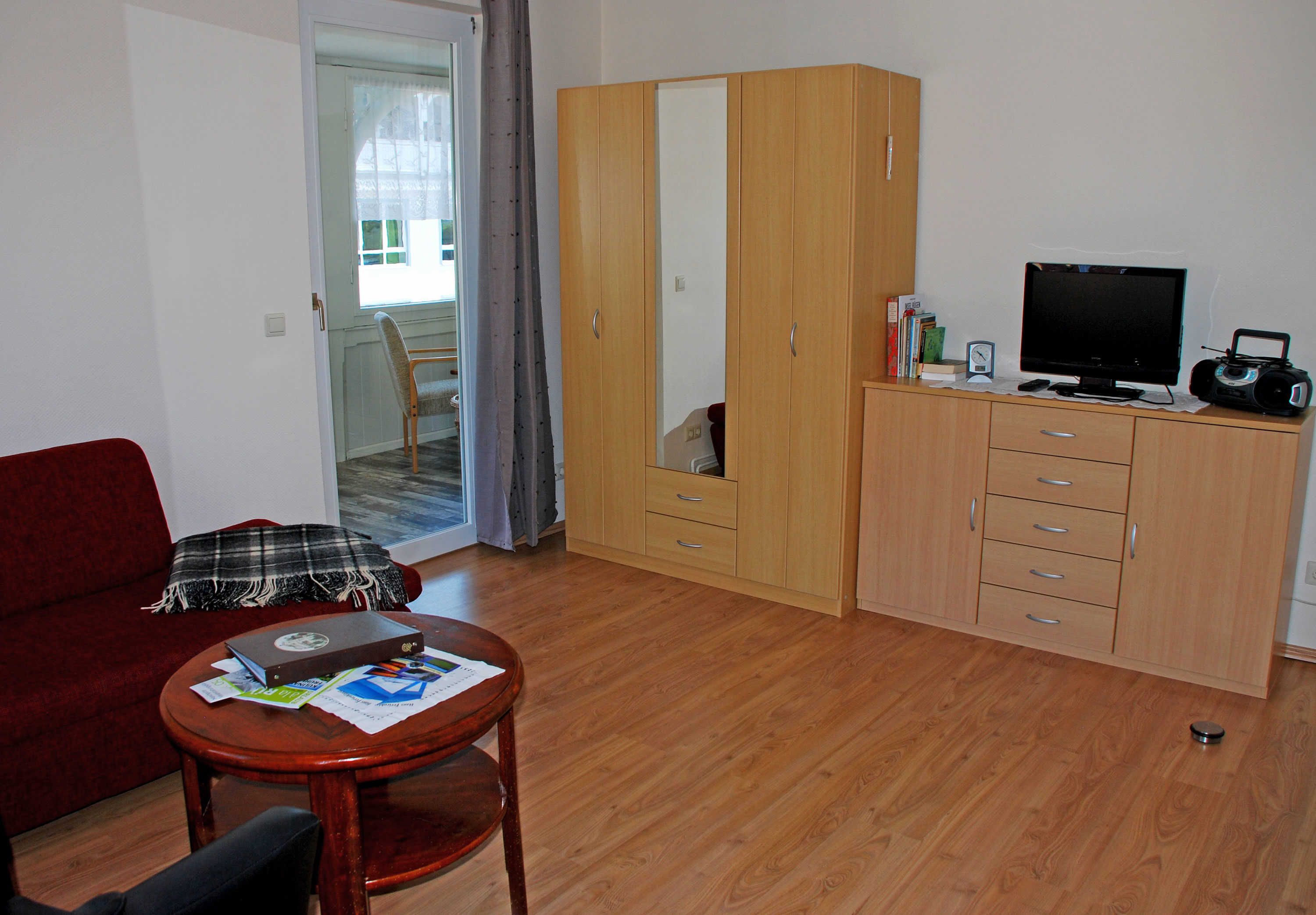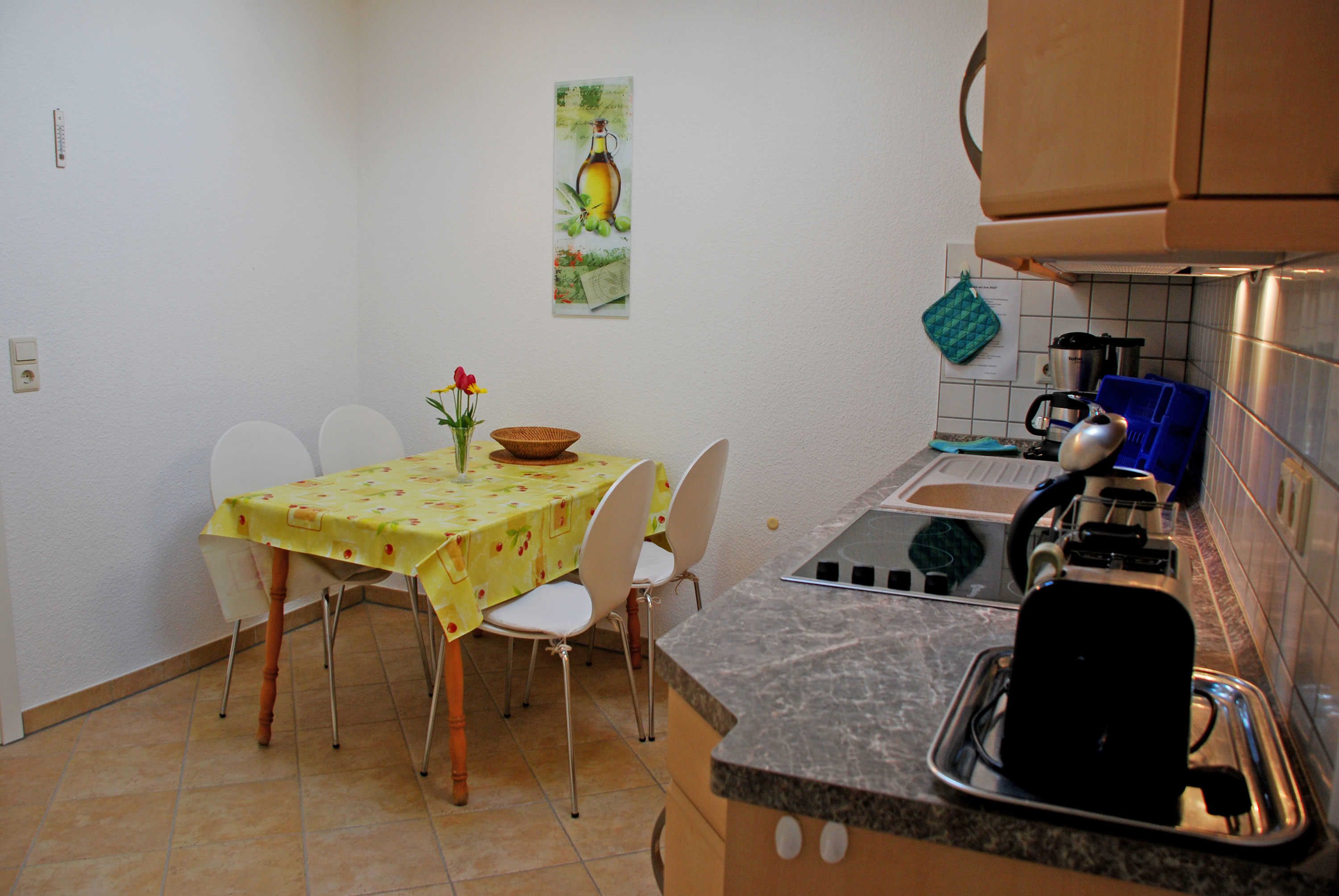 Unsere Ferienwohnung Granitz befindet sich im 2. Obergeschoss, verfügt über einen separaten Eingang, WLAN-Internet und ist ca. 50 qm groß. Sie bietet Platz für maximal 4 Gäste, wurde modern und liebevoll eingerichtet. Im Wohnraum befindet sich eine bequeme Sitzcouch mit Beistelltisch sowie ein Flachbild-TV-Gerät. Eine zweite Couch kann hier bei Bedarf für 2 Gäste aufgebettet werden. Die separate Küche ist mit einem 4-Zonen-Ceranfeld-Herd, Abzugshaube, Wasserkocher, Kaffeemaschine, Toaster und Kühlschrank komplett ausgestattet. Hier steht auch ein Esstisch mit Sitzgelegenheiten.