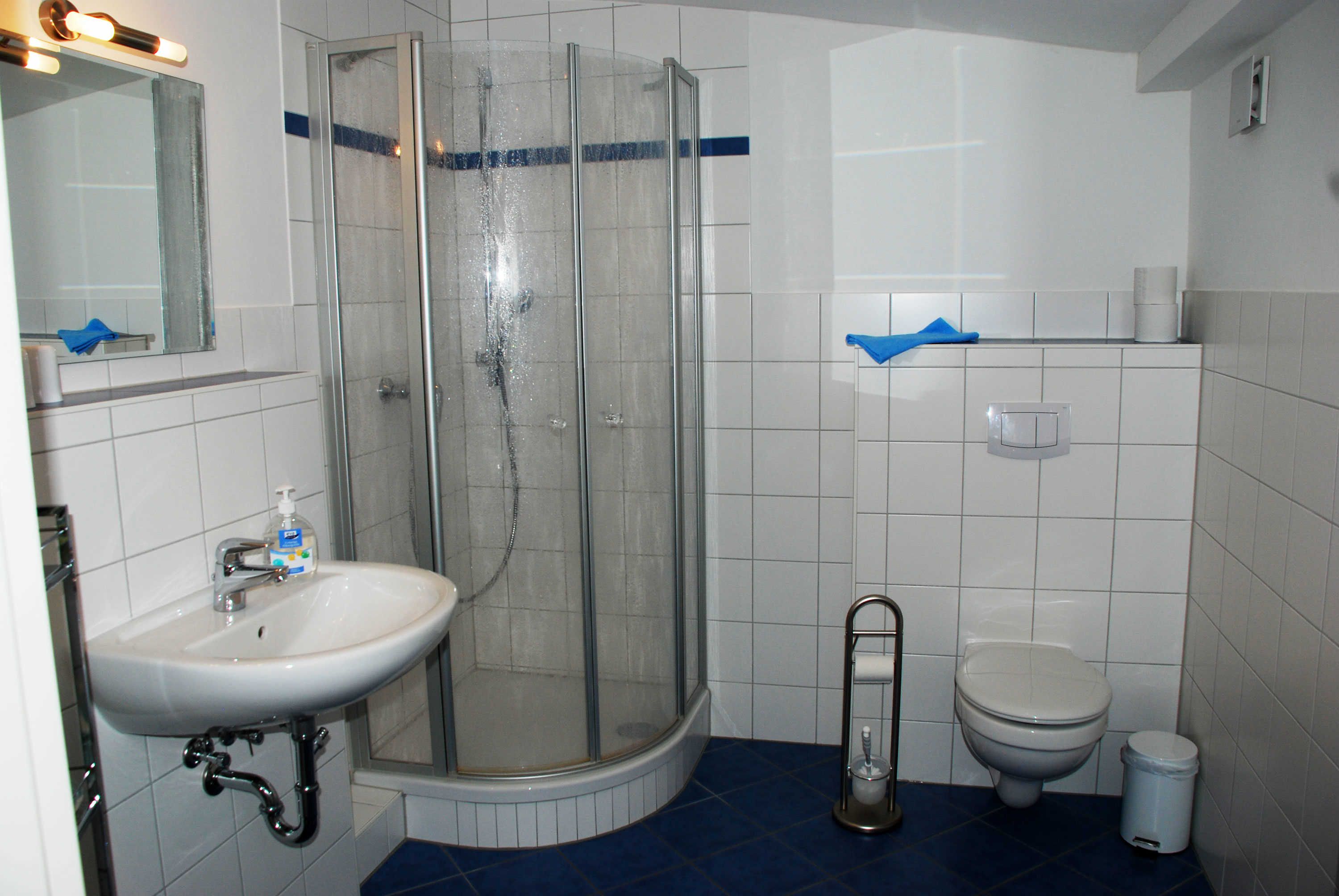 Das moderne Bad ist mit Dusche, WC, Haartrockner sowie Waschtisch ausgestattet.