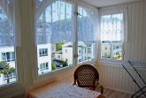 Zu dieser Wohneinheit gehört auch eine verglaste Veranda (Loggia) mit Sitzgelegenheiten und schönem Ausblick. Hier können Sie den Abend bei einem Glas Wein dezent ausklingen lassen.