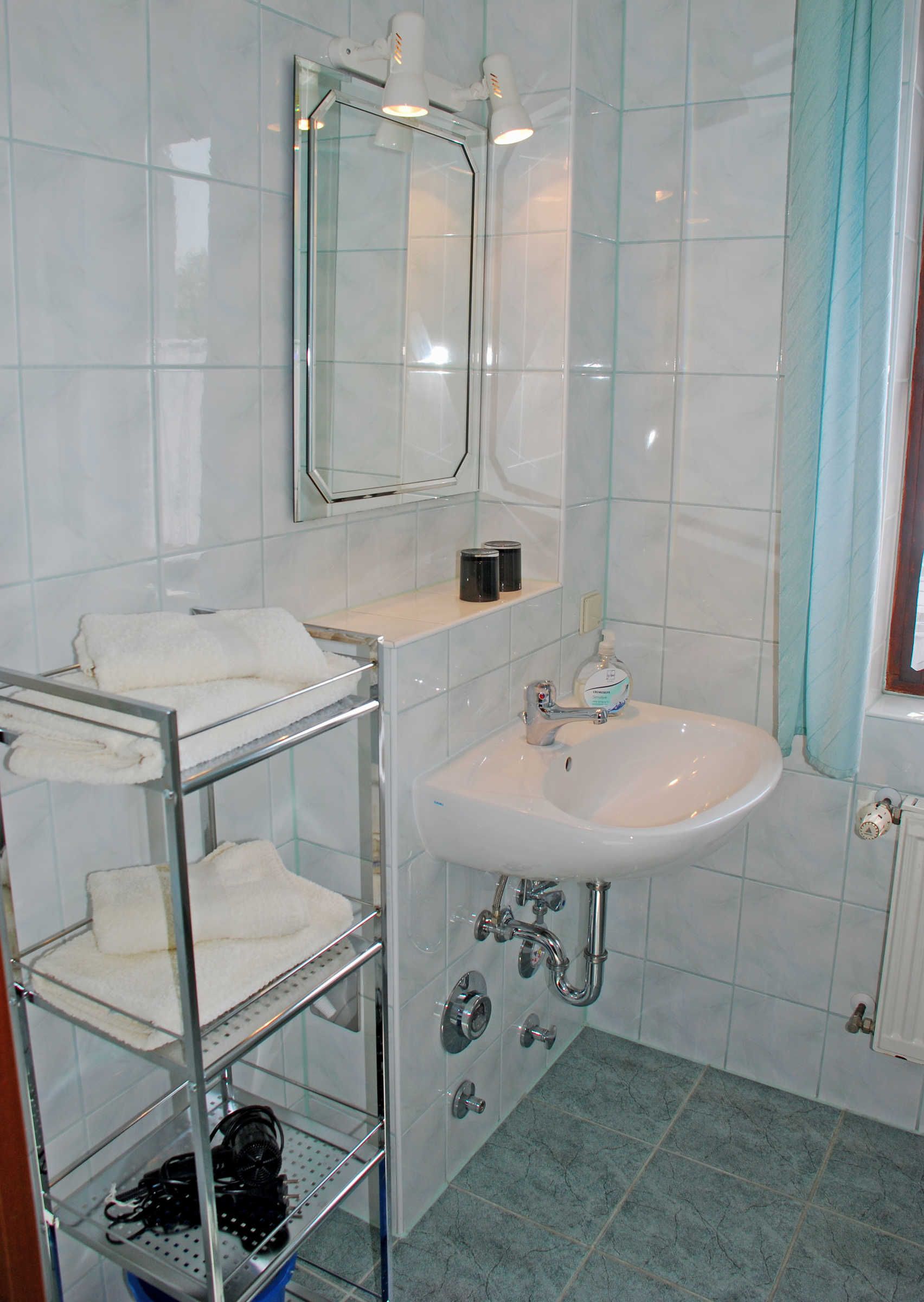 Das moderne Bad ist mit Dusche, Haartrockner, WC und Waschtisch ausgestattet.