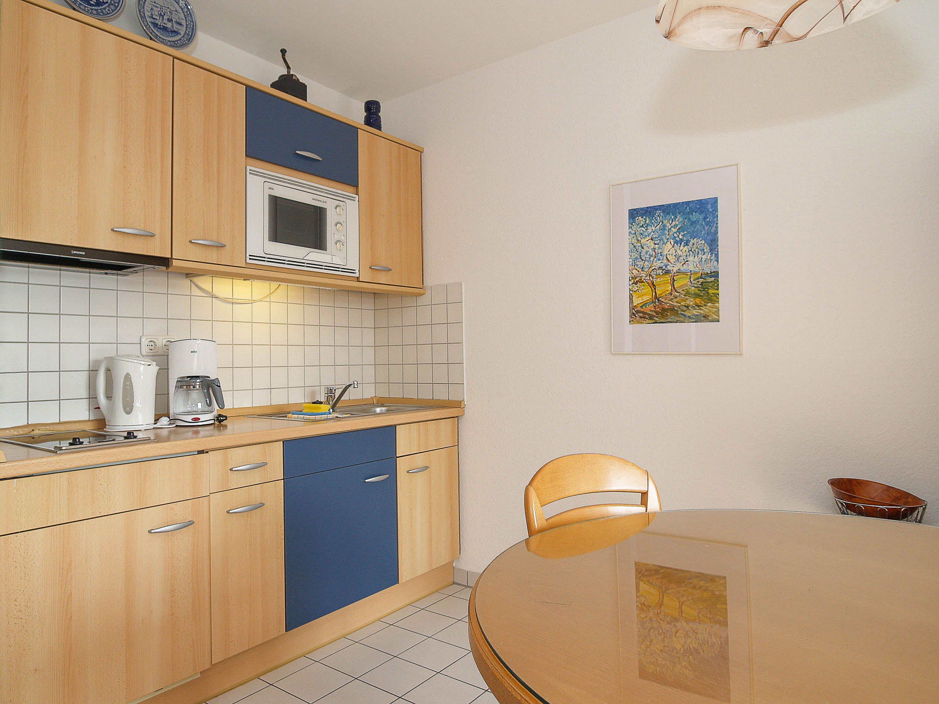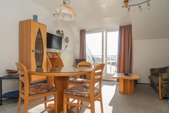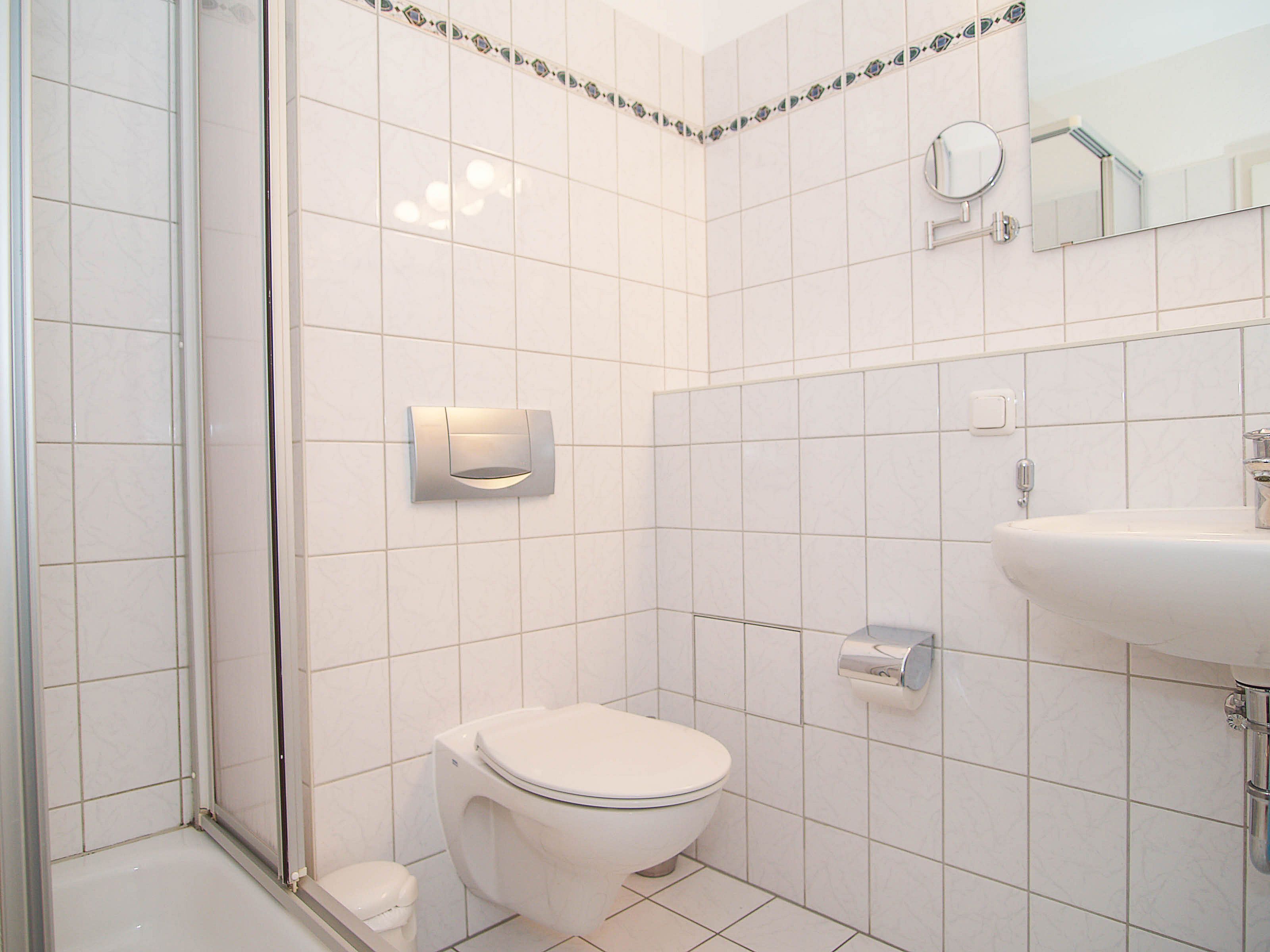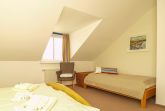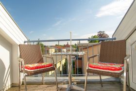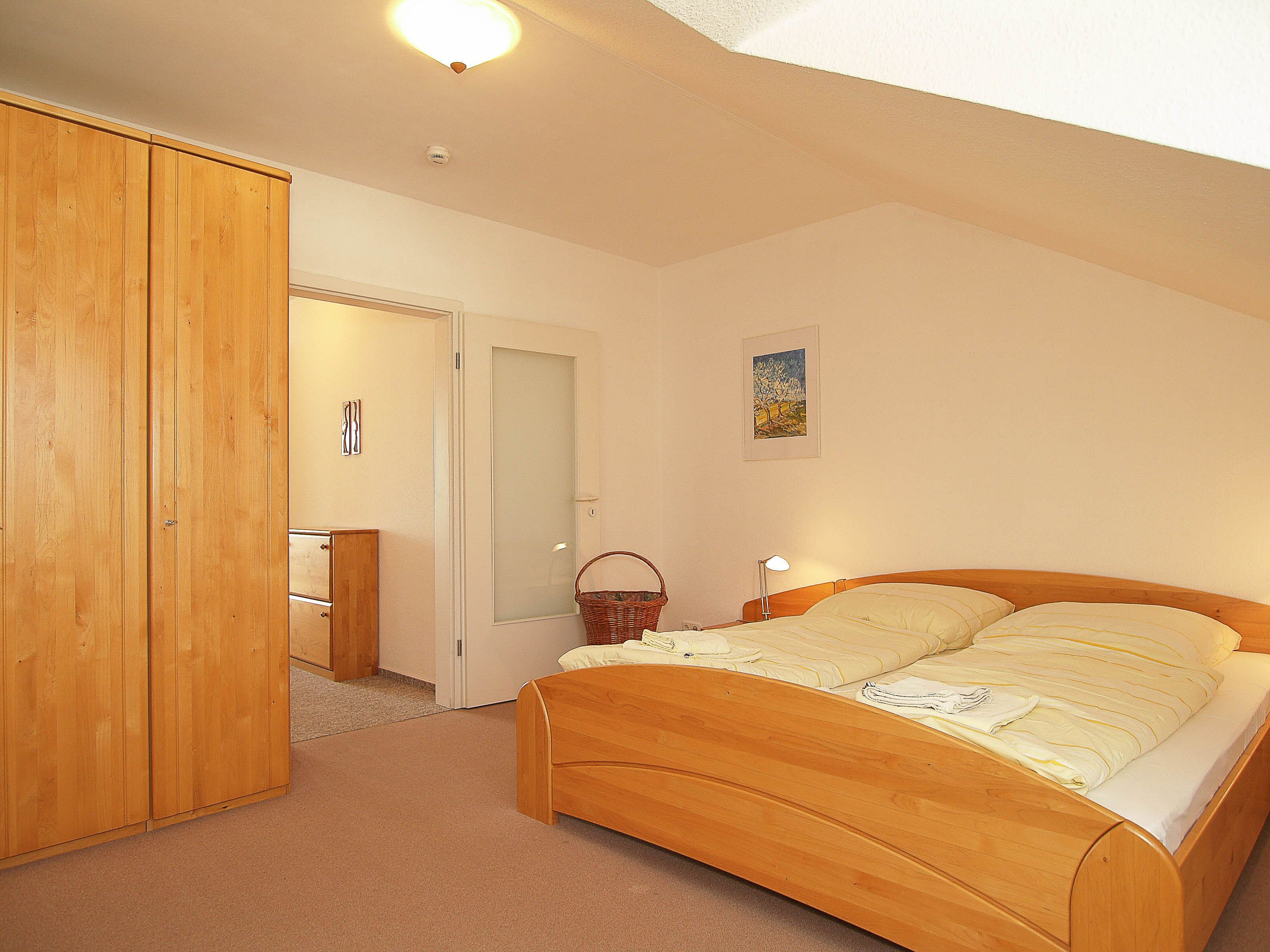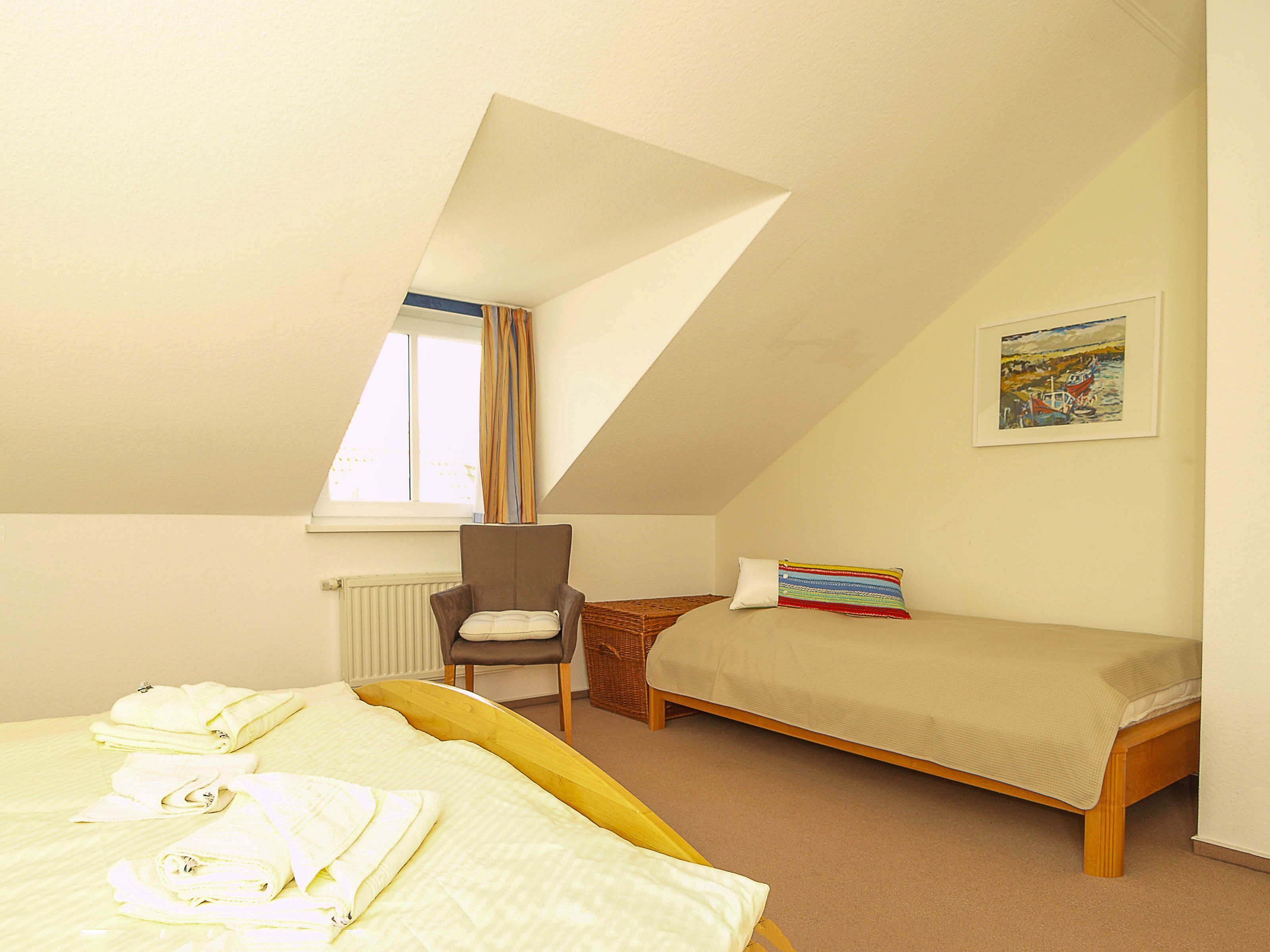 Im Schlafzimmer lädt Sie ein komfortables Doppelbett (2 x 90 x 200 cm) sowie ein Einzelbett (ebenfalls 90cm x 200cm) zur Nachtruhe ein. Der geräumige Kleiderschrank mit bietet genügend Platz für Ihre Urlaubsgarderobe. Vom Schlafzimmer aus betreten Sie den kleinen Balkon in Richtung Süden. Hier können Sie Sonne tanken, relaxen und den Abend nach einem schönen Tag am Meer ausklingen lassen. Das geflieste Bad mit Dusche und WC vervollständigen das Gesamtbild dieser Wohnung.
