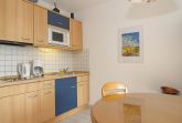 Der liebevoll eingerichtete Wohnbereich ist mit einer gemütlichen Couchgarnitur, 41-Zoll-Flatscreen-TV und einem Radio eingerichtet. Der angrenzende Essbereich bietet Ihnen reichlich Platz für gemeinsame Mahlzeiten. Die offene Küchenzeile hält für Sie alle wichtigen Küchengeräte und -utensilien bereit, die Sie für Ihr perfektes Dinner benötigen: Ein 2-Zonen-Cerankochfeld mit Dunstabzug, eine Mikrowelle sowie ein Kühlschrank befinden sich in der Küche. Eine Kaffeemaschine, ein Wasserkocher und ein Toaster sowie genügend Koch- und Essgeschirr vervollständigen die Kücheneinrichtung.