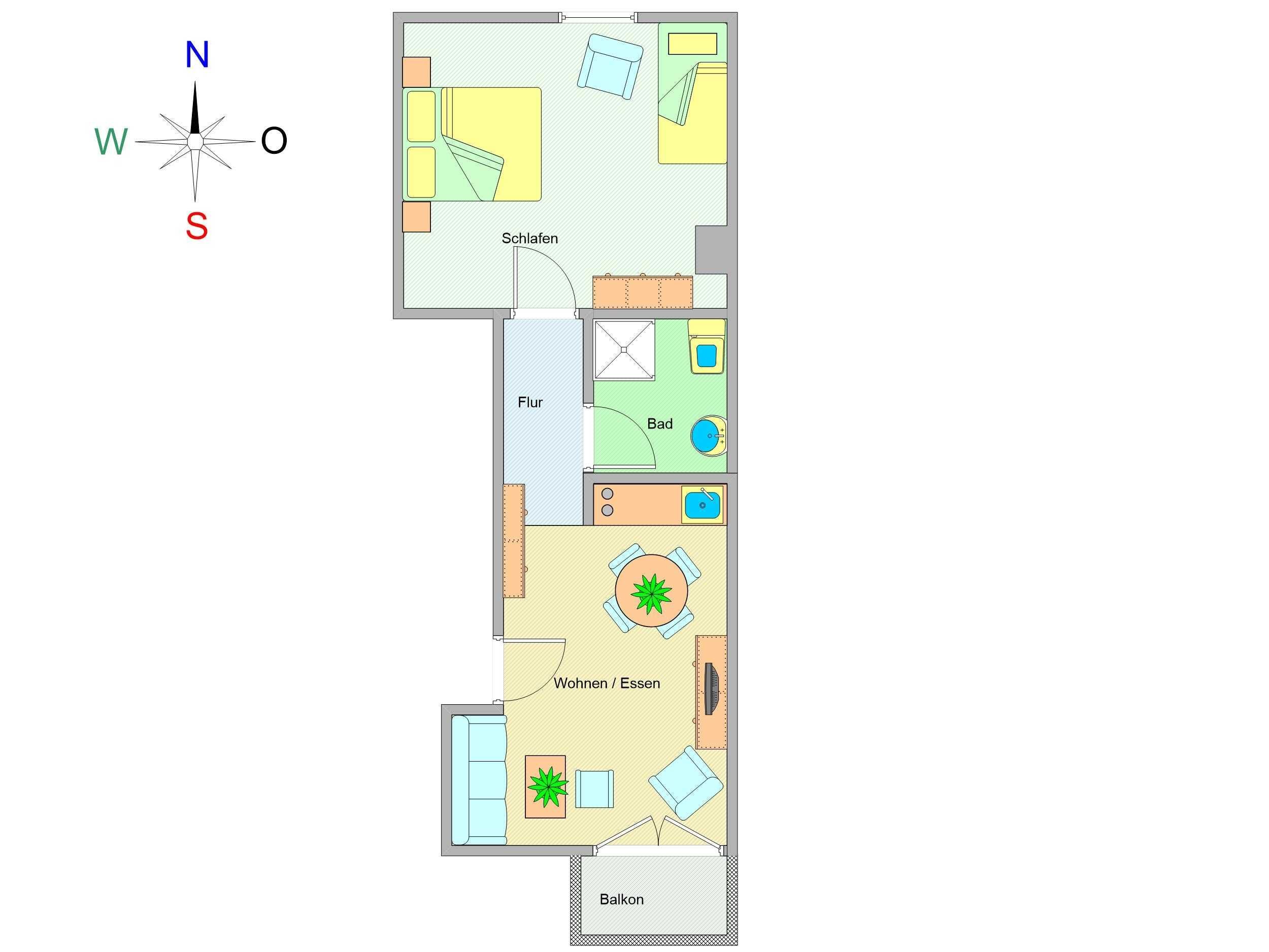 Herzlich willkommen in der Wohnung 26 in der Appartementanlage „Am Stadtwald! Die liebevoll eingerichtete 2-Raum-Ferienwohnung befindet sich im zweiten Obergeschoss des Anlage. Auf 50 qm Wohnfläche können hier bis zu 3 Personen erholsame Urlaubstage genießen. Es empfangen Sie ein heller offener Wohnbereich mit einer Küchenzeile, ein Schlafzimmer, ein Duschbad sowie ein Balkon mit Süd-Ausrichtung.