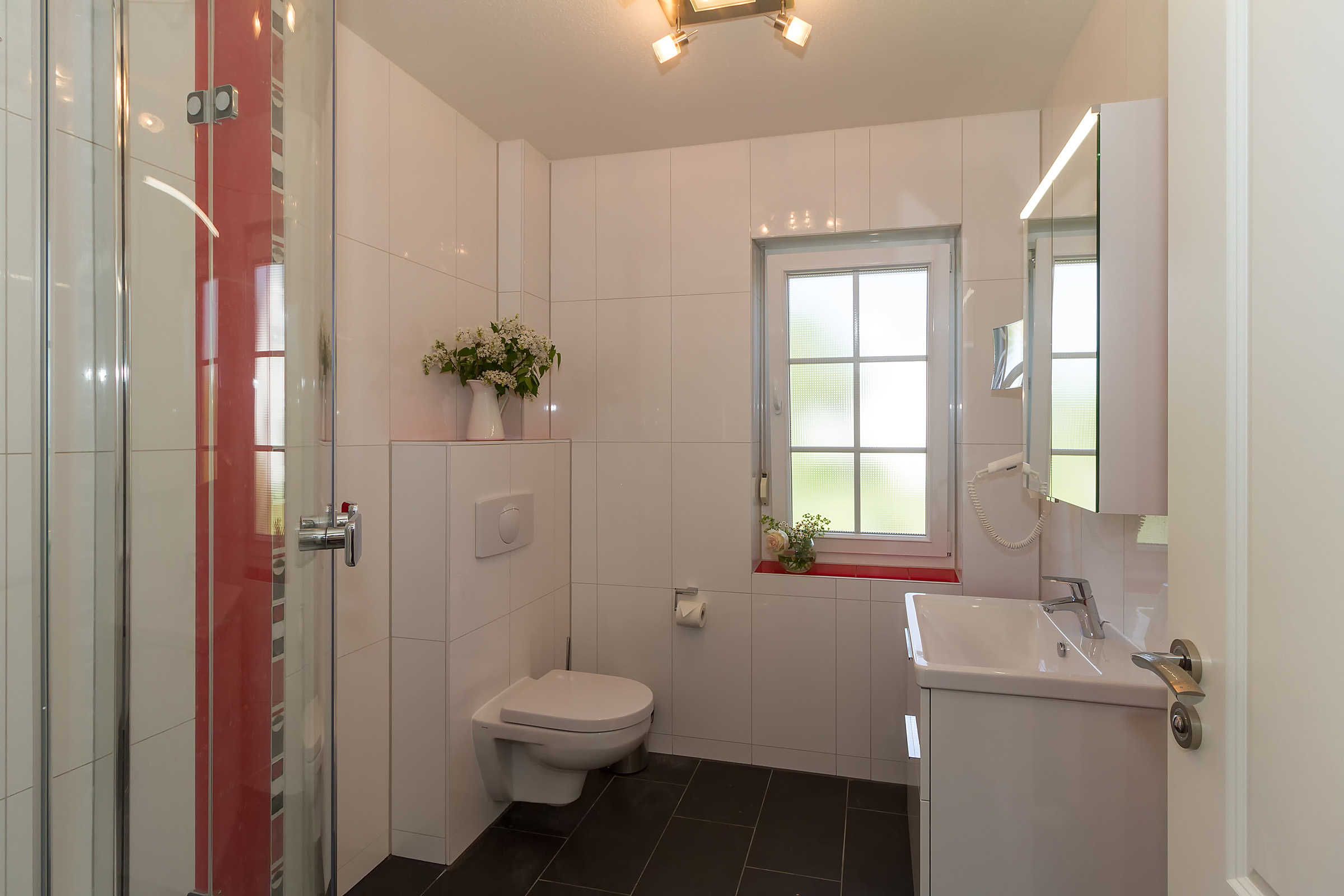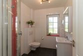 Ein separates Bad mit Dusche im EG erspart den Gästen „Engpässe“, auch wenn das Haus mit sechs Besuchern voll belegt sein sollte.