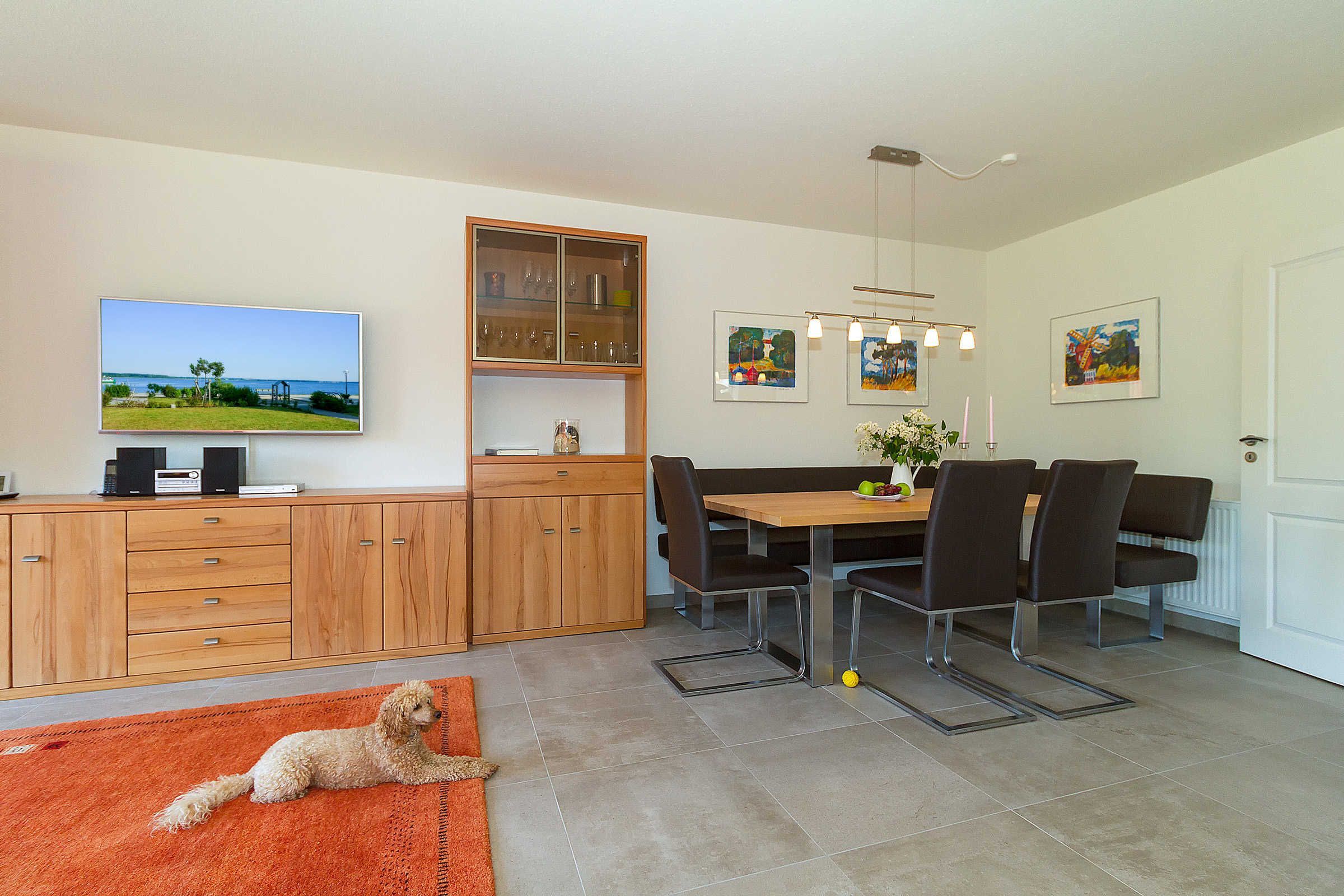Das wohnliche Haus mit roter Klinkerfassade und freundlichen weißen Sprossenfenstern, im Jahr 2008 erbaut und 2017 in weiten Teilen neu renoviert, verfügt über einen eigenen Garten mit großer Terrasse und über eine großzügige Wohnfläche von 126 qm. Hier können Sie Ihre Seele baumeln lassen, den Alltag vergessen und die vielen Vorzüge des Hauses genießen. Kernstück ist das geräumige, sehr geschmackvoll ausgestaltete Wohn- / Esszimmer mit farbenfrohen Bildern, Kamin, großem Flachbild-TV und einer kleinen Bibliothek mit aktuellen Büchern für jedes Alter und jeden Geschmack.
