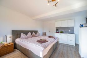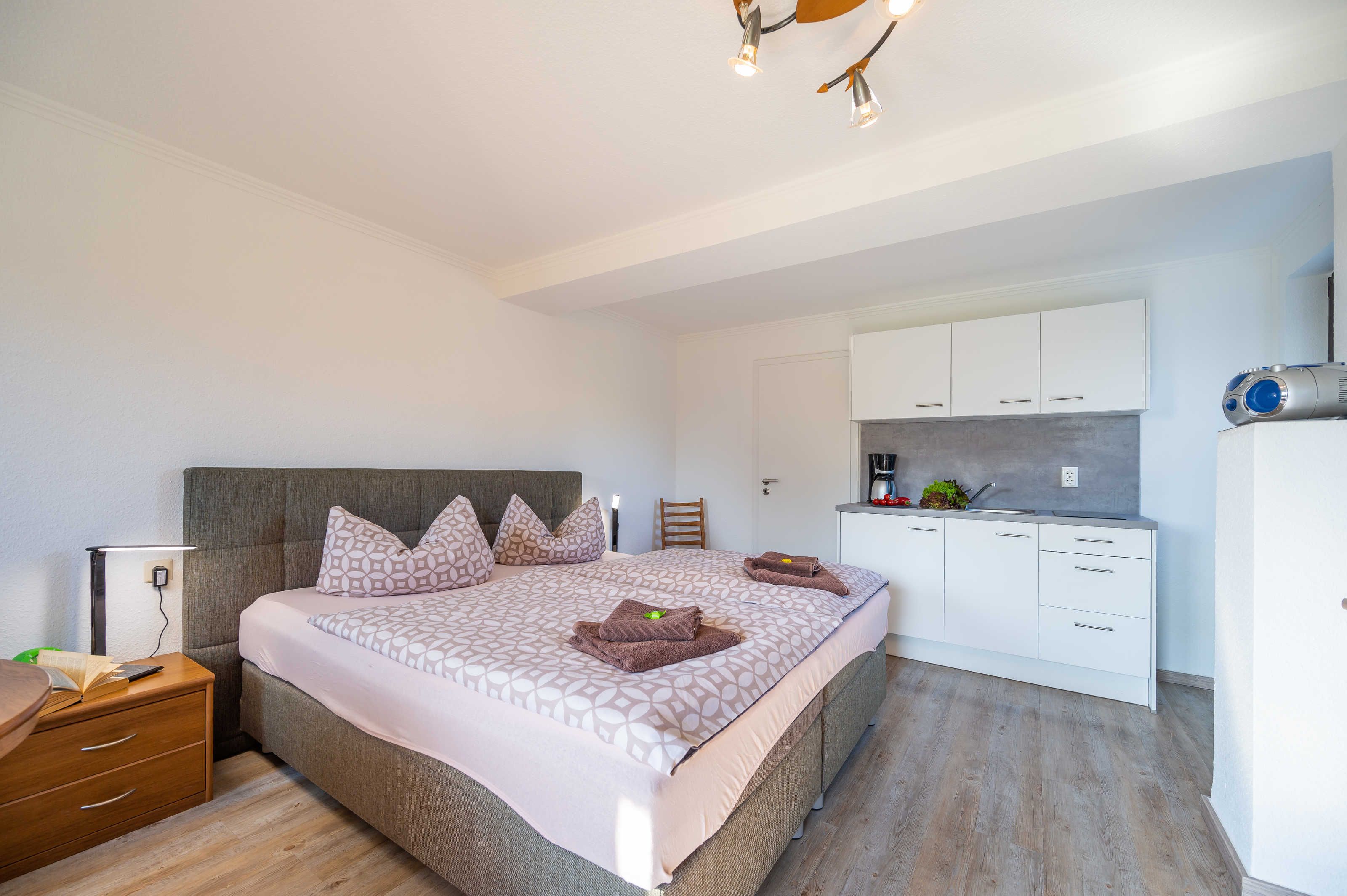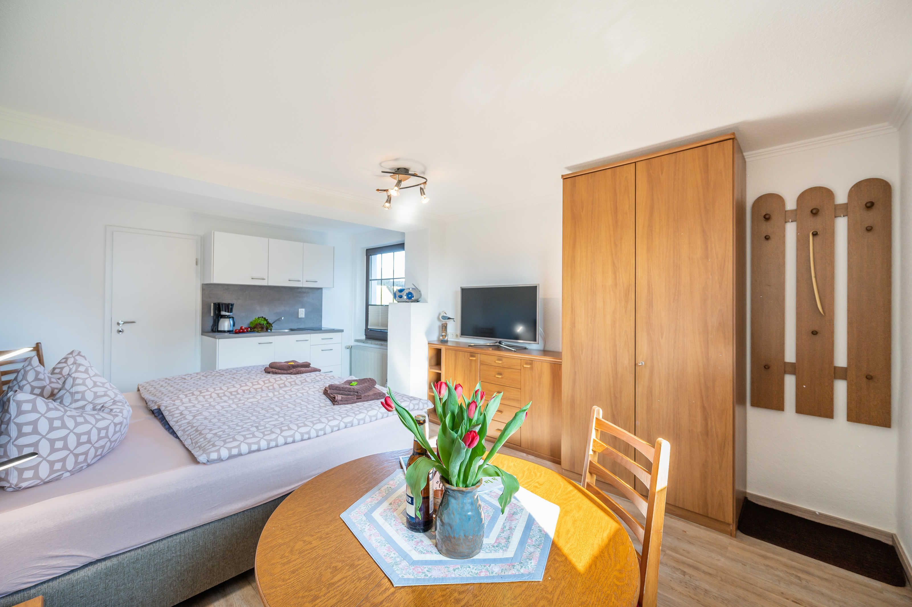 In unserem Appartement steht Ihnen ein kombinierter Wohn- Schlafraum mit einer Pantryküche und ein Duschbad zur Verfügung. Sie haben einen separaten Eingang und eine möblierte Terrasse.