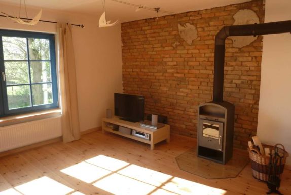 Ländlich gelegene, besonders für Familien geeignete Ferienwohnung mit großem Grundstück und guter Anbindung nach Usedom, Greifswald und zum Peenetal. Unser Ferienhaus- ein ausgebautes, ehemaliges Bauernhaus der Region besteht aus einem Wohnzimmer mit großzügigem Wohnbereich und Kamin, einem separatem Schlafzimmer, einer Küche mit allem zur Selbstversorgung, sowie einem Bad. Im Schlafzimmer befinden sich 2 Schlafplätze. Bei Bedarf kann ein vorhandenes Kinderbett mit hineingestellt werden. 3-4 Personen können auf zwei Schlafsofas im großen unterteilten Wohnzimmer unterkommen. Zur weiteren Ausstattung gehören neben unten stehenden Angaben diverse Spiele (Tischtennis, Federball, Fussball, Brettspiele), eine kleine Bibliothek, sowie eine DVD-Sammlung. Zur Ferienwohnung gehört ein 3000 qm großes Wiesengrundstück mit Fallobstbäumen, Sträuchern und viel Platz zum Relaxen. Kinder haben hier viel Raum, und falls das nicht genug ist, können sie sich auf dem Spielplatz nach Herzenslaune austoben. Tiere sind auch willkommen. Parkmöglichkeiten sind ausreichend vorhanden.