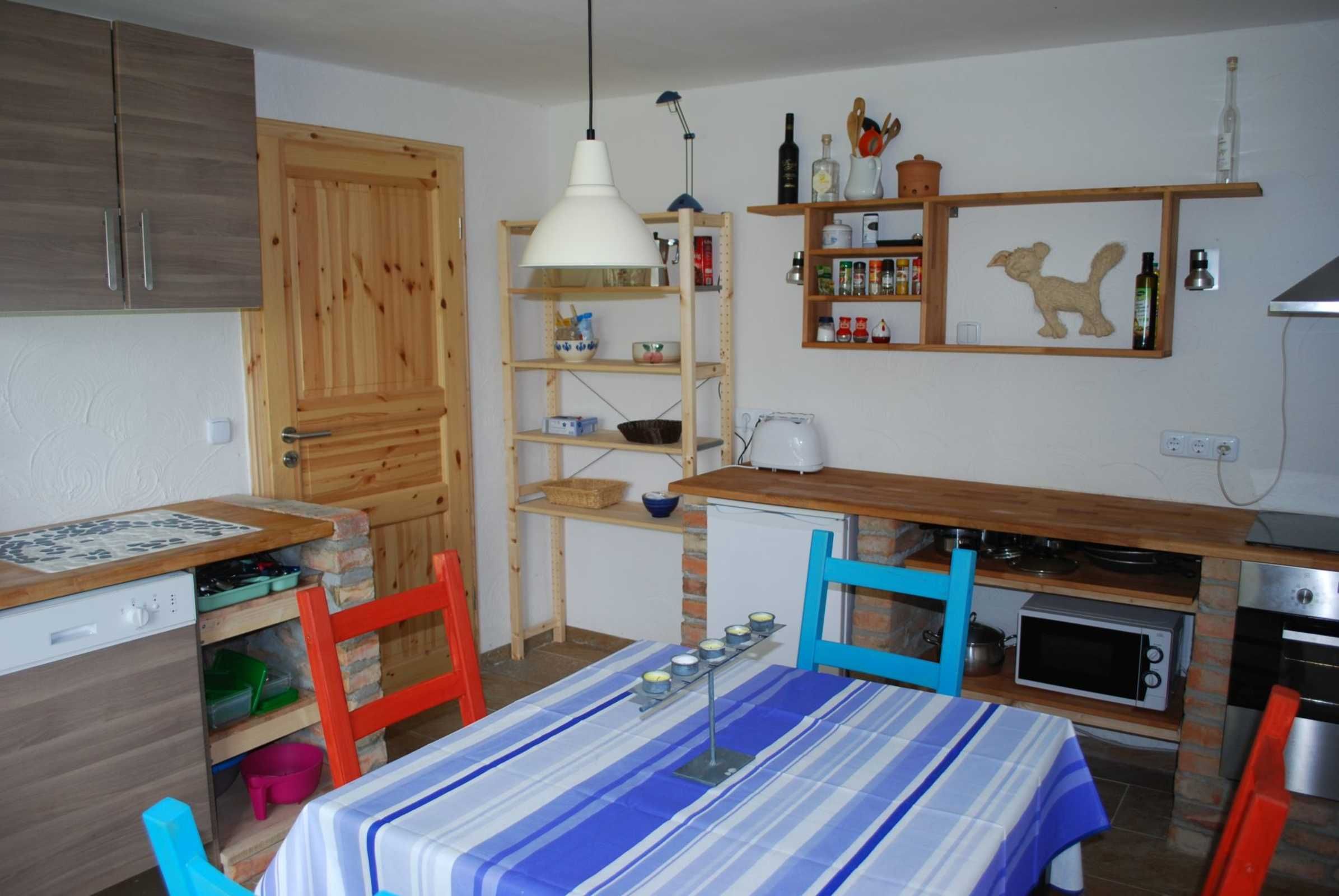 Unser Ferienhaus- ein ausgebautes, ehemaliges Bauernhaus der Region besteht aus einem Wohnzimmer mit großzügigem Wohnbereich und Kamin, einem separatem Schlafzimmer, einer Küche mit allem zur Selbstversorgung, sowie einem Bad. Im Schlafzimmer befinden sich 2 Schlafplätze. Bei Bedarf kann ein vorhandenes Kinderbett mit hineingestellt werden. 3-4 Personen können auf zwei Schlafsofas im großen unterteilten Wohnzimmer unterkommen. Zur weiteren Ausstattung gehören neben unten stehenden Angaben diverse Spiele (Tischtennis, Federball, Fussball, Brettspiele), eine kleine Bibliothek, sowie eine DVD-Sammlung.