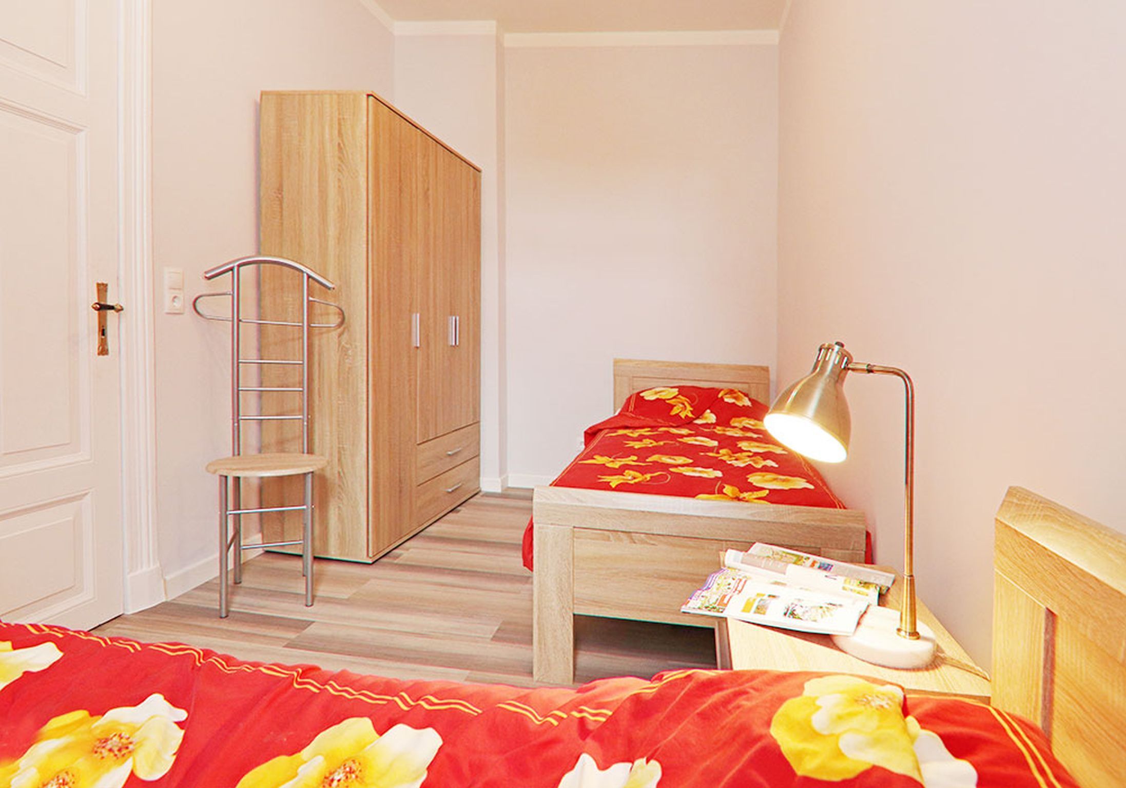 Die Ferienwohnung 1 Ostwind ist eine komfortable ca. 50 m² große Nichtraucherwohnung im Erdgeschoß des Hauses Seestern. Sie wurde schwellenlos gebaut und ist besonders gut auch für ältere Gäste geeignet und für eine Belegung mit max. 2 Erwachsene und 1 Kleinkind bis 3 Jahre im Kinderreisebett vorgesehen. Diese Wohnung hat zwei Eingänge, einmal vom Haupteingang des Hauses Seestern oder von der Hofseite aus. Die Wohnküche verfügt über eine moderne, helle Einbauküche mit Geschirrspüler, Ceranherd mit Backofen, Kühlschrank mit kleinem Gefrierfach, Mikrowelle, Kaffeemaschine, Wasserkocher, Toaster ebenso sind diverse Küchenutensilien vorhanden. Ein runder Tisch mit modernen Stühlen und Radio bieten Ihnen Platz zum Essen und auch zum Verweilen. Daran schließt sich eine helle Veranda an, die zu einem Wohlfühlfernsehraum mit Couch, Lesesessel und Lesezimmer eingerichtet wurde. Das moderne Bad mit Fenster, bodengleicher Dusche, Waschplatz, Fön, WC, Handtuchheizkörper wurde ansprechend gefliest. Im Schlafzimmer stehen 2 bequeme Einzelbetten (0,90 m x 2,00 m) mit direkten Lichtquellen und ein Kleiderschrank zur Verfügung. Im Flur finden Sie ebenfalls ausreichend Stauraum und Abstellmöglichkeiten für Garderobe, Schuhe und Taschen. Alle Wohnräume wurden mit modernem, strapazierfähigem Vinylboden in Holzoptik versehen. Auch auf Internetanschluss (WLAN) müssen Sie im Urlaub nicht verzichten. Dieser ist inklusive für Sie. Insektenschutzgitter und Verdunklungsmöglichkeiten sind vorhanden. Zur Wohnung gehört ein Stellplatz und ein eigener Bereich im Garten mit Gartenmöbeln sowie Gemeinschaftsgrill. 2 Haustiere sind gegen eine Gebühr willkommen. Eine Waschmaschine und ein Trockner stehen allen Gäste gegen Gebühr zur Verfügung. Diese Räumlichkeiten befinden sich auf der Hofseite. Für unsere kleinen Gäste stehen je 1 Kinderreisebett (ohne Zusatzmatratze / ohne Bettinlett) und 1 Hochstuhl pro Wohnung inklusive zur Verfügung. Ihr PKW-Stellplatz (Nr. 1) befindet sich auf dem Grundstück. Die Erstausstattung eines Wäschepaketes (komplette Bettwäsche, 1 Duschhandtuch, 2 kleine Handtücher) können Sie bis 14 Tage vor Anreise gegen einen Aufpreis dazu buchen oder durch eigene ergänzen. Ab 2 gebuchten Paketen erhalten Sie einmalig 1 Geschirrhandtuch und 1 Duschvorleger hinzu.