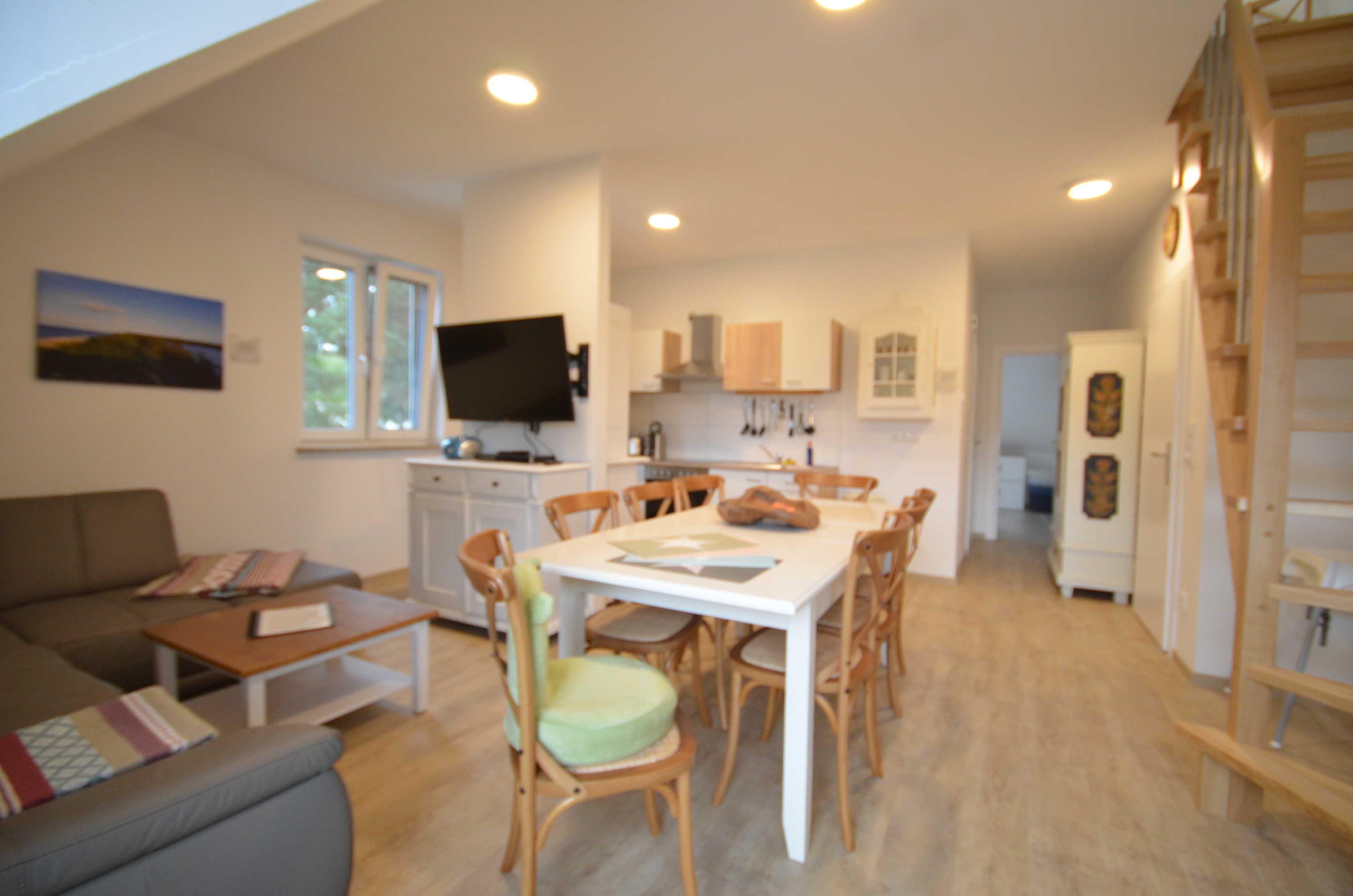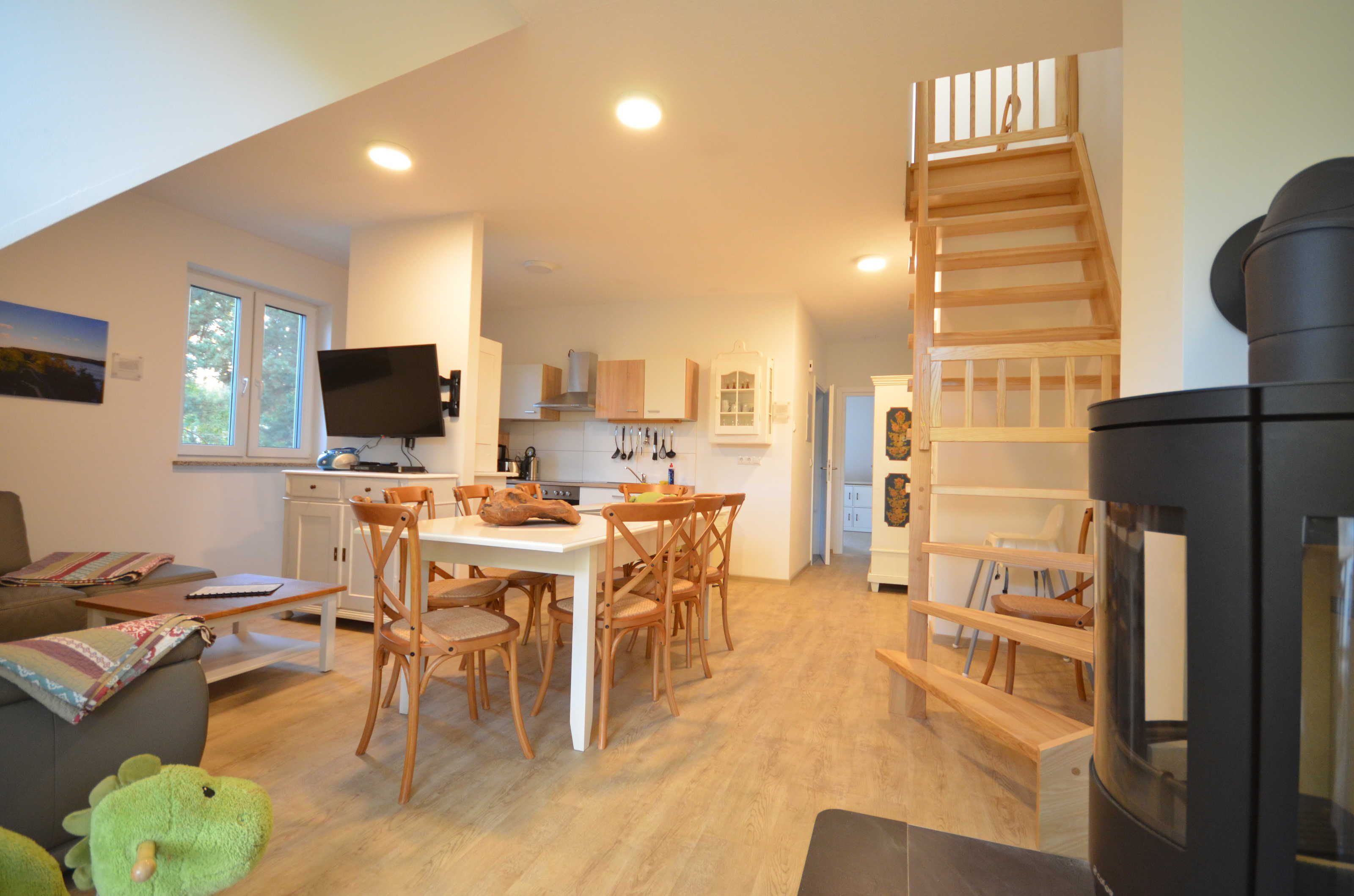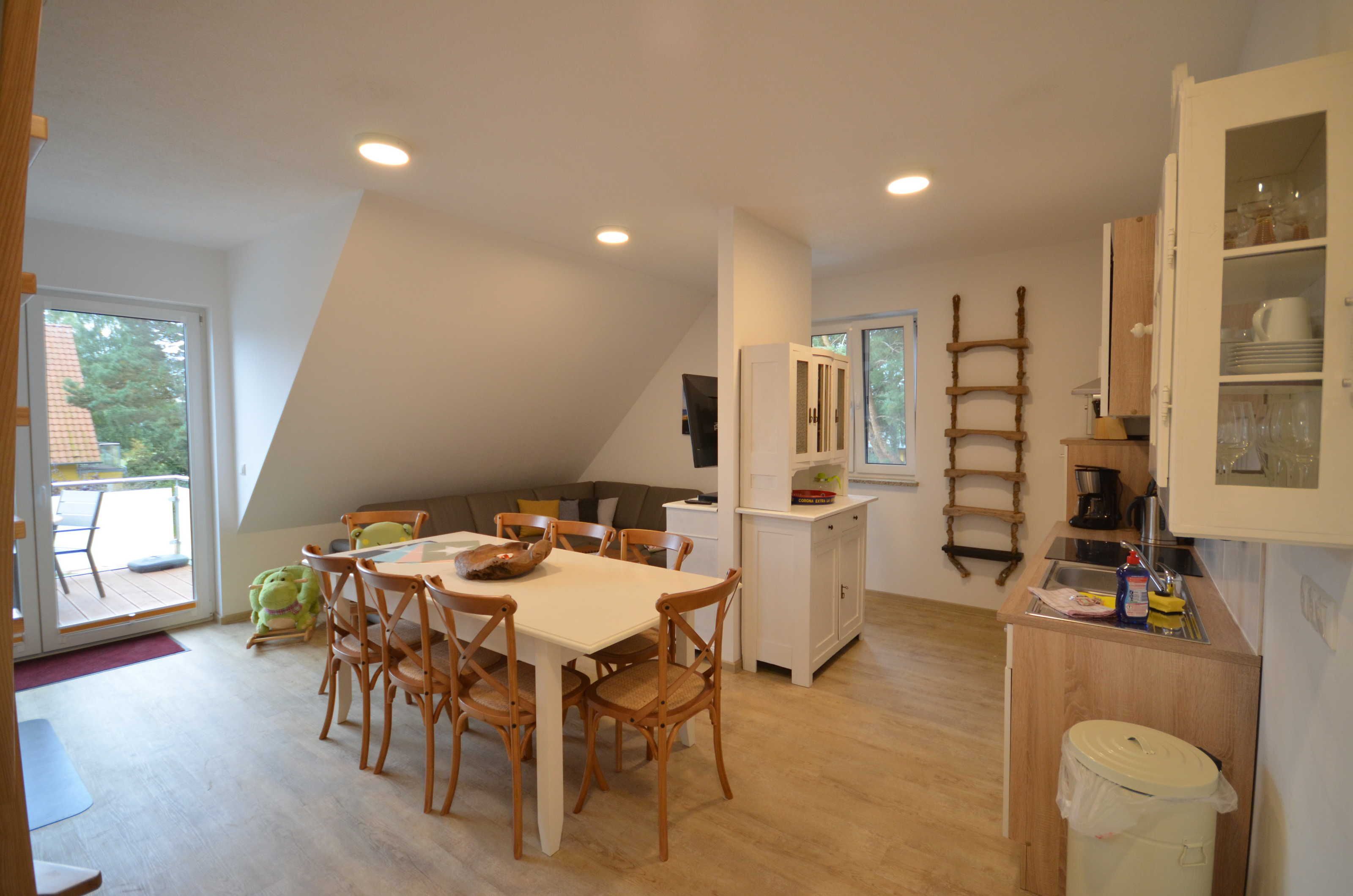 • Küche inkl. Spülmaschine, Herd mit Ceranfeld, Abzugshaube, Kühlschrank, Wasserkocher, Kaffeemaschine, Toaster, Esstischgarnitur mit Stühlen uvm.