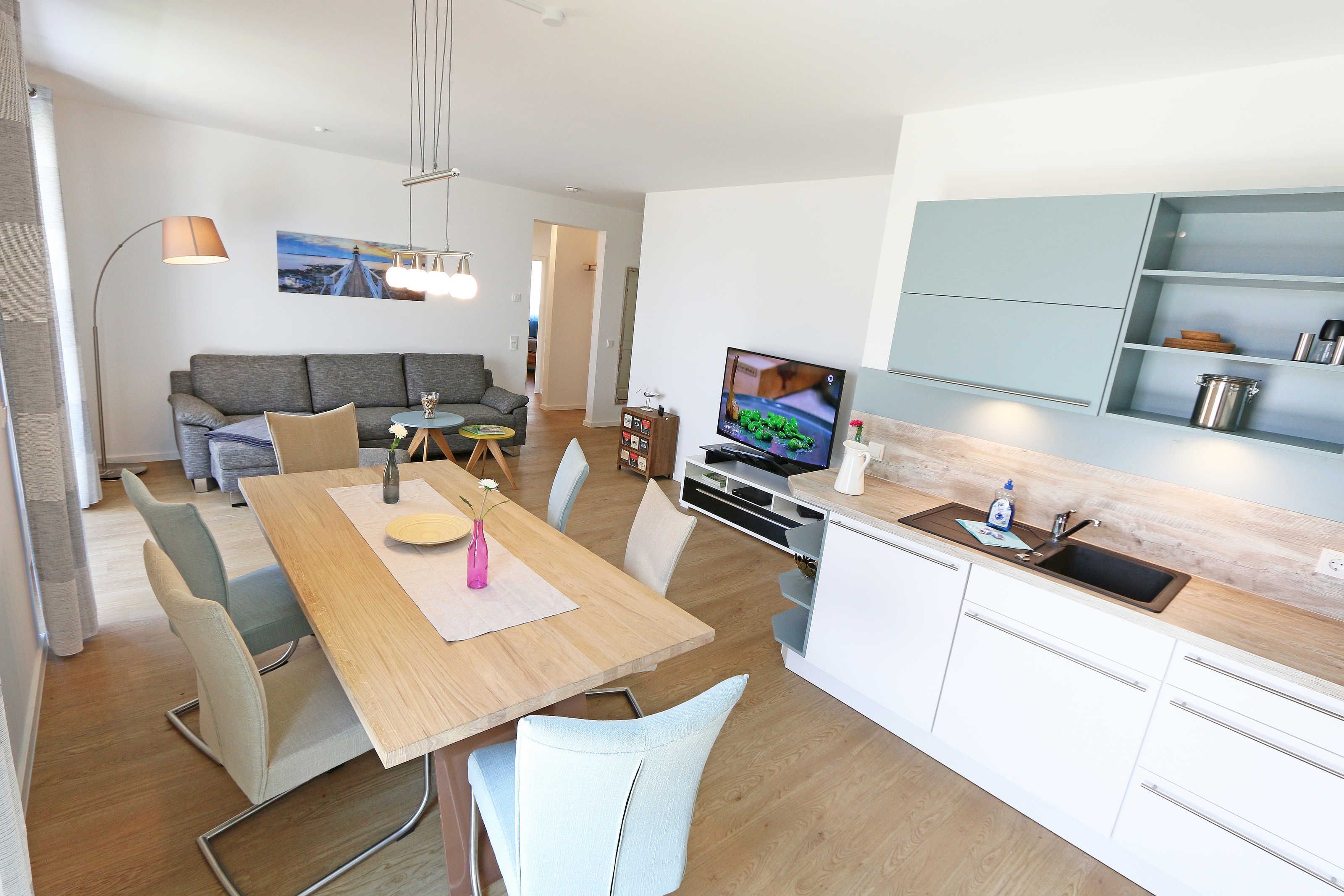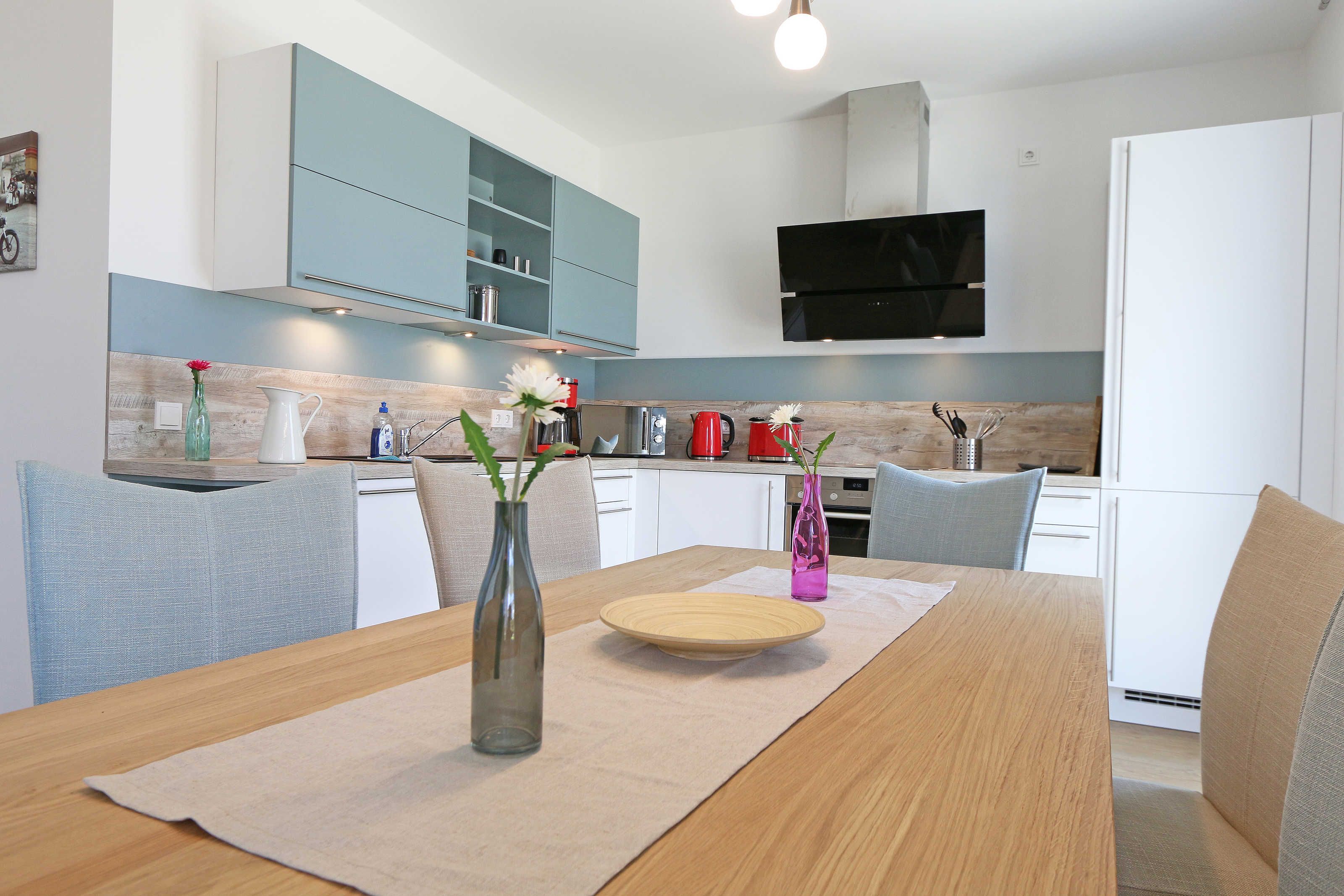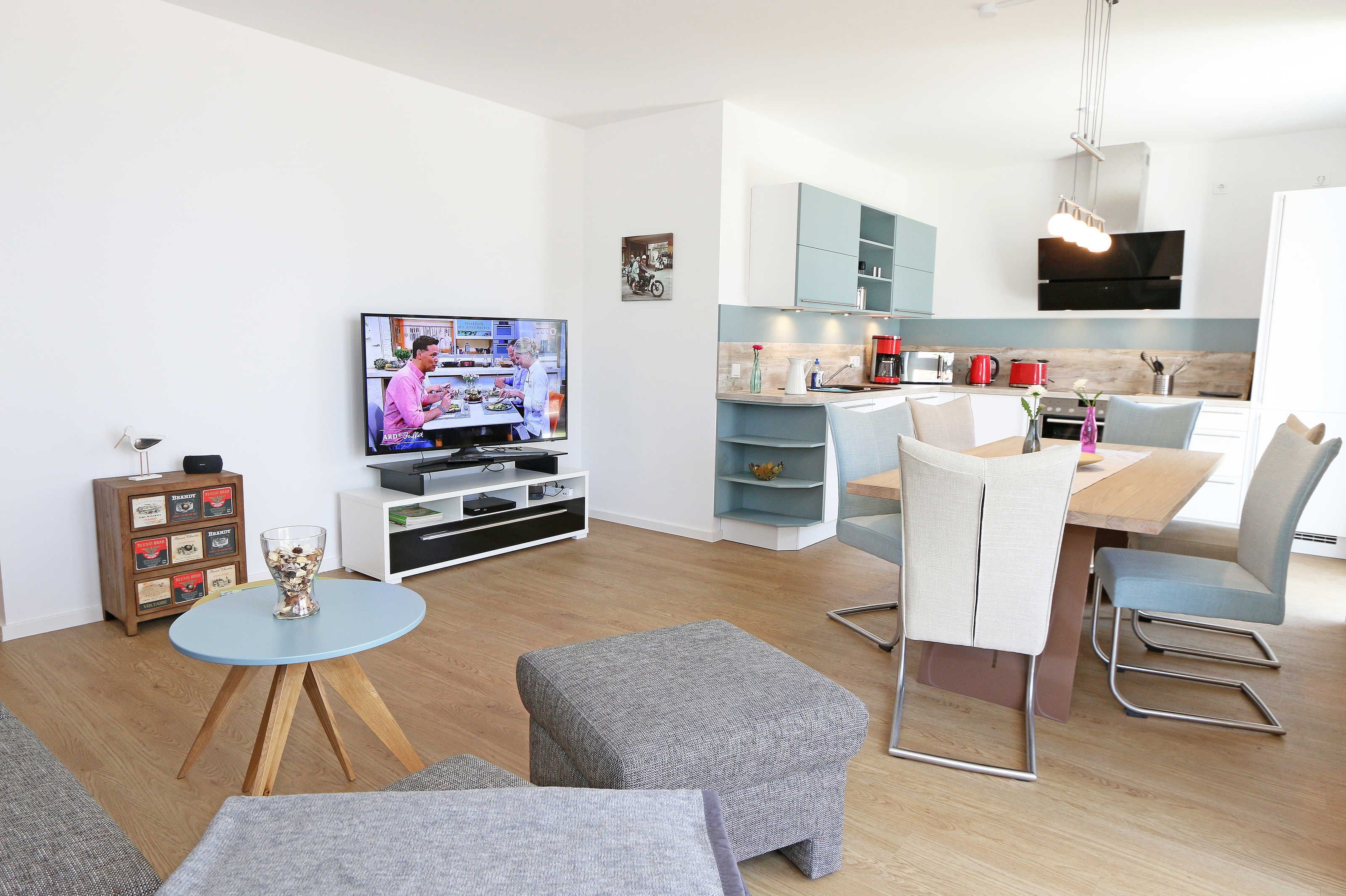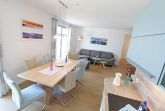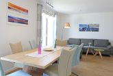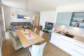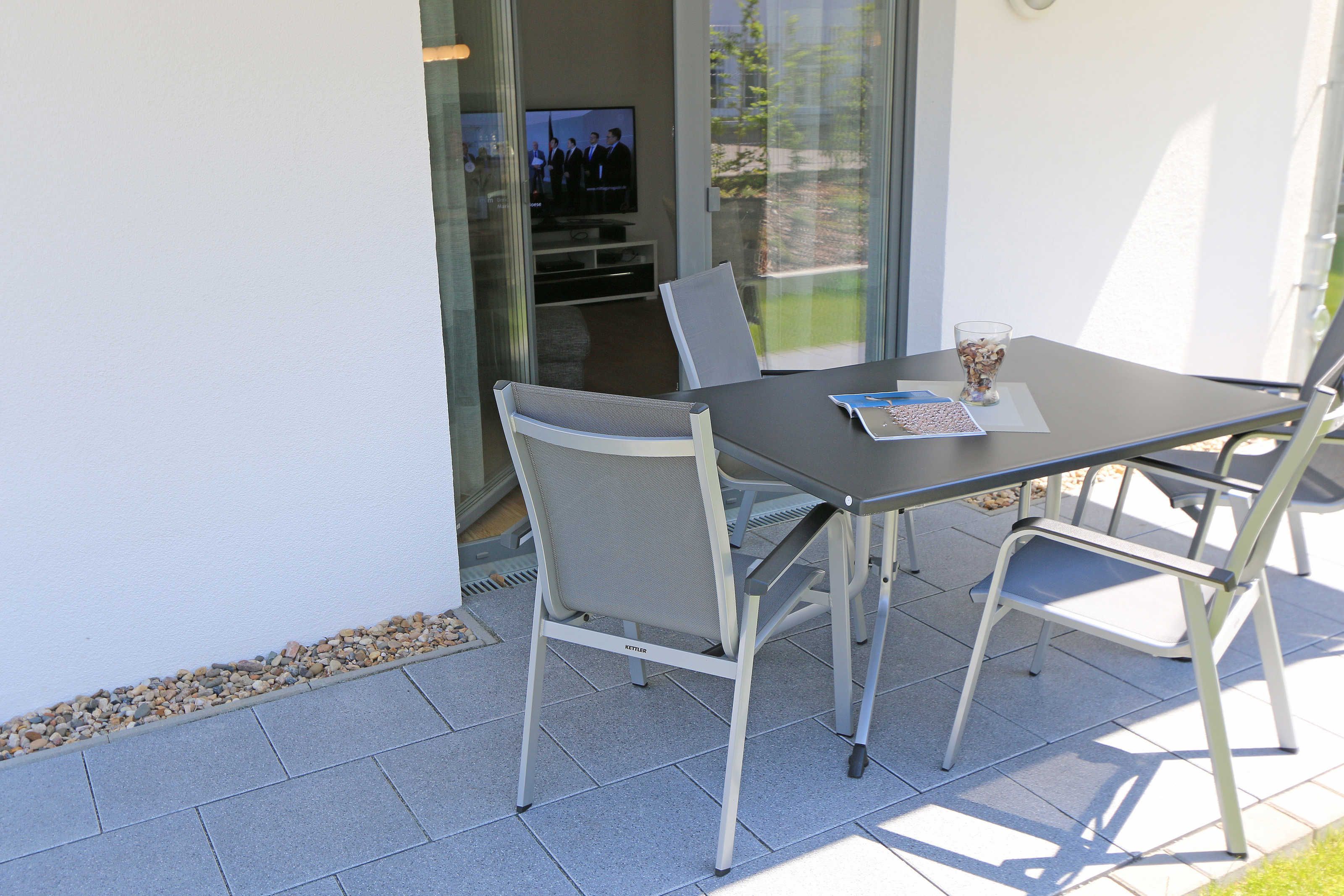Die Wohnung Nr. 3 in der Villa Anni ist eine komfortable, ca. 83 m² große und stilvoll eingerichtete Nichtraucherferienwohnung im Erdgeschoss. Sie bietet mit ihren 3 Schlafzimmern ausreichend Platz für 5 Erwachsene + 1 Kleinkind bis 3 Jahre im Kinderreisebett. Zusätzlich kann auf die Couch im Wohnbereich zur Schlafcouch erweitert werden. Der kombinierte Wohn-/Koch- und Essbereich mit der modernen und integrierten Küchenzeile lässt mit Ceranfeld, Backofen, Geschirrspüler, Mikrowelle, Kühlschrank mit Gefrierfach, Kaffeemaschine, Senseo Padmaschine, Wasserkocher, Toaster und diversen Küchenutensilien keine Wünsche offen. Ein großzügiger Essbereich fügt sich der Küchenzeile an. Der offene Wohnbereich verfügt über eine gemütliche Sitzecke mit Couchtisch, eine Leselampe, ein Smart-TV, DAB-Radio, Heimkino mit LG 4K Laser Beamer und 100 Zoll Bilddiagonale, Quadral DTS 5.1 Soundsystem, einen Blu-Ray-Player sowie eine Hifi-Anlage mit Bluetooth sowie Internetradio. Auch auf einen Internetanschluss (WLAN) sowie einen Netflix Zugang, Amazon Prime, Disney+ und Sky Q mit folgenden Paketen: Serien und Dokus, Sport: Formel 1, Moto GP und Fußball Bundesliga Zugang müssen Sie in Ihrem Urlaub nicht verzichten. Dieses ist für Sie inklusive! Eine Auswahl an Gesellschaftsspielen, Blu Ray Sammlung und Urlaubslektüre sorgt für gelungene Abwechslung. Die nach Westen ausgerichtete, überdachte und bestuhlte Terrasse mit Sonnenschirm ist direkt vom Wohnbereich sowie aus einem Schlafzimmer aus zu erreichen. Das erste Schlafzimmer verfügt über ein Doppelbett mit Kaltschaummatratzen (1,60m x 2,00m / H3), Flachbild-TV, verstellbaren Lattenrosten, Nachttischablagen und einen Kleiderschrank. Das zweite Schlafzimmer verfügt über ein Doppelbett mit Kaltschaummatratzen (1,60m x 2,00m / H3), Nachttischablagen, Flachbild-TV und einen Kleiderschrank. Im dritten Schlafzimmer befindet sich ein Einzelbett (0,90m x 2,00m) mit Nachttischablage und einen Kleiderschrank. Zwei Bäder sind mit ebenerdigen Duschen, Waschplatz, WC, Kosmetikspiegel, Fön und Handtuchheizkörper ausgestattet. Ein Bad verfügt zusätzlich über eine Waschmaschine. Alle Räumlichkeiten sind mit Fußbodenheizung versehen und sorgen für eine angenehme Wärme. Für unsere kleinen Gäste steht 1x Kinderreisebett (ohne Zusatzmatratze, ohne Bettinlett) und 1x Hochstuhl inklusive zur Verfügung. Ihre Fahrräder können Sie auf der Terrasse abstellen, welche Sie von außen bequem erreichen können. Ein eigener PKW-Stellplatz (Nr. 3) befindet sich in der Tiefgarage (Einfahrtshöhe 2,00 m) des Hauses. Haustiere sind in der Wohnung nicht erlaubt! Die Erstausstattung eines Wäschepaketes (komplette Bettwäsche, 1 Duschhandtuch, 2 kleine Handtücher) können Sie bis 14 Tage vor Anreise gegen einen Aufpreis dazu buchen oder durch eigene ergänzen. Ab 2 gebuchten Paketen erhalten Sie einmalig 1 Geschirrhandtuch und 1 Duschvorleger hinzu.